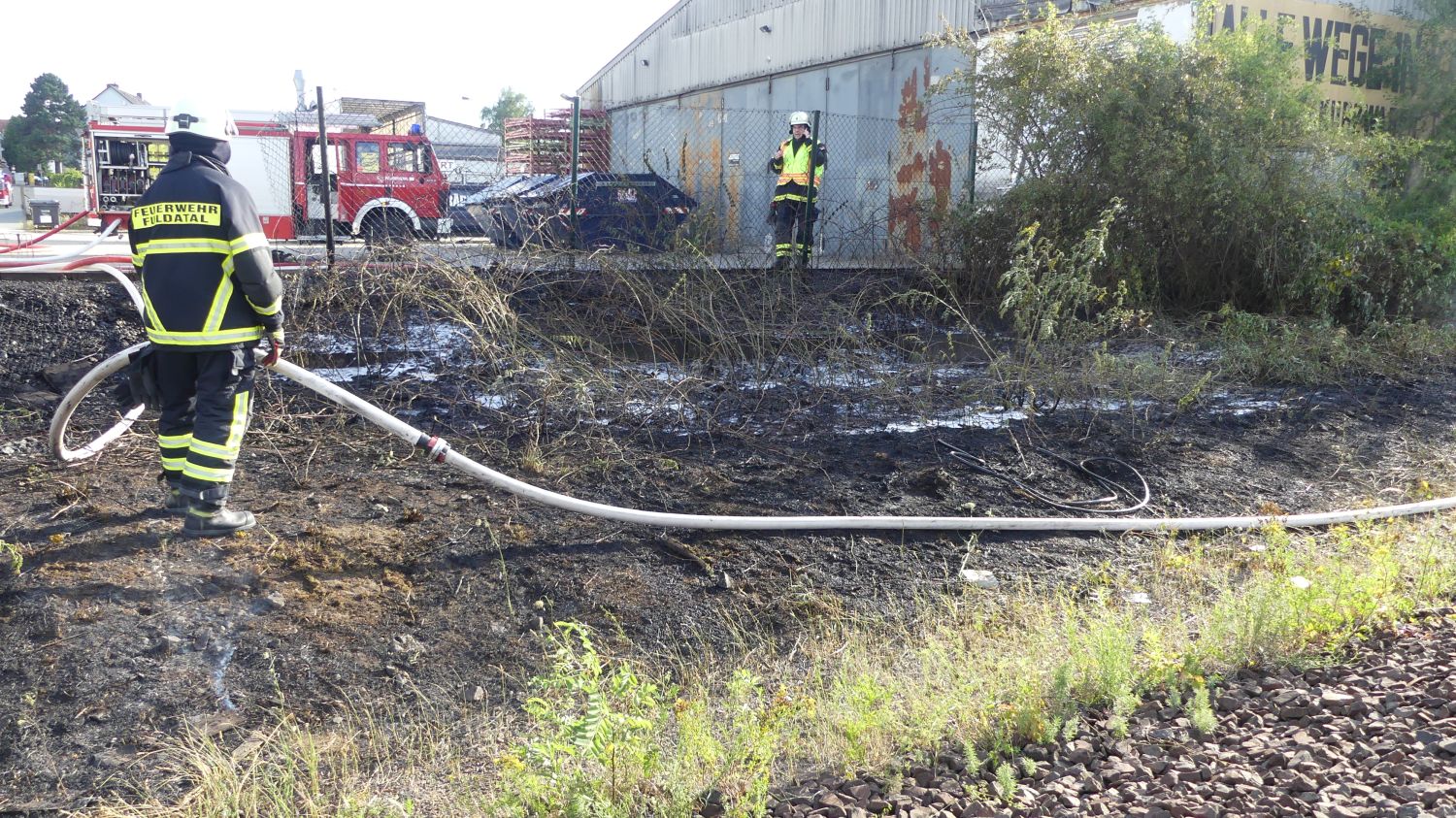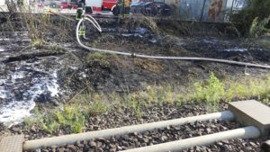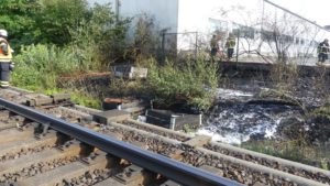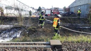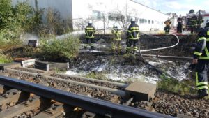 Fuldatal – Am Donnerstag kam es gegen 18:15 Uhr zu einem Brand im Bereich der Bahnstrecke im Gemeindegebiet Ihringshausen. Die Einsatzkräfte konnten über die Straße Zechenweg zum Brandherd gelangen. Dafür mussten sie einen Zaun aufschneiden. Die Böschung brannte in einem Abschnitt von rund 100 Metern, am Anfang drohte es auf eine Lagerhalle überzugreifen. Nach ca. 1 Stunde war der Einsatz beendet. Vermutlich wurde der Brand durch eine defekte Bremse von einem Zug ausgelöst. Die Bahnstrecke war kurzzeitig voll gesperrt. Gegen 18:45 konnten 3 von 4 Gleisen wieder freigegeben werden. Im Einsatz war die Feuerwehr, das DRK Fuldatal, die Polizei Nordhessen und der DB Notfallmanager.