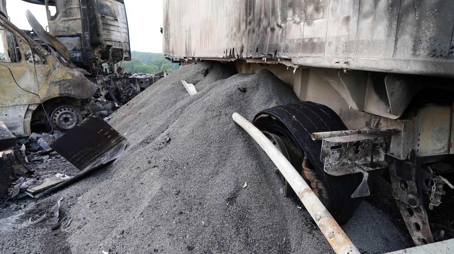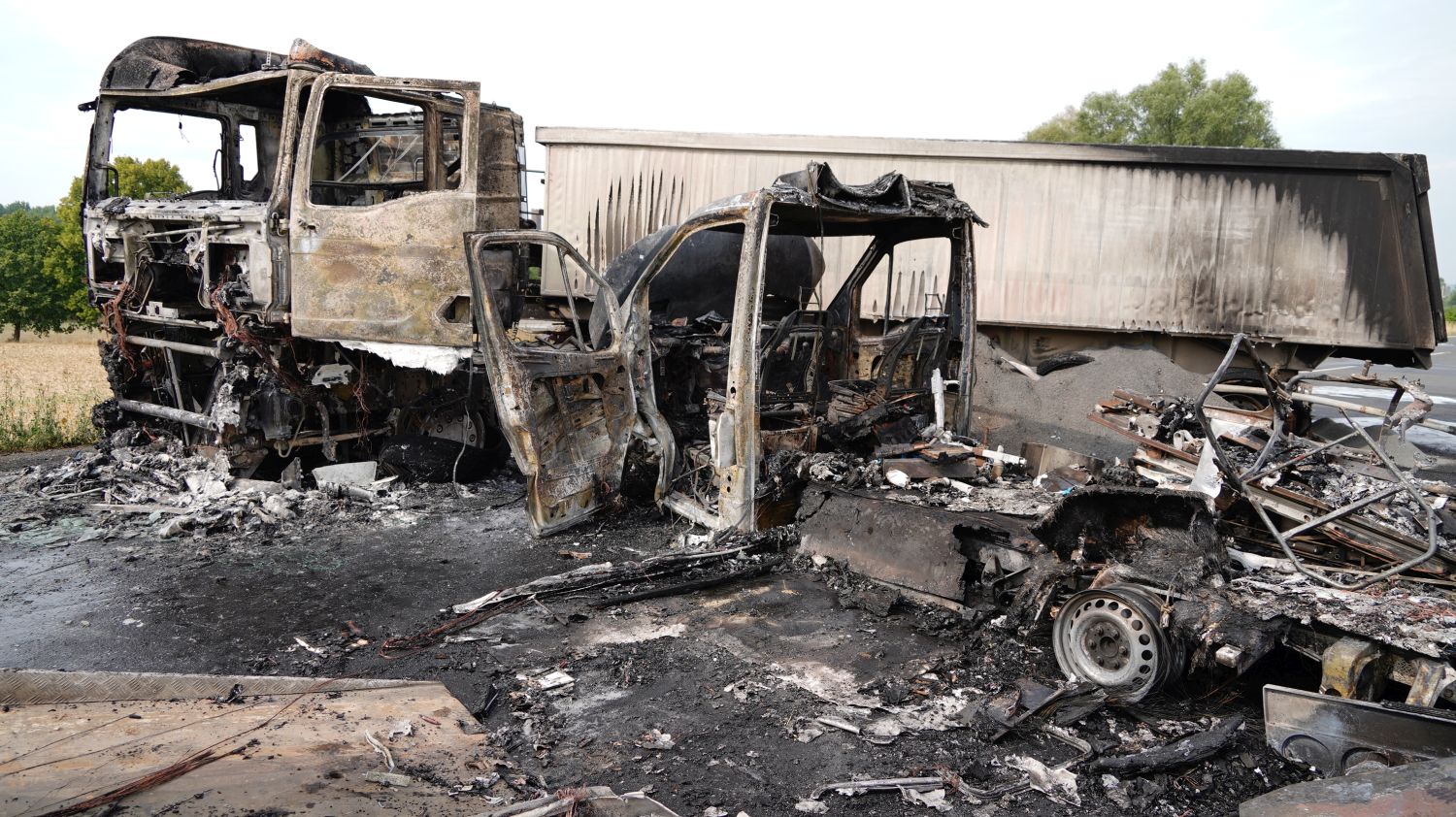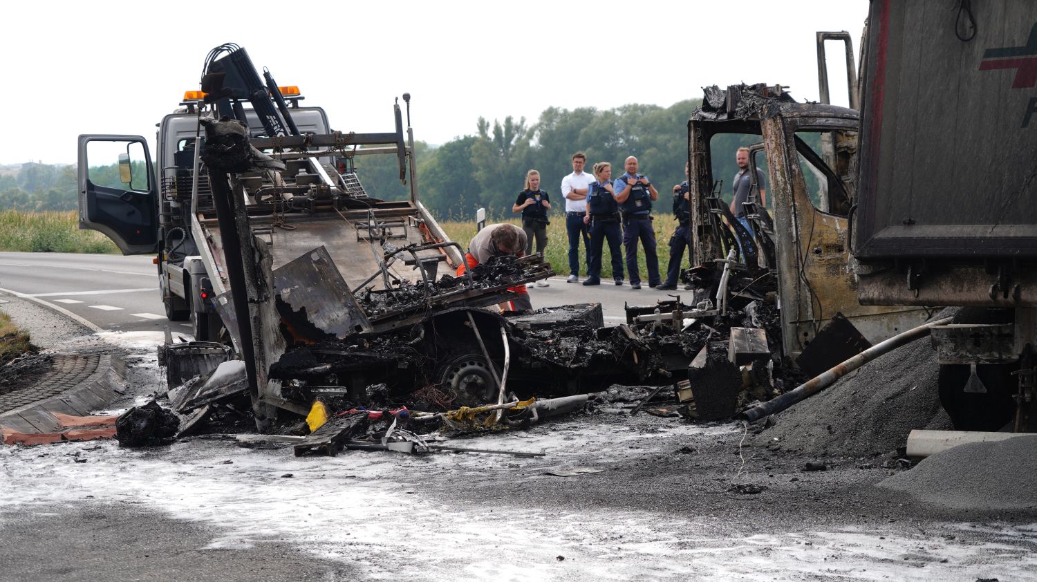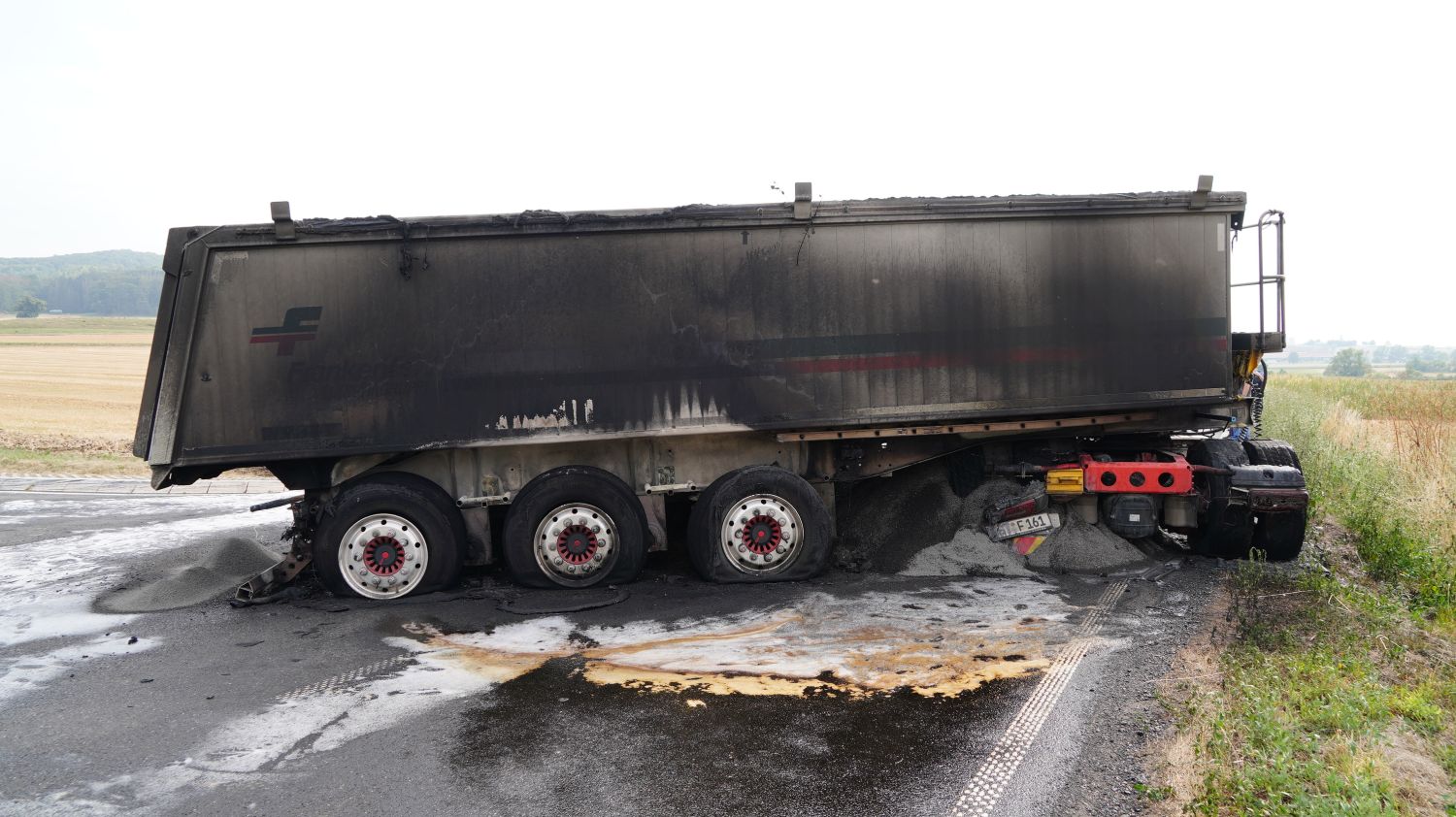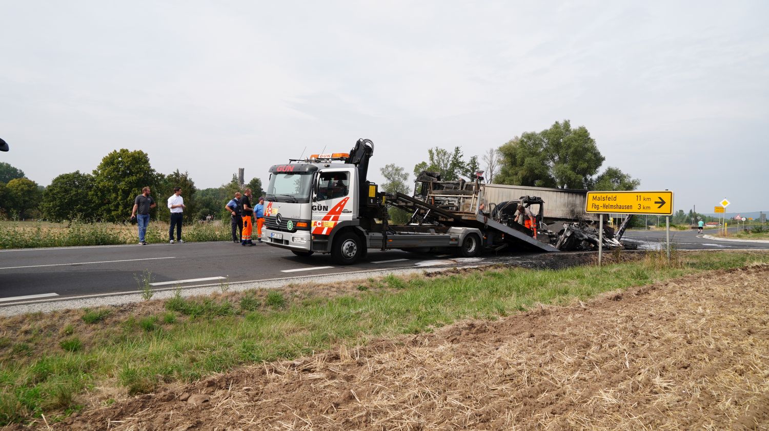 Felsberg – Am Donnerstag gegen 13:45 Uhr, ereignete sich auf der B 253 in Höhe Felsberg- Rhünda, ein Verkehrsunfall unter Beteiligung eines LKW und eines Rettungswagens. Nach ersten Ermittlungen fuhr der Rettungswagen mit Sondersignalen die B 253 aus Wabern kommend in Fahrtrichtung Felsberg. Der Rettungswagen hatte keine Person geladen. Kurz vor der Ortslage Felsberg-Rhünda, an der Einmündung zur L 3427, bog dann der LKW auf die B 253 ein, wobei er den herannahenden und vorfahrtsberechtigten Rettungswagen (RTW) übersah. Es kam zum Zusammenstoß beider Kraftfahrzeuge. Der LKW war zum Zeitpunkt des Unfalls mit Schotter/Splitt voll beladen. Durch den Zusammenstoß trug der 25-jährige Beifahrer des RTW leichte Verletzungen davon. Die 22-jährige Fahrerin des RTW sowie der 83-jährige Lkw-Fahrer blieben glücklicherweise unverletzt. Jedoch wurden alle drei Personen vorsorglich zur Überprüfung in nahegelegene Krankenhäuser transportiert. Die zwei beteiligten Fahrzeuge gerieten in Vollbrand und mussten durch die Feuerwehr abgelöscht werden. Der Sachschaden wird auf 600.000 Euro geschätzt.