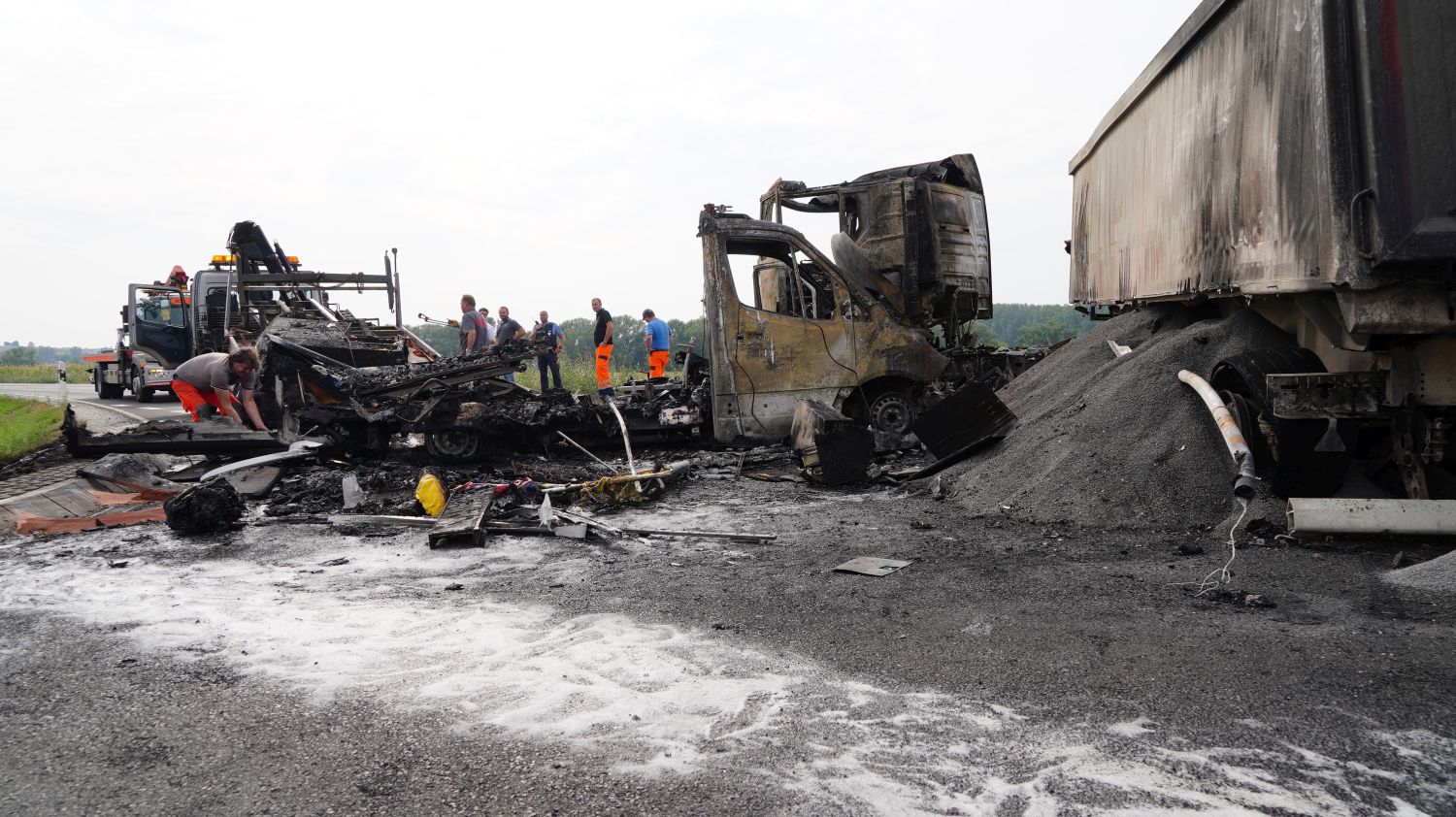 Auf Alarmfahrt: Rettungswagen kracht in LKW und geriet in Vollbrand bei Felsberg (Video)