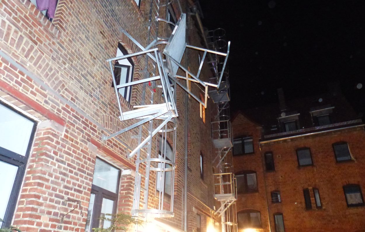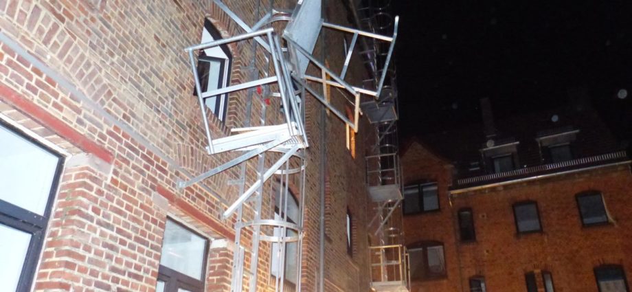 Kassel – Am Mittwochabend wurden Rettungskräfte, die Feuerwehr und die Polizei gegen 22 Uhr zu einem Mehrfamilienhaus in der Gartenstraße in Kassel gerufen, nachdem es dort ersten Meldungen zufolge zum Einsturz einer an das Haus angebauten Feuerleiter gekommen war. Bei Eintreffen der Einsatzkräfte stellte sich heraus, dass bei dem Unfall drei Männer verletzt wurden, zwei von ihnen schwer. Nach ersten Ermittlungen zu folge, waren die drei Männer im Alter von 21 und 22 Jahren im Haus zu Besuch. Sie hatten offenbar aus einer Wohnung im 2. Stock heraus die angebaute Feuerleiter betreten, um dort zu Rauchen. Als die drei Männer auf dem Plateau der Feuerleiter standen, brach das Podest aus der Verankerung in der Hauswand heraus und kippte, wodurch der 22-Jährige aus Witzenhausen aus einer Höhe von 7,50 Meter hinabstürzte. Er wurde mit lebensgefährlichen Verletzungen in ein Krankenhaus gebracht. Der gleichaltrige Mann aus Witzenhausen konnte sich am Geländer festhalten und von dort wieder auf die Feuerleiter klettern. Er erlitt leichte Verletzungen, die keiner medizinischen Behandlung bedurften. Auch der 21-Jährige aus Korbach konnte sich zunächst am Geländer festhalten, stürzte dann aber ebenfalls in die Tiefe. Rettungskräfte brachten ihn mit dem Verdacht einer Armfraktur und Schürfwunden in ein Krankenhaus. Die Bauaufsicht der Stadt Kassel war ebenfalls an der Unfallstelle eingesetzt. Die Polizei hat die Ermittlungen zur Ursache des Unfalls aufgenommen und ein Strafverfahren wegen des Verdachts der fahrlässigen Körperverletzung eingeleitet. Wie es zum Herausbrechen des Podests kommen konnte, ist bislang noch ungeklärt und nun Gegenstand der weiteren Ermittlungen.