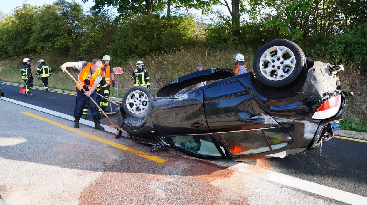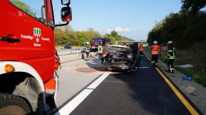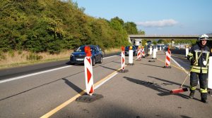 Breuna – Auf der A44 kam es am Sonntag zu einem schweren Alleinunfall. Nach ersten Erkenntnissen befuhr eine 60-jährige Frau mit ihrem PKW gegen 16.40 Uhr die Autobahn von Zierenberg kommend in Fahrtrichtung Dortmund. Aus bislang noch nicht geklärter Ursache kam sie kurz vor der Rastanlage Bühleck im Baustellenbereich nach links von der Fahrbahn ab. Im weiteren Verlauf fuhr die Frau zu Beginn einer Baustelle auf eine Leitplanke, die das Fahrzeug in die Luft katapultierte. Durch die enorme Wucht drehte sich der Wagen in der Luft und landete auf der entgegengesetzten Fahrbahn auf dem Dach. Wie durch ein Wunder gab es zu diesem Zeitpunkt kein Gegenverkehr. Ersthelfer holten die Frau aus dem PKW und begannen mit der Erstversorgung bis zum Eintreffen der ersten Rettungskräfte. Zur weiteren Versorgung wurde die Frau mit lebensbedrohlichen Verletzungen mit dem Rettungshubschrauber Christoph 7 in ein Krankenhaus nach Kassel geflogen. Im Einsatz war die Feuerwehr Habichtswald und Breuna mit rund 50 Einsatzkräften. Sie sicherten die Unfallstelle ab und nahmen auslaufende Betriebsstoffe auf. Die Anfahrt für die Rettungskräfte war besonders schwierig, da im Baustellenbereich kein Platz für eine Rettungsgasse war. Der Verkehr in Fahrtrichtung Dortmund konnte über die parallel Fahrbahn ausweichen. Die Fahrbahn in Fahrtrichtung Kassel blieb rund zwei Stunden voll gesperrt.