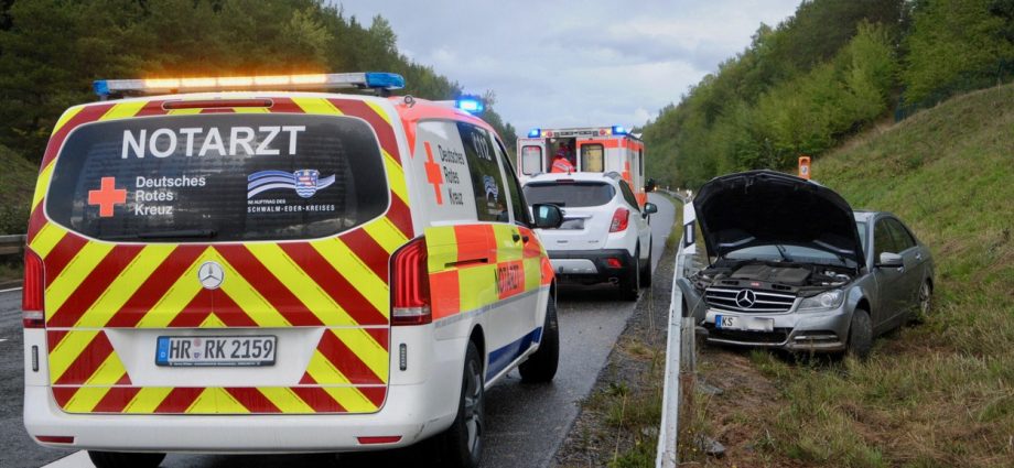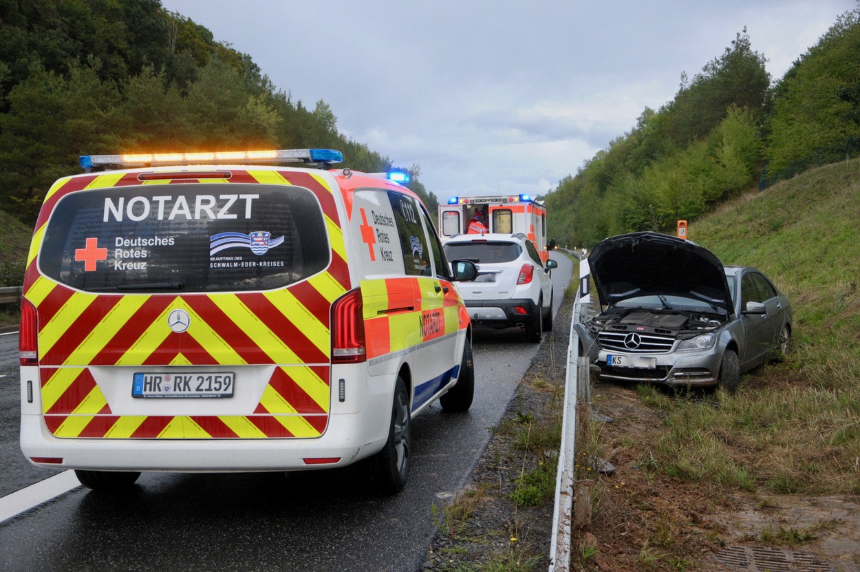 Neuental – Zu einem Verkehrsunfall mit einer leichtverletzten Person, kam es am späten Montagnachmittag auf der A49 zwischen den Anschlussstellen Neuental und Borken. Ein Fahrzeug kam während eines Überholvorganges ins schleudern und landete abseits der Fahrbahn. Ein 21-jähriger Mann aus dem Landkreis Kassel war am Montagnachmittag auf der A 49 von Schwalmstadt kommend in Richtung Kassel unterwegs, als er wenige hundert Meter hinter der Anschlussstelle Neuental beabsichtigte einen weiteren Verkehrsteilnehmer zu überholen. Ein plötzlich einsetzender starker Regenschauer wurde dem jungen Mann dann zum Verhängnis. Während des Überholvorganges geriet der 21 Jährige mit seinem Fahrzeug ins schleudern, querte beide Fahrbahnen und landete abseits der Autobahn hinter einer Schutzplanke. Zwei Feuerwehrmänner der Berufsfeuerwehr Trier, welche sich gerade auf dem Weg zur Landesfeuerwehrschule in Kassel befanden, kamen dem Mann nur wenige Sekunden nach seinem Unfall zur Hilfe, sicherten die Unfallstelle ab und alarmierten die Rettungskräfte. Mit eher leichten Verletzungen wurde der Mann nach seiner Erstversorgung durch den Rettungsdienst in das Krankenhaus nach Kassel gebracht. Neben den beiden Ersthelfern der Berufsfeuerwehr Trier, waren ein Rettungsteam der Malteser Jesberg, der Notarzt aus Fritzlar sowie die Autobahnpolizei Baunatal vor Ort im Einsatz. Während der Rettungs- und Bergungsmaßnahmen wurde der Verkehr an der Unfallstelle vorbeigeleitet, so dass es zu keinen Verkehrsbehinderungen kam. Die Polizei schätzt den Sachschaden auf rund 10.000 Euro. (mpu)
