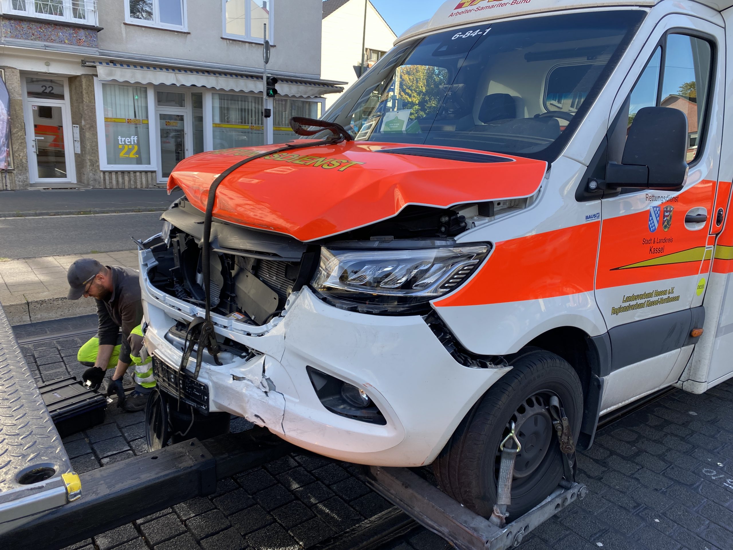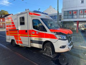 Kassel – Am Freitag gegen 14:00 Uhr ereignete sich im Kreuzungsbereich Erzbergerstraße und Grüner Weg ein schwerer Verkehrsunfall. Ein Rettungswagen aus der nahgelegenen Rettungswache befur den Kreuzungsbereich mit Alarm, dies bemerkte der Hyundai Fahrer zu spät. Der Rettungswagen krachte in die Beifahrerseite des Hyundai‘s. Beide Fahrzeuge kamen auf den Schienen höhe der Bahnhaltestelle „Erzbergerstraße“ zum stehen und mussten im Laufe des Einsatzes abgeschleppt werden. Verletzt wurde bei dem Unfall glücklicherweiße keiner.