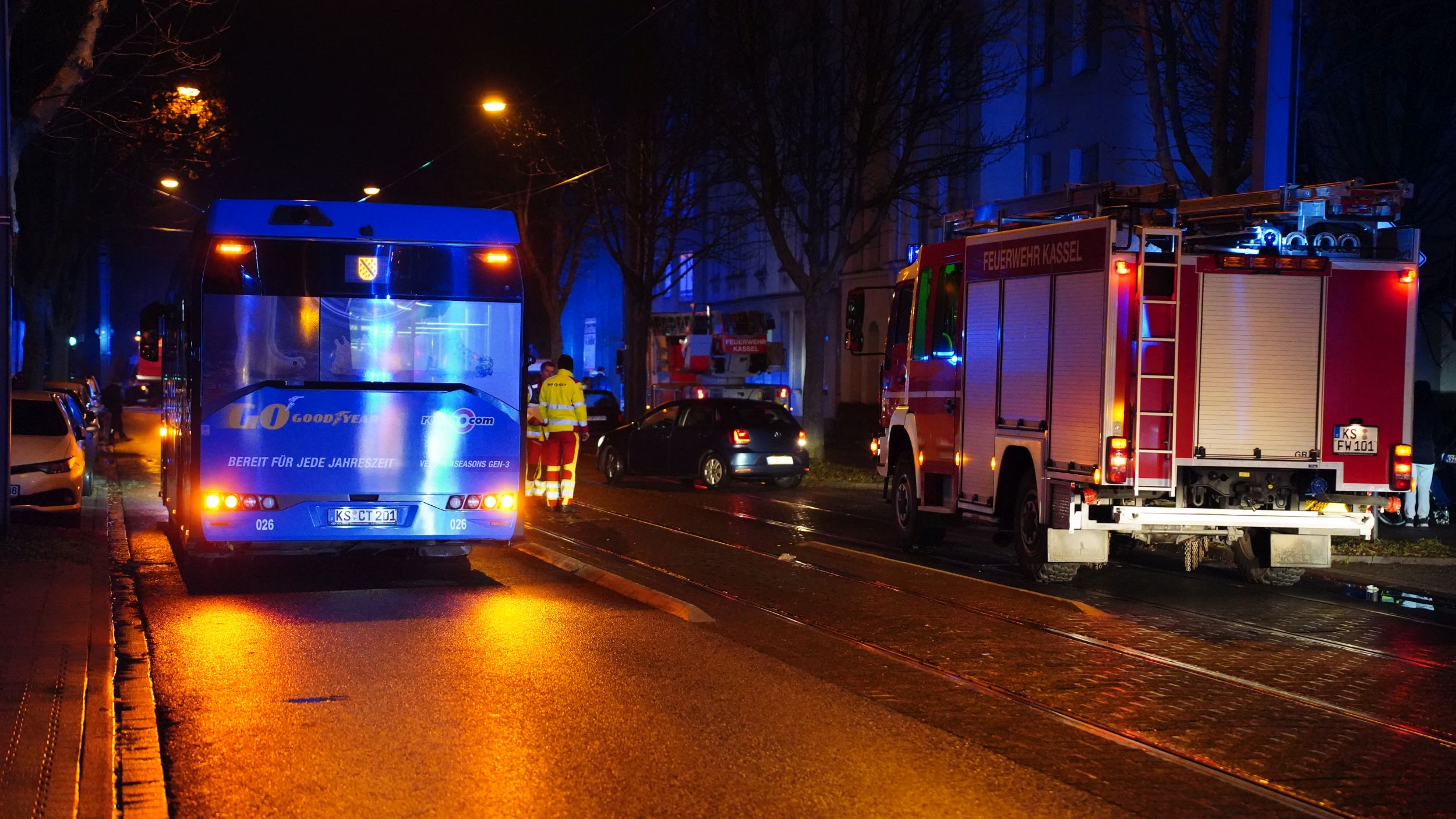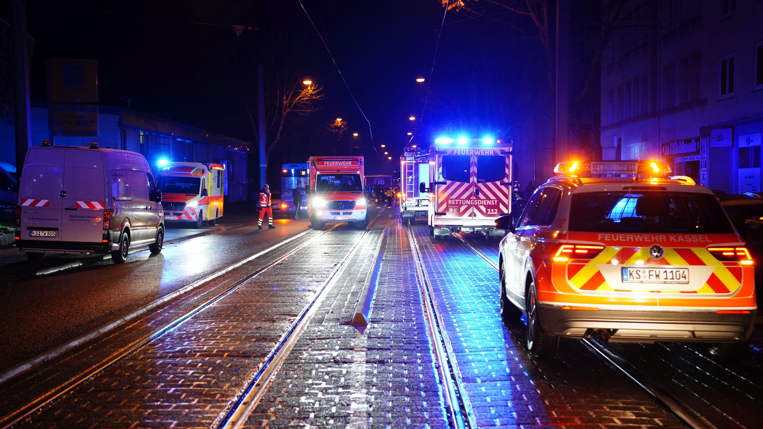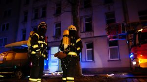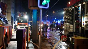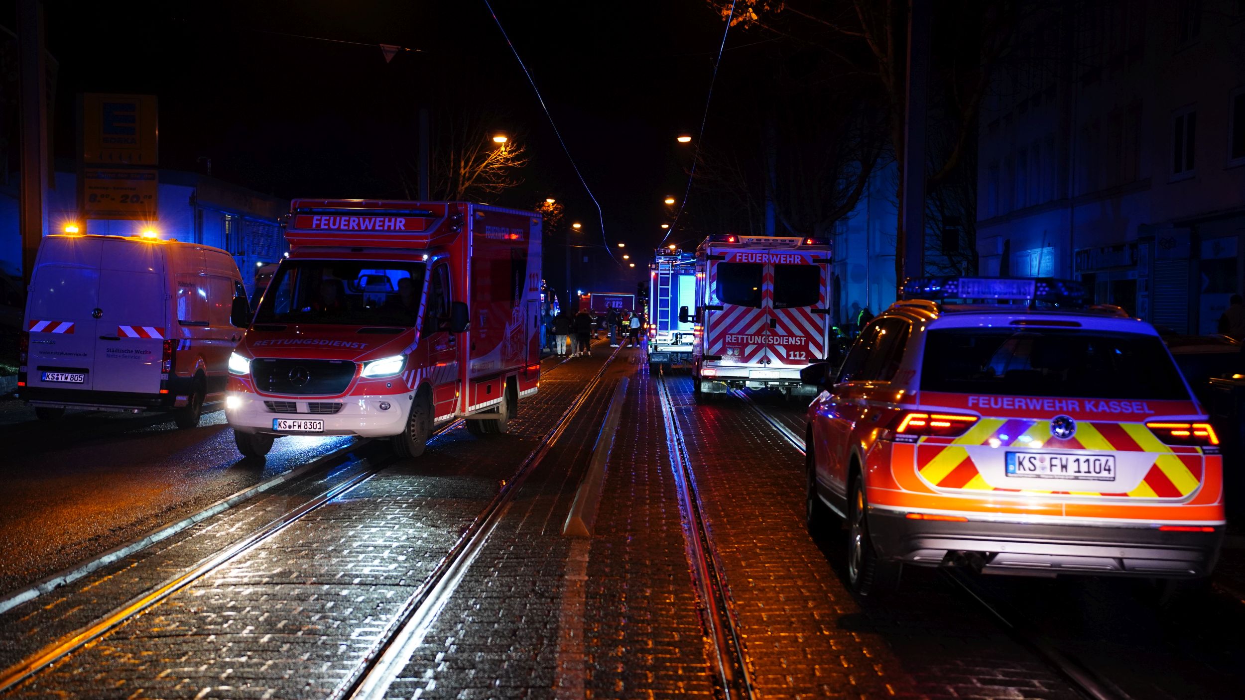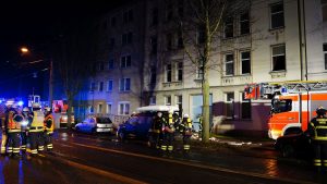 Kassel – In der Nacht auf Samstag wurde die Feuerwehr Kassel zu einem Brand in einem Mehrfamilienhaus in der Fuldatalstraße alarmiert. Mehrere Notrufe gingen gegen 03.50 Uhr bei der Feuerwehrleitstelle ein und berichteten über Rauch im Treppenhaus. Als die ersten Einsatzkräfte eintrafen, war bereits starker Rauch erkennbar. Mehrere Personen standen bereits an der Vorderseite sowie auf der Rückseite an den Fenstern und konnten das Gebäude nicht mehr verlassen. Durch den Rauch musste auch ein Nebengebäude evakuiert werden. Insgesamt wurden 25 Personen gerettet, davon 19 Personen über tragbare Leitern sowie zwei Drehleitern. Eine Person musste in ein Krankenhaus transportiert werden. Alle weiteren Bewohner wurden in einem Bus der KVG vorübergehend betreut. Während der Erkundung im Gebäude wurde ein Feuer im Keller festgestellt. Hier brannte ein Holzverschlag. Wie es zu dem Brand kommen konnte, muss jetzt die Polizei ermitteln. Im Einsatz waren 65 Einsatzkräfte von der Feuerwehr und dem Rettungsdienst. Die Fuldatalstraße blieb mehrere Stunden voll gesperrt.