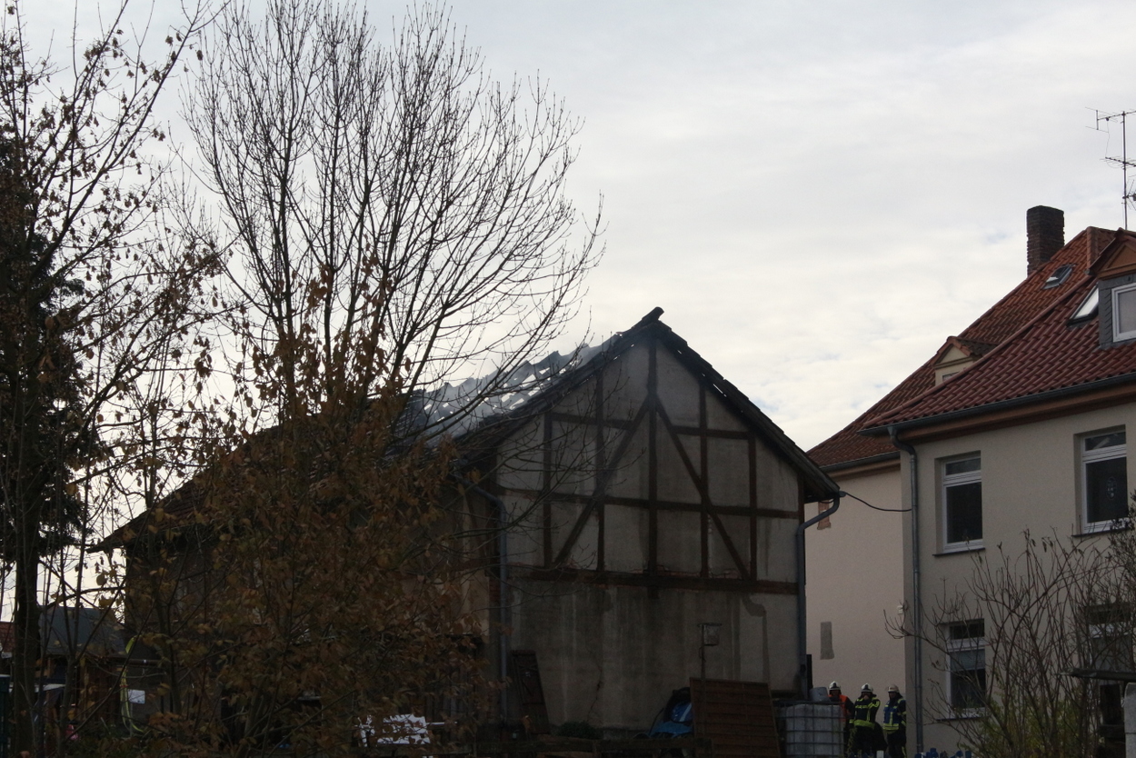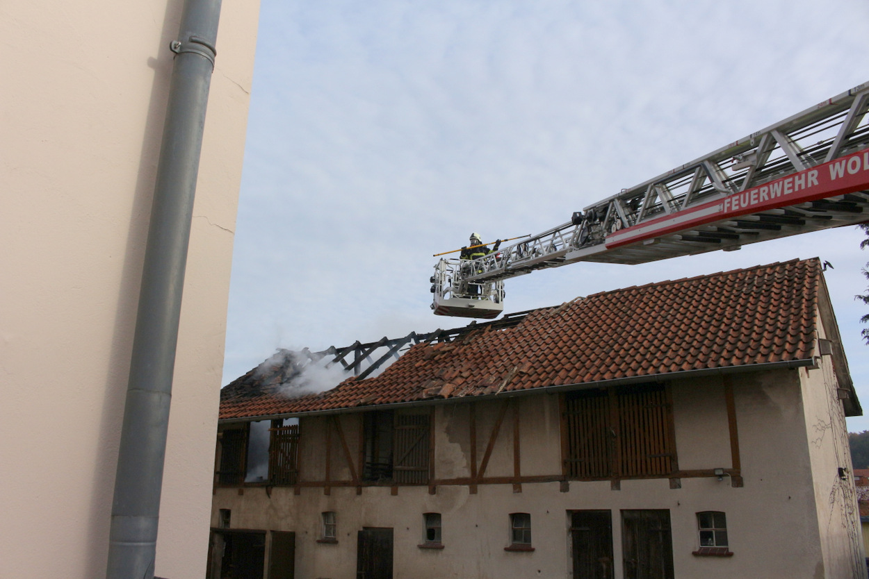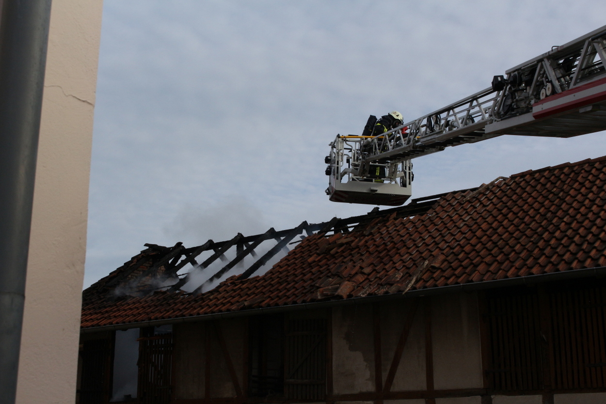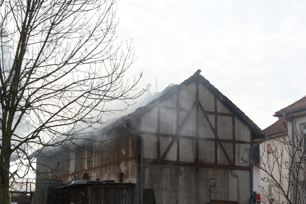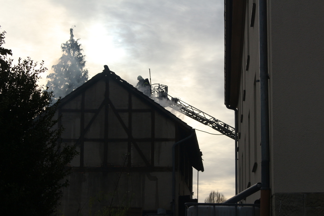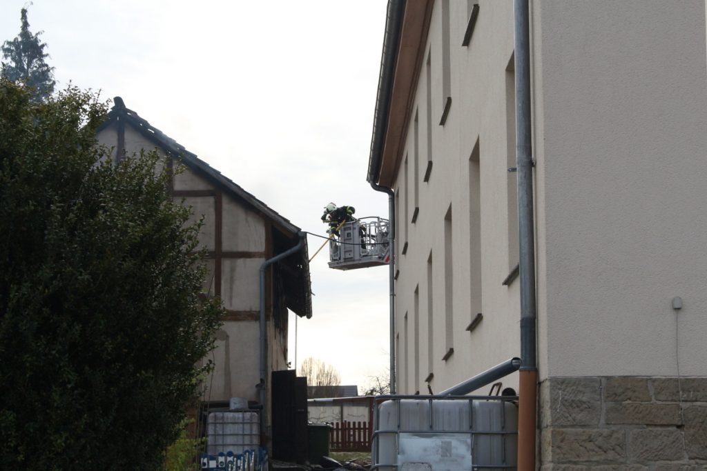 Wolfhagen – gegen 09:45 Uhr kam es in der Friedrichstraße in Wolfhagen zu einem Brand einer Scheune, beim Eintreffen der Einsatzkräfte stand das Dachgeschoss der Scheune schon in Vollbrand. Menschen waren nicht betroffen. Die Feuerwehr Wolfhagen fing daraufhin mit einem umfangreichen Löschangriff an, mit der Drehleiter wurde der Brand von oben gelöscht. Der Brand konnte relativ schnell unter Kontrolle gebracht werden. Die Nachlöscharbeiten gestalteten sich aufwendig, da das Brandgut noch aus der Scheune gebracht und außen abgelöscht werden musste. Es waren rund 35 Einsatzkräfte der Feuerwehr Wolfhagen und Nothfelden im Einsatz. Wie hoch der Sachschaden beziffert wird, ist zum aktuellen Zeitpunkt noch unklar.
