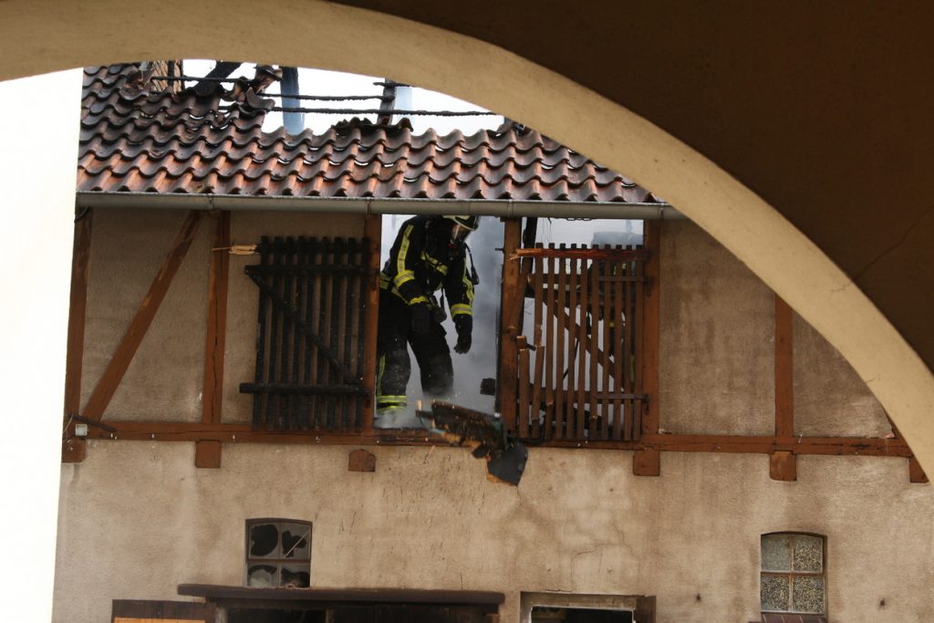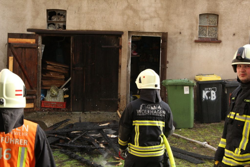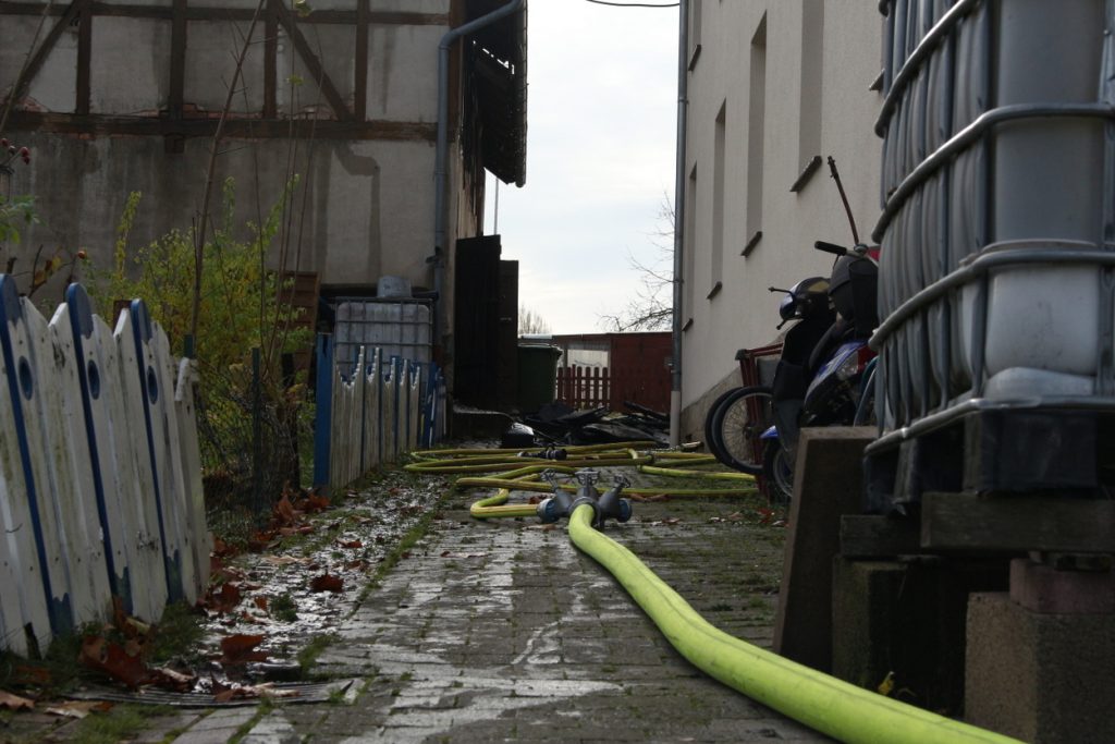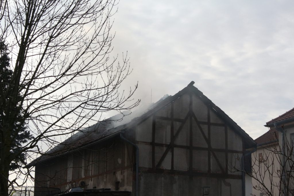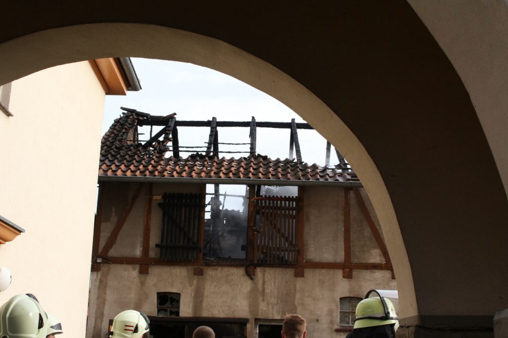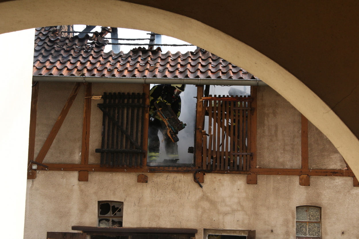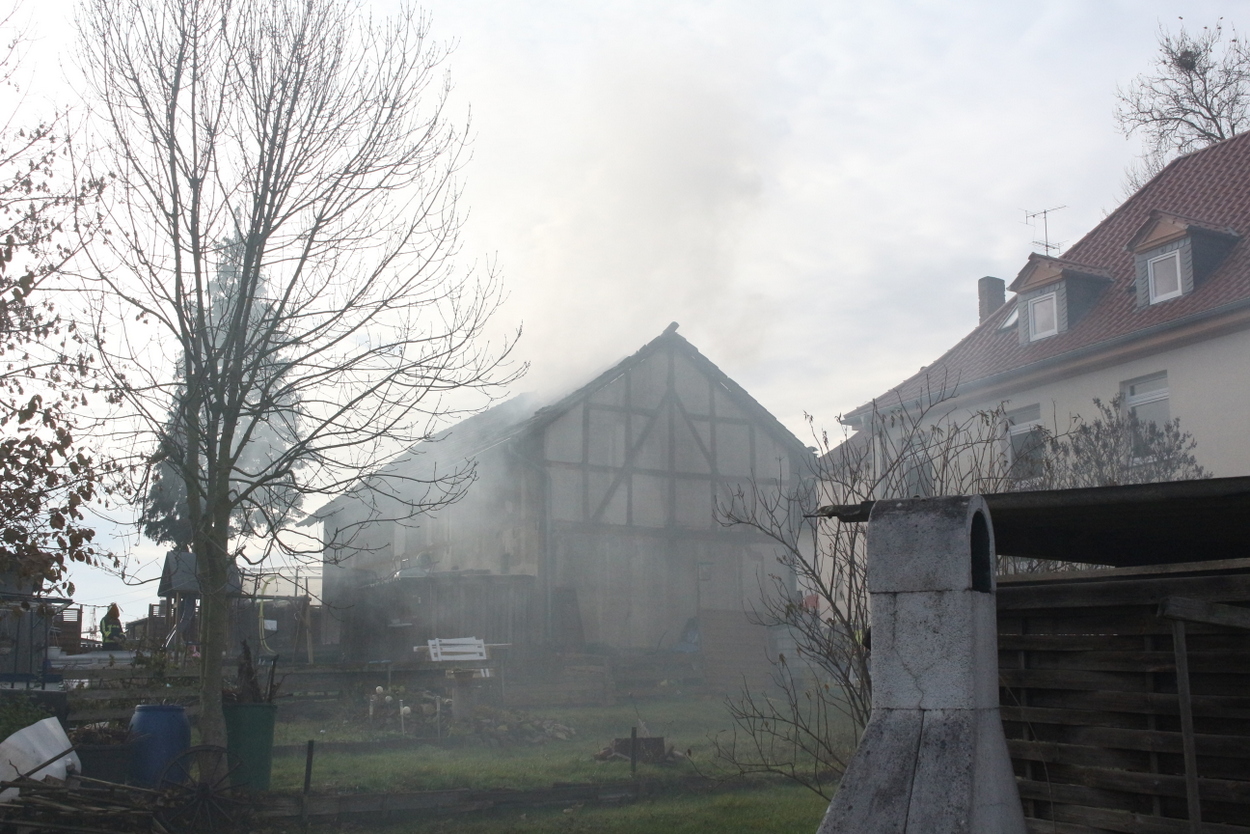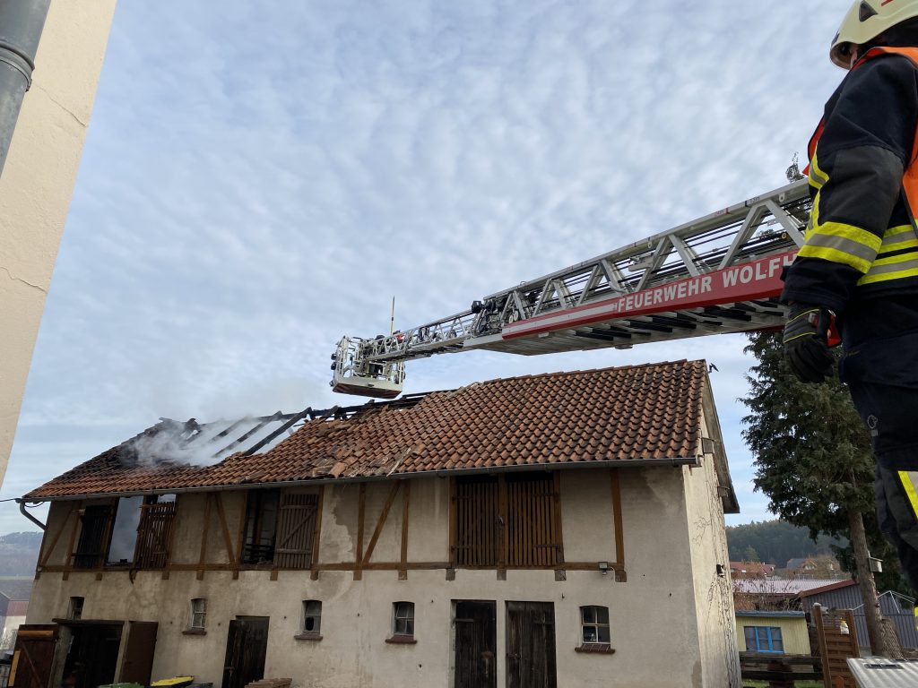 Wolfhagen – gegen 09:45 Uhr kam es in der Friedrichstraße in Wolfhagen zu einem Brand einer Scheune, beim Eintreffen der Einsatzkräfte stand das Dachgeschoss der Scheune schon in Vollbrand. Menschen waren nicht betroffen. Die Feuerwehr Wolfhagen fing daraufhin mit einem umfangreichen Löschangriff an, mit der Drehleiter wurde der Brand von oben gelöscht. Der Brand konnte relativ schnell unter Kontrolle gebracht werden. Die Nachlöscharbeiten gestalteten sich aufwendig, da das Brandgut noch aus der Scheune gebracht und außen abgelöscht werden musste. Es waren rund 35 Einsatzkräfte der Feuerwehr Wolfhagen und Nothfelden im Einsatz. Wie hoch der Sachschaden beziffert wird, ist zum aktuellen Zeitpunkt noch unklar.