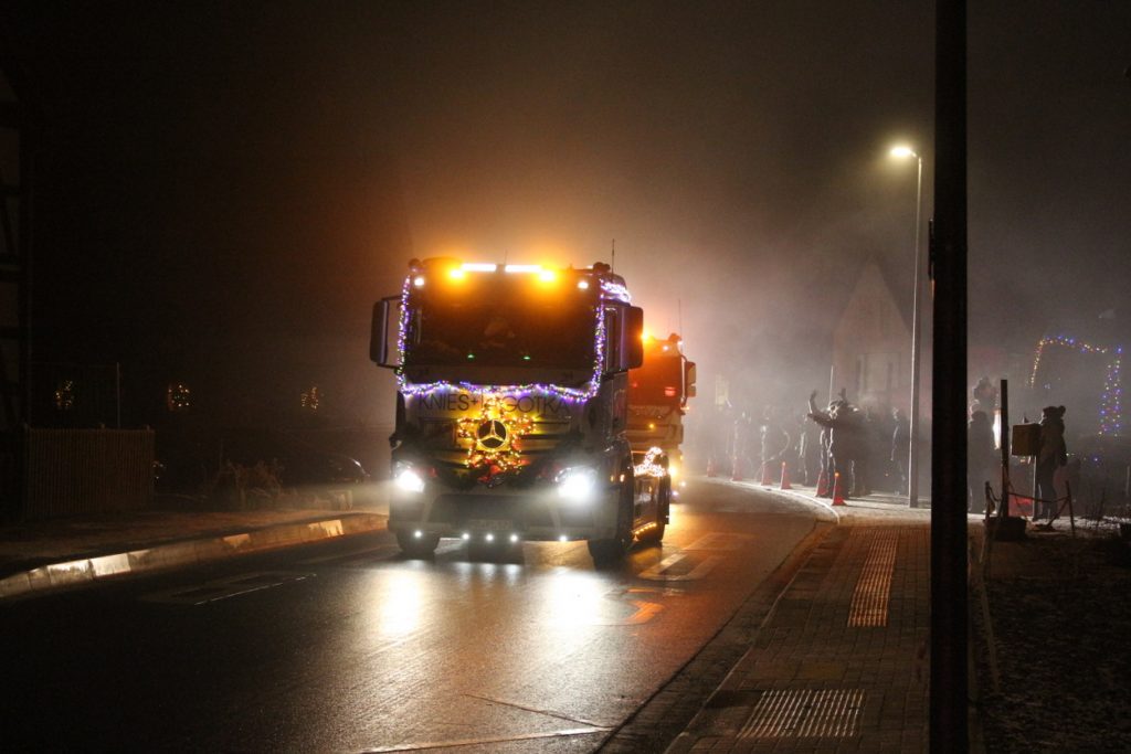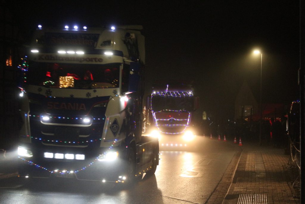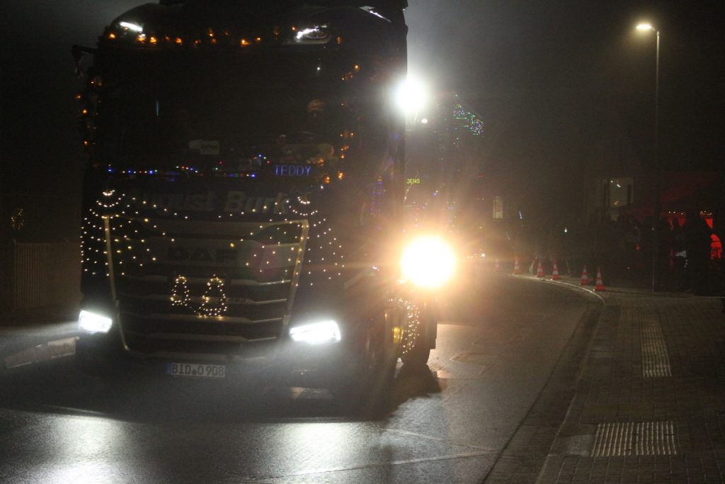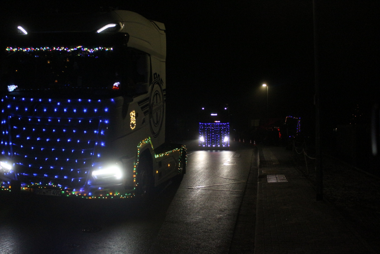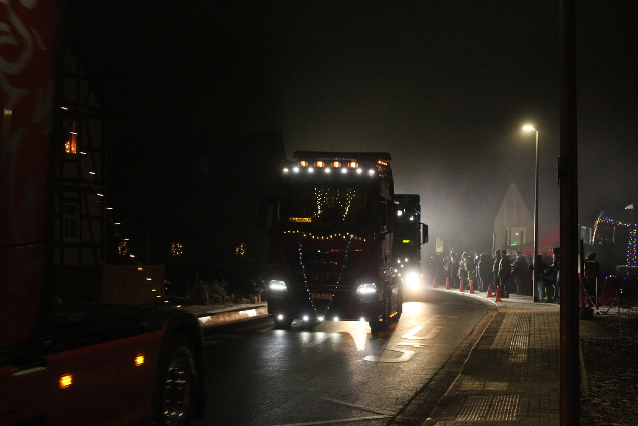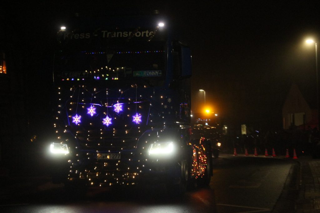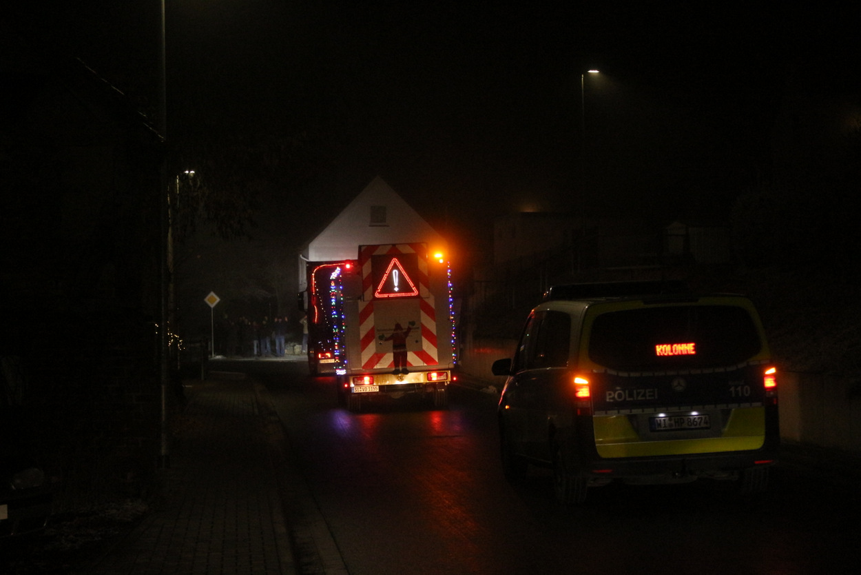 Marburg – Am Samstag dem 17. Dezember fuhren mehr als 100 weihnachtlich geschmückte Trucks mehrere Stunden durch den Landkreis Marburg-Biedenkopf. Die LKW von dem dritten Wheinachtskonvoi wurden mit unzähligen Lichterketten und Weihnachtsschmuck zurechtgemacht. Entlang der rund 70 Kilometer langen Route durch den Landkreis, verfolgten unzählige Menschen das weihnachtliche Spektakel. Nicht einmal die eisigen Temperaturen konnten die vielen Zuschauerinnen und Zuschauer davon abhalten. Gegen 17 Uhr machte sich der Lkw-Konvoi aus Breidenbach auf den Weg in Richtung Marburg Messeplatz. In fast jedem Dorf der Route entlang gab es für die Zuschauerinnen und Zuschauer warme Speisen und Getränke. Während der gesamten Fahrt hielten die Trucker immer wieder an, damit Spenden entgegengenommen werden konnten. Das gesammelte Geld geht dieses Jahr an den ambulanten Kinder- und Jugendhospizdienst in Marburg. Gegen 21:30 Uhr trafen die Trucks dann nach und nach bei ihrer letzten Station am Messeplatz in Marburg ein. Nach rund 5 Stunden war das Spektakel vorbei.