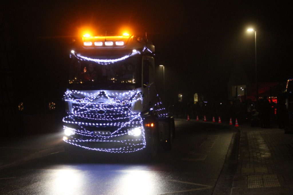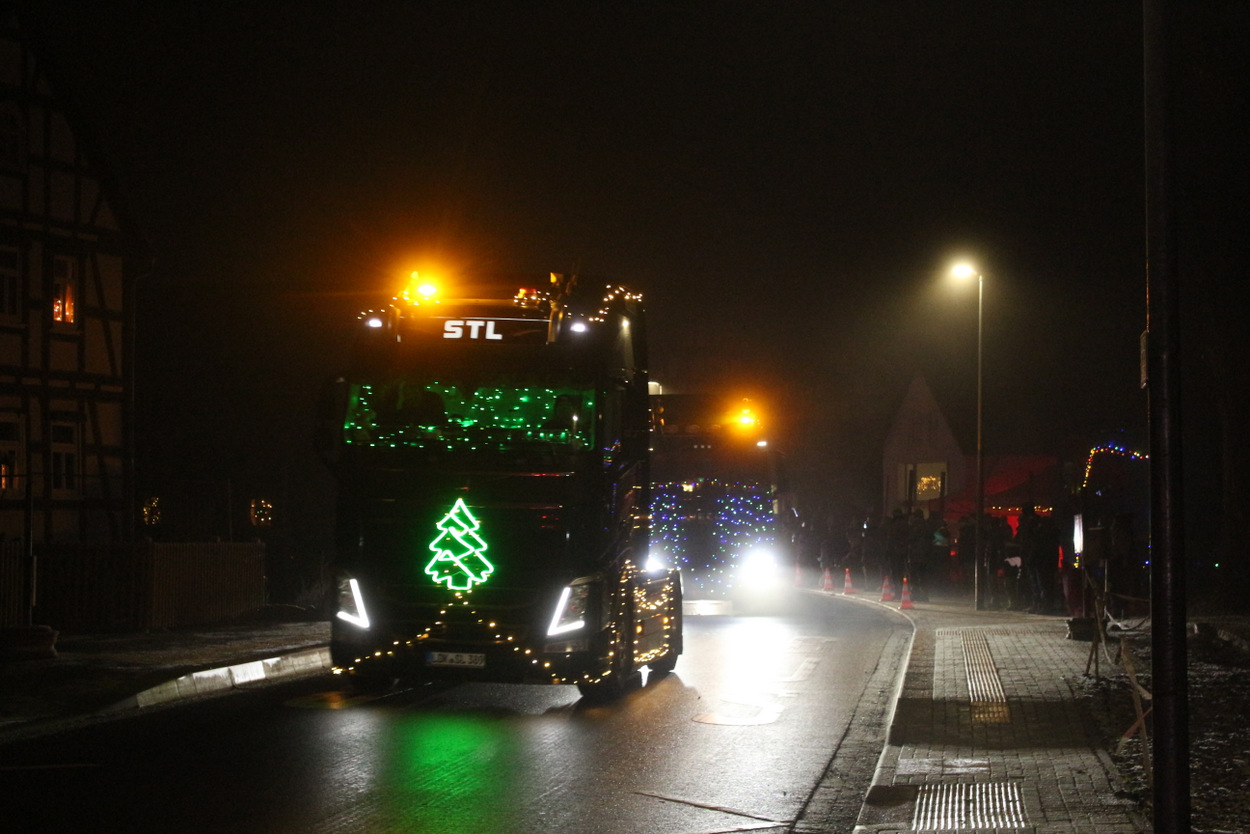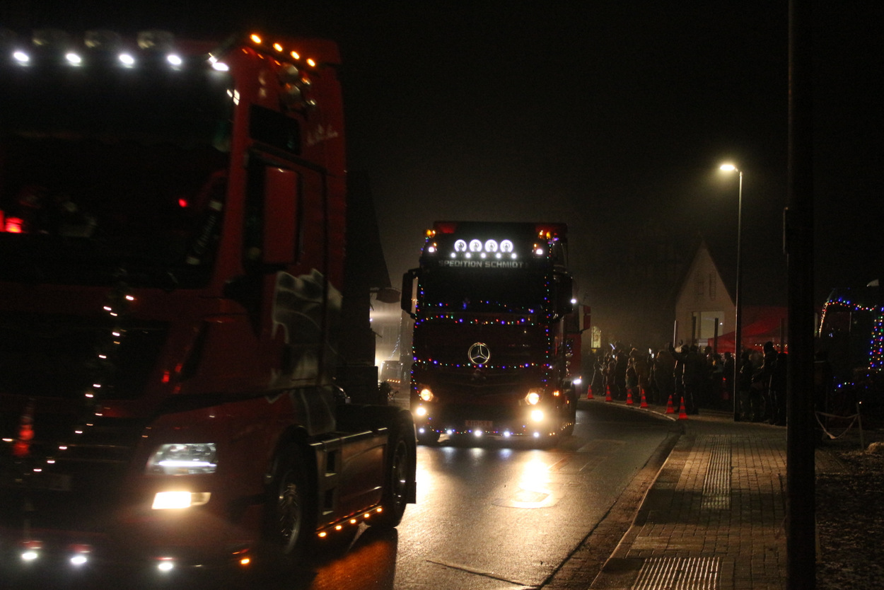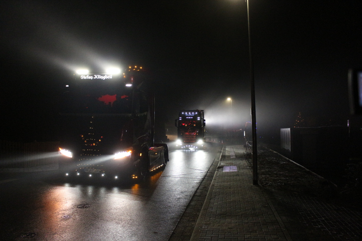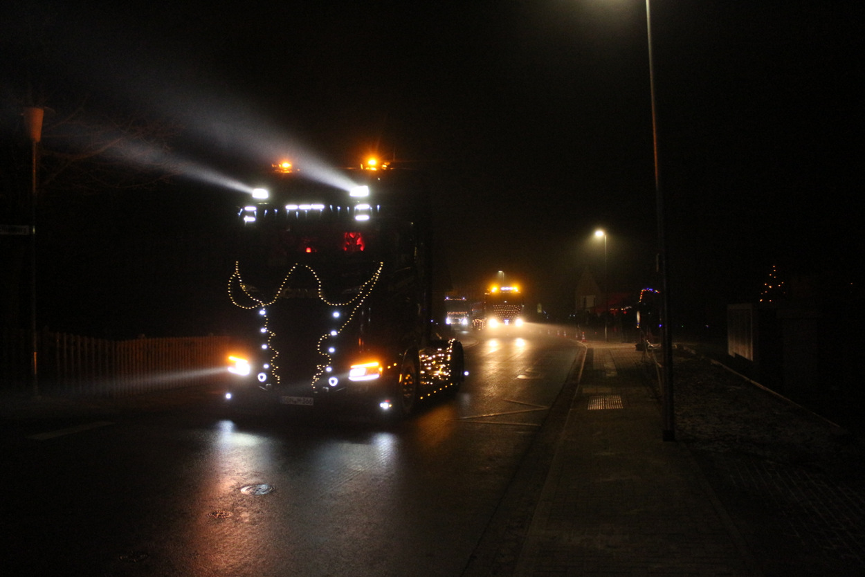 Marburg – Am Samstag dem 17. Dezember fuhren mehr als 100 weihnachtlich geschmückte Trucks mehrere Stunden durch den Landkreis Marburg-Biedenkopf. Die LKW von dem dritten Wheinachtskonvoi wurden mit unzähligen Lichterketten und Weihnachtsschmuck zurechtgemacht. Entlang der rund 70 Kilometer langen Route durch den Landkreis, verfolgten unzählige Menschen das weihnachtliche Spektakel. Nicht einmal die eisigen Temperaturen konnten die vielen Zuschauerinnen und Zuschauer davon abhalten. Gegen 17 Uhr machte sich der Lkw-Konvoi aus Breidenbach auf den Weg in Richtung Marburg Messeplatz. In fast jedem Dorf der Route entlang gab es für die Zuschauerinnen und Zuschauer warme Speisen und Getränke. Während der gesamten Fahrt hielten die Trucker immer wieder an, damit Spenden entgegengenommen werden konnten. Das gesammelte Geld geht dieses Jahr an den ambulanten Kinder- und Jugendhospizdienst in Marburg. Gegen 21:30 Uhr trafen die Trucks dann nach und nach bei ihrer letzten Station am Messeplatz in Marburg ein. Nach rund 5 Stunden war das Spektakel vorbei.