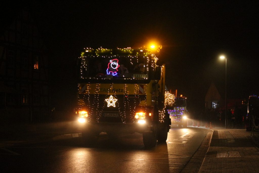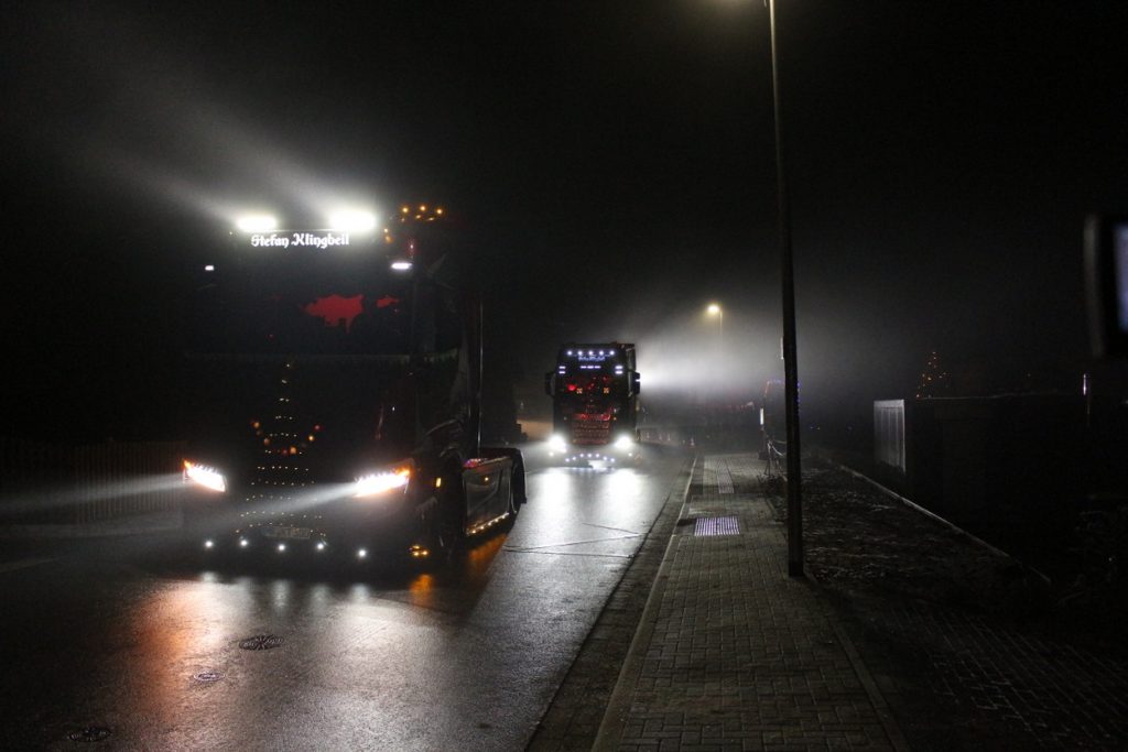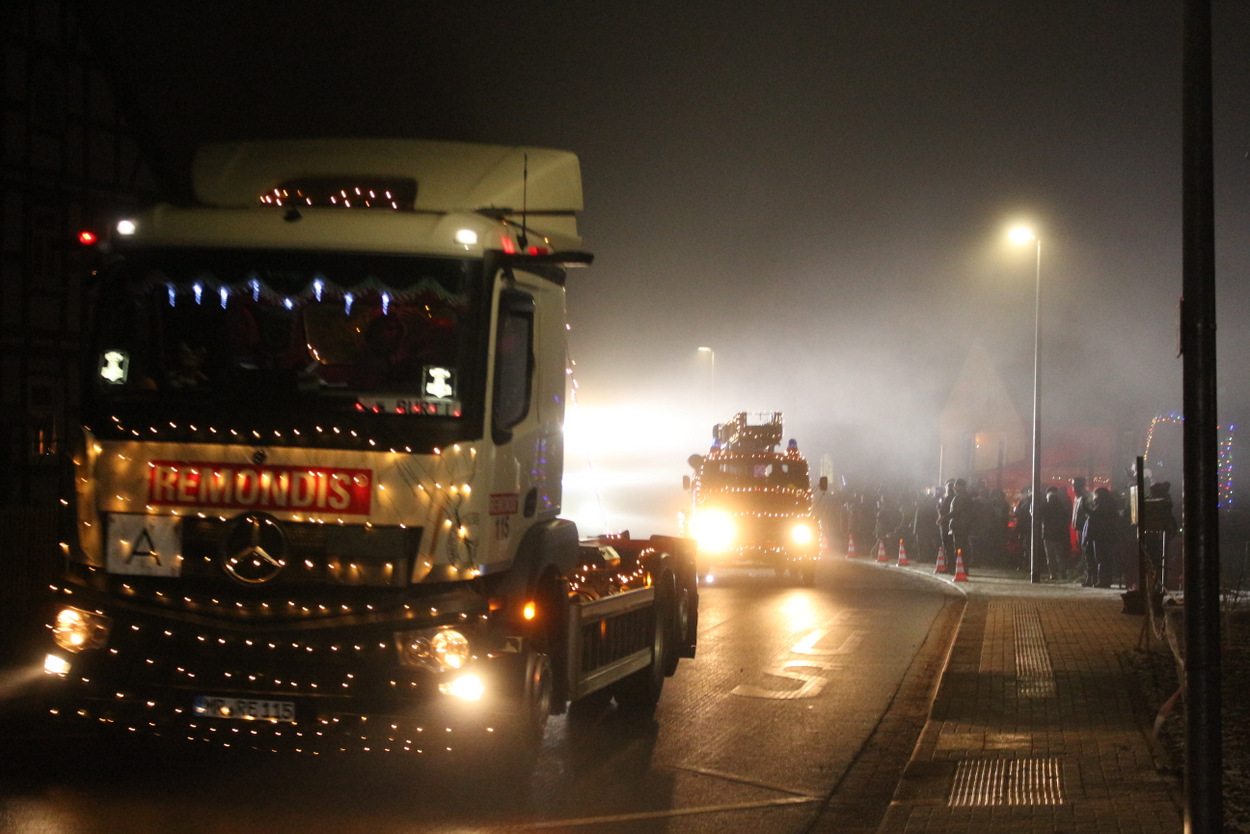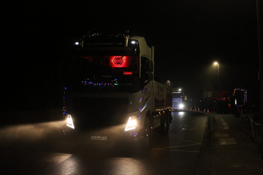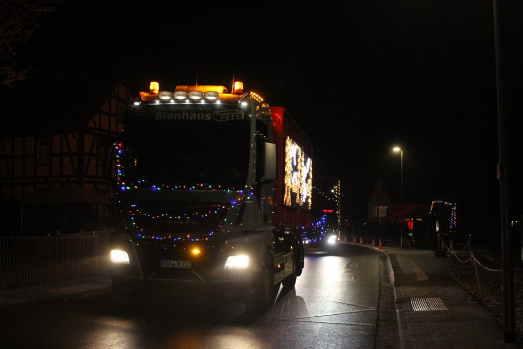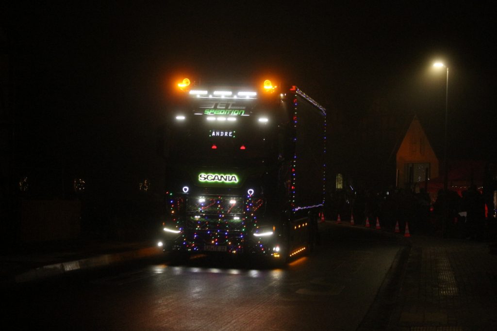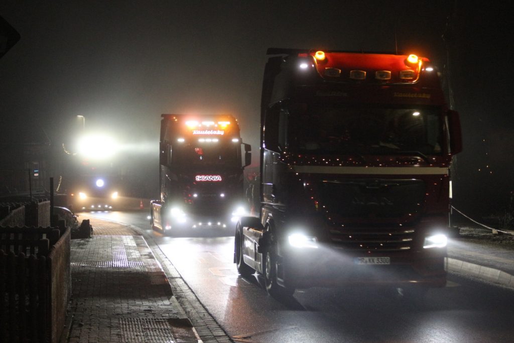 Marburg – Am Samstag dem 17. Dezember fuhren mehr als 100 weihnachtlich geschmückte Trucks mehrere Stunden durch den Landkreis Marburg-Biedenkopf. Die LKW von dem dritten Wheinachtskonvoi wurden mit unzähligen Lichterketten und Weihnachtsschmuck zurechtgemacht. Entlang der rund 70 Kilometer langen Route durch den Landkreis, verfolgten unzählige Menschen das weihnachtliche Spektakel. Nicht einmal die eisigen Temperaturen konnten die vielen Zuschauerinnen und Zuschauer davon abhalten. Gegen 17 Uhr machte sich der Lkw-Konvoi aus Breidenbach auf den Weg in Richtung Marburg Messeplatz. In fast jedem Dorf der Route entlang gab es für die Zuschauerinnen und Zuschauer warme Speisen und Getränke. Während der gesamten Fahrt hielten die Trucker immer wieder an, damit Spenden entgegengenommen werden konnten. Das gesammelte Geld geht dieses Jahr an den ambulanten Kinder- und Jugendhospizdienst in Marburg. Gegen 21:30 Uhr trafen die Trucks dann nach und nach bei ihrer letzten Station am Messeplatz in Marburg ein. Nach rund 5 Stunden war das Spektakel vorbei.