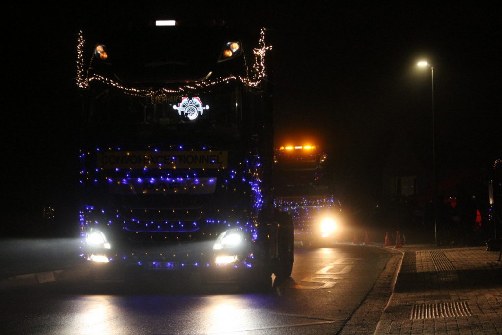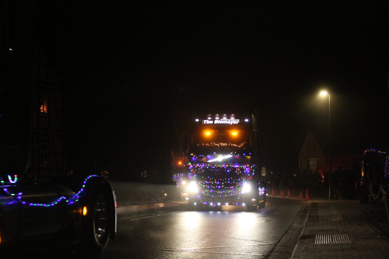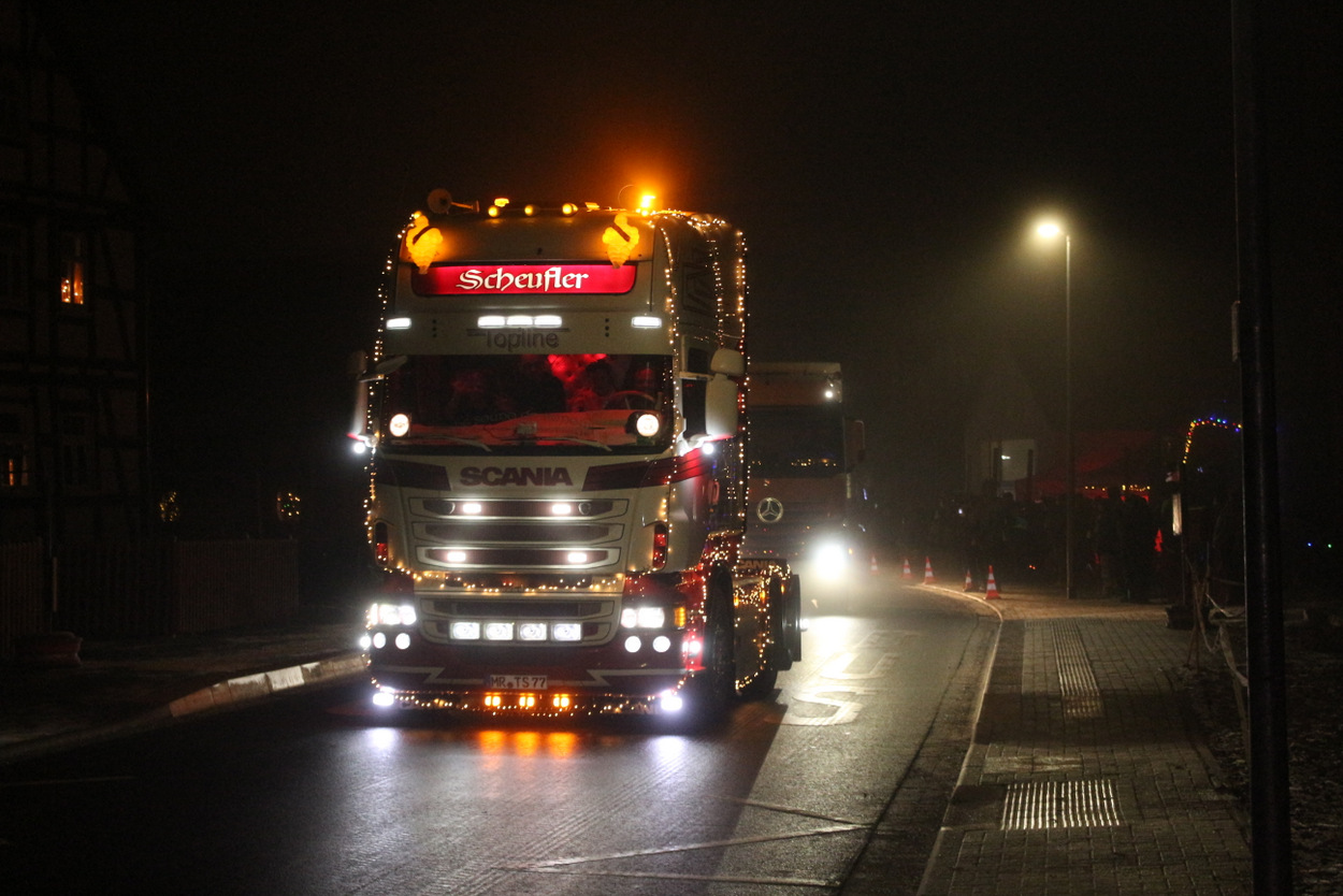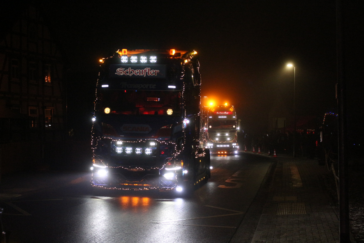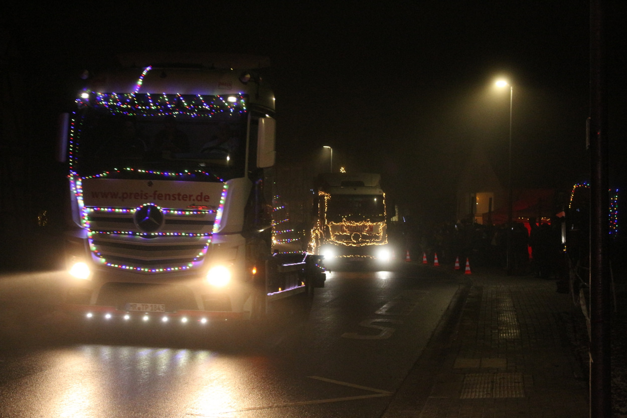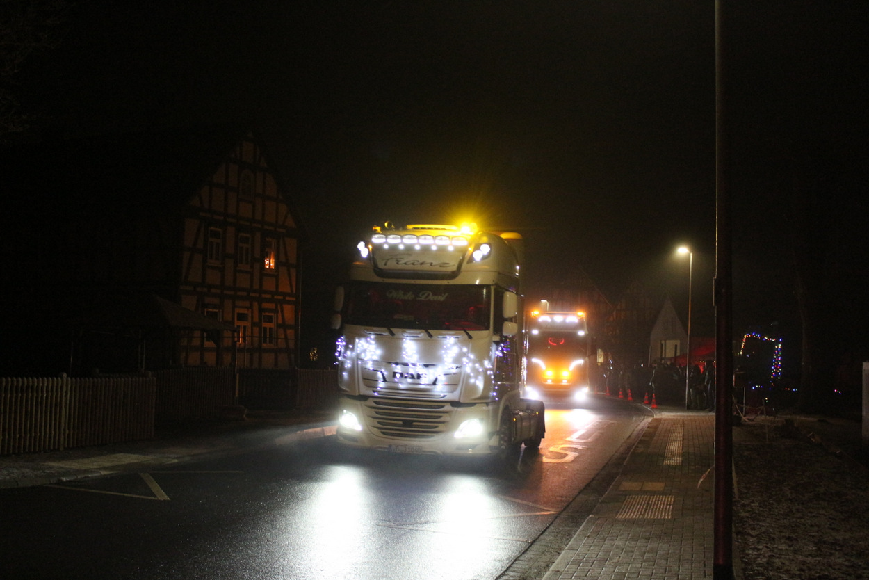 Marburg – Am Samstag dem 17. Dezember fuhren mehr als 100 weihnachtlich geschmückte Trucks mehrere Stunden durch den Landkreis Marburg-Biedenkopf. Die LKW von dem dritten Wheinachtskonvoi wurden mit unzähligen Lichterketten und Weihnachtsschmuck zurechtgemacht. Entlang der rund 70 Kilometer langen Route durch den Landkreis, verfolgten unzählige Menschen das weihnachtliche Spektakel. Nicht einmal die eisigen Temperaturen konnten die vielen Zuschauerinnen und Zuschauer davon abhalten. Gegen 17 Uhr machte sich der Lkw-Konvoi aus Breidenbach auf den Weg in Richtung Marburg Messeplatz. In fast jedem Dorf der Route entlang gab es für die Zuschauerinnen und Zuschauer warme Speisen und Getränke. Während der gesamten Fahrt hielten die Trucker immer wieder an, damit Spenden entgegengenommen werden konnten. Das gesammelte Geld geht dieses Jahr an den ambulanten Kinder- und Jugendhospizdienst in Marburg. Gegen 21:30 Uhr trafen die Trucks dann nach und nach bei ihrer letzten Station am Messeplatz in Marburg ein. Nach rund 5 Stunden war das Spektakel vorbei.