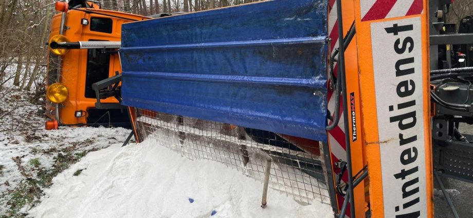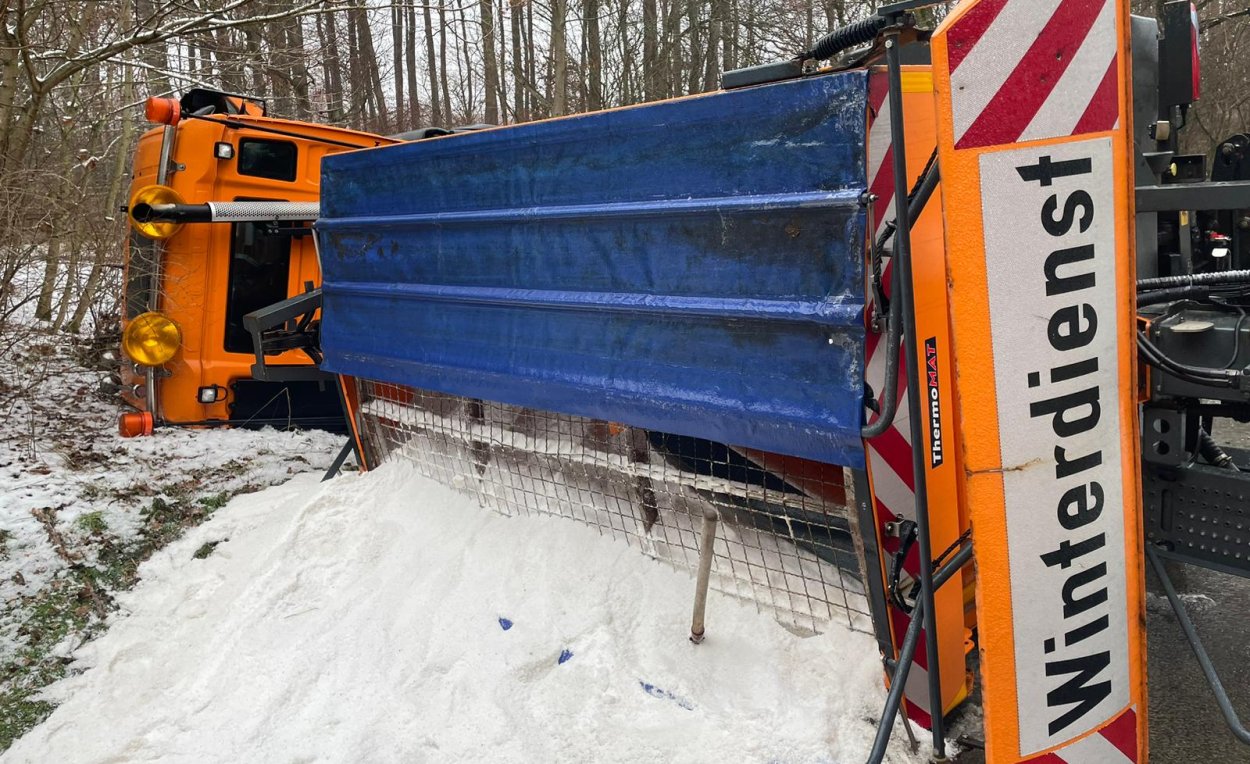 Streufahrzeug kippt auf die Seite