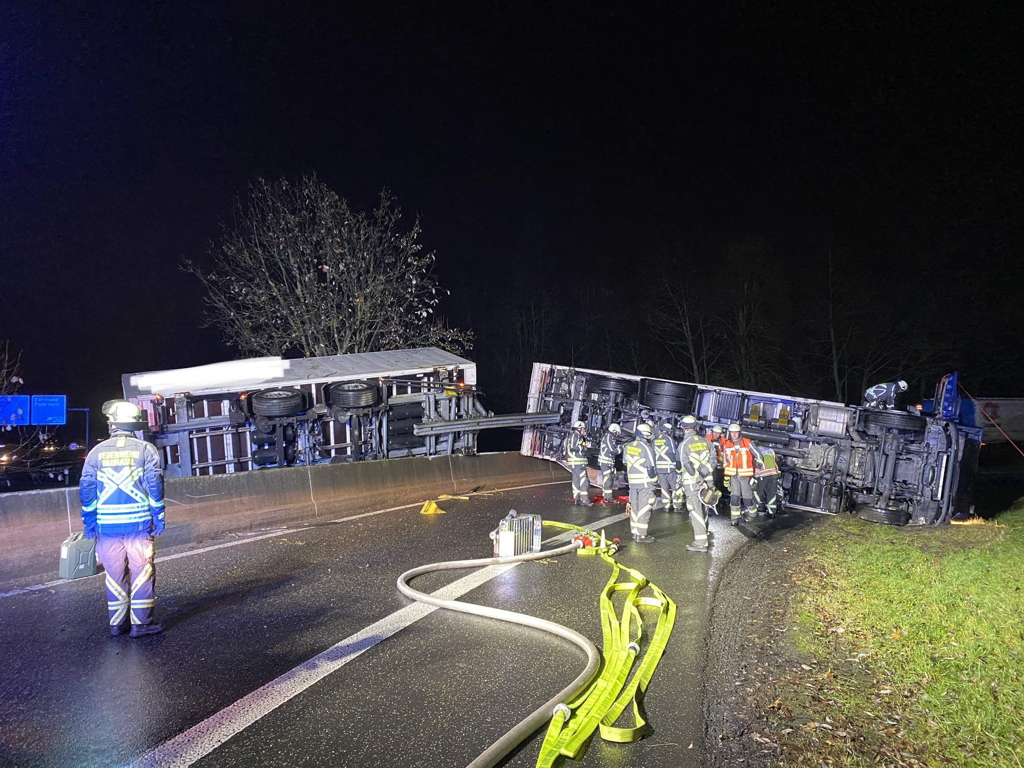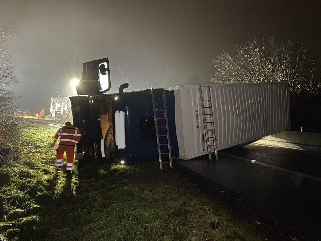 Umgestürzter LKW auf der A49 – Stundenlange Vollsperrung
