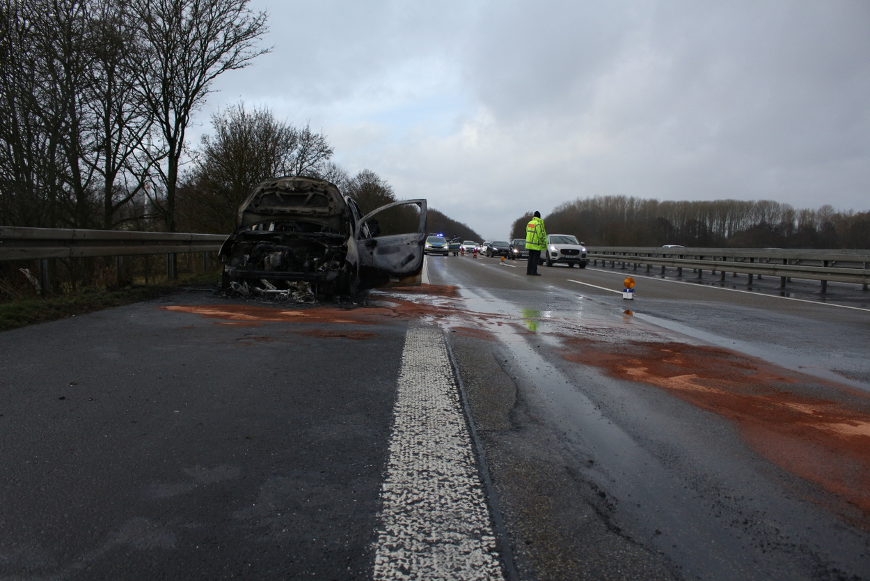 Kassel – am heutigen Samstagmittag gegen 13:00 Uhr wurde die Feuerwehr zu einem PKW Brand auf die A44 richtung Kassel alarmiert. Bei Eintreffen der ersten Einsatzkräfte stand der PKW in Vollbrand, mit einem Schnellangriff und unter Atemschutz wurde das Feuer gelöscht. Nach ersten Erkentnissen könnte ein Technischer defekt den Brand ausgelöst haben. Alle Fahrzeuginsassen konnten das Fahrzeug rechtzeitig verlassen. Verletzte wurde Glücklicherweise niemand. Die Autobahn war während des Löscheinsatzes in Fahrtrichtung Kassel voll gesperrt. Das Fahrzeug musste abgeschleppt werden. Wie hoch der Sachschaden beziffert wird, ist aktuell noch unklar. Im Einsatz war die Feuerwehr Habichtswald mit rund 25 Einsatzkräften und die Autobahnpolizei Baunatal.