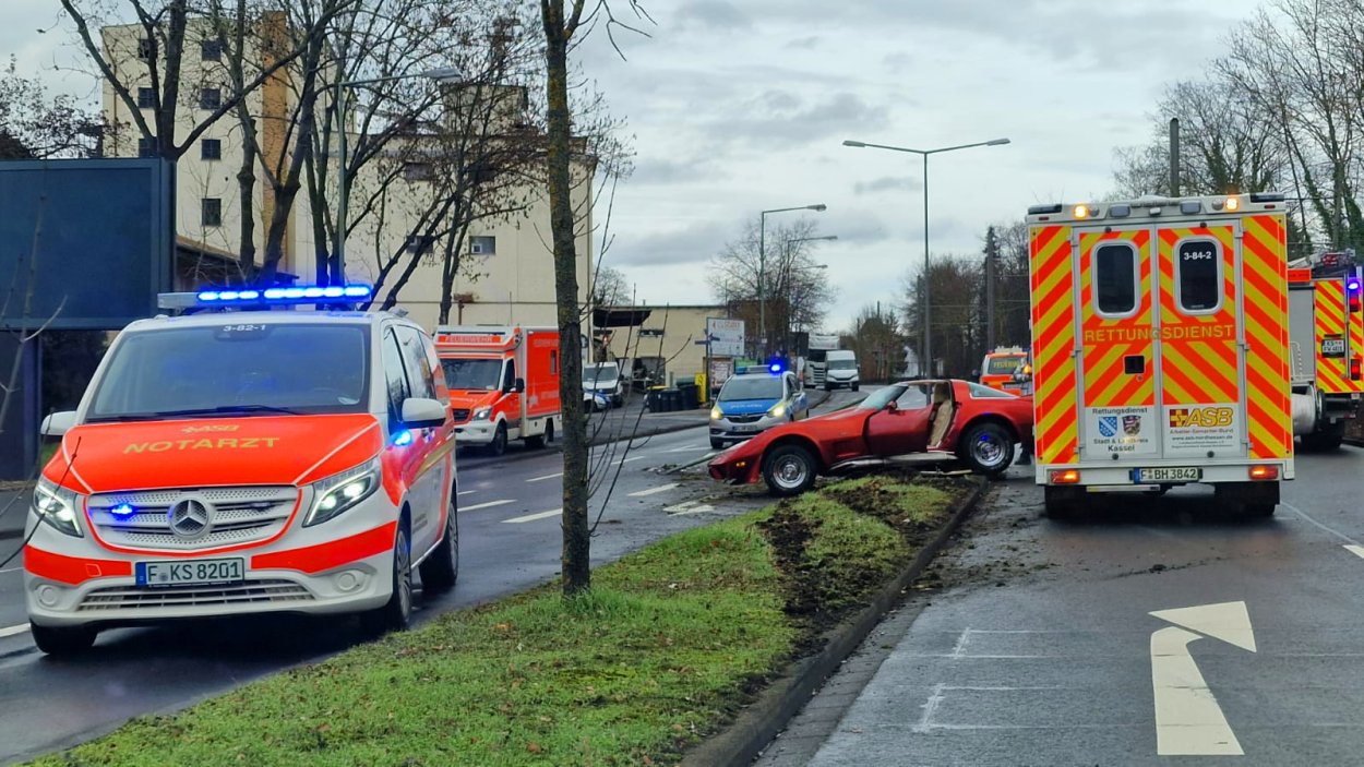 Kassel – Am Samstag (31.12) kam es auf der Leipziger Straße zu einem Alleinunfall. Der 21-jährige Fahrer war mit einer Corvette stadtauswärts unterwegs. Gegen 13 Uhr verlor er in Höhe Forstbachweg vermutlich aufgrund überhöhter Geschwindigkeit die Kontrolle über sein Fahrzeug, kam nach links von der Fahrbahn ab und krachte in einer Laterne. Der Fahrer aus Kassel blieb unverletzt. Seine 41-jährige Beifahrerin wurde leicht verletzt in ein Krankenhaus gebracht. An der Corvette entstand ein Schaden in Höhe von 15.000 Euro.