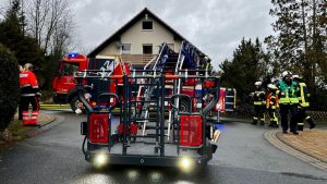 Bad Zwesten – Rund 60 Einsatzkräfte bestehend aus Feuerwehr und Rettungsdienst eilten am Dienstagmorgen zu einem Wohnhausbrand nach Bad Zwesten. Bereits aus der Ferne war eine starke Rauchentwicklung zu erkennen. Um kurz vor halb neun gingen nach Auskunft von Pressesprecher Christian Rinnert mehrere Notrufe über einen Wohnhausbrand in der Straße „Zum Treisberg“ in Bad Zwesten bei der Leitstelle Schwalm-Eder ein. Die alarmierten Einsatzkräfte stellten schnell fest, dass es sich dort um ein unbewohntes Gebäude handelt. Somit konnte sich die Feuerwehr umgehend um die Löschmassnahmen kümmern. Von außen qualmte es zunächst stark aus dem Dachbereich. Beim Innenangriff mit insgesamt drei Trupps unter Atemschutz, wurde brennendes Gerümpel sowie eine bereits in Brand stehende Wohnungstür vorgefunden. Durch die schnellen Lösch- und Lüftungsmaßnahmen konnte ein weiteres ausbreiten des Feuers verhindert werden. Die Brandursache ist noch unklar. Der Sachschaden wird auf rund 150.000 Euro geschätzt. Laut Rinnert werden Brandermittler der Polizei zeitnah die Ermittlungen aufnehmen. Insgesamt waren rund 60 Feuerwehreinsatzkräfte der Feuerwehren Bad Zwesten und Borken, sowie ein Rettungswagen der Malteser aus Jesberg vor Ort im Einsatz. Die Straße „Zum Treisberg“ war während der Löschmaßnahmen im Bereich der Einsatzstelle voll gesperrt. (mpu)