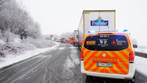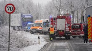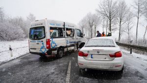 Wolfhagen – Auf der B450 zwischen Wolfhagen und Oelshausen kam es am Donnerstagmorgen zu einem Verkehrsunfall auf schneeglatter Fahrbahn. Ein 30-jähriger Fahrer eines Transporters befuhr die Bundesstraße von Oelshausen kommend in Fahrtrichtung Wolfhagen. In Höhe Istha kam er auf schneeglatter Fahrbahn ins Schleudern und geriet in den Gegenverkehr und krachte mit einem BMW zusammen. Die Feuerwehr Wolfhagen wurde gegen 10 Uhr zum Verkehrsunfall mit eingeklemmter Person alarmiert. Beim Eintreffen an der Einsatzstelle war keiner der beiden Fahrer eingeklemmt. Jedoch musste der Fahrer vom Transporter von der Feuerwehr Patienten schonend aus dem Fahrzeug befreit werden. Er kam nach einer Erstversorgung mit leichten Verletzungen in ein Krankenhaus. Die Fahrerin vom BMW wurde schwer, aber nicht lebensbedrohlich verletzt. Gegen 11 Uhr war die Unfallstelle wieder geräumt.