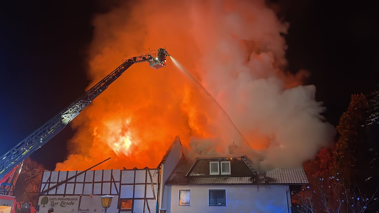 Staufenberg (Niedersachsen) – Großeinsatz am späten Donnerstagnachmittag an der Hessisch/Niedersächsische Landesgrenze in Staufenberg. Im Ortsteil Nienhagen kam es gegen 17 Uhr zu einem Scheunenbrand. Bereits auf der Anfahrt konnten die Einsatzkräfte eine starke Rauchentwicklung sehen. Die Flammen griffen auf das angrenzende Wohnhaus sowie eine Gaststätte über. Aufgrund der schlechten Wasserversorgung wurden mehrere Tanklöschfahrzeuge aus dem Landkreis Kassel angefordert. Im Pendelverkehr konnte so die Wasserversorgung aufrecht gehalten werden. Außerdem wurde eine weitere Drehleiter aus Kaufungen angefordert. Eine Person wurde leicht verletzt. Die Bewohner kommen bei Verwandte unter. Anwohner haben die Verpflegung der Einsatzkräfte übernommen. Der Sachschaden wird aktuell auf eine Million Euro geschätzt. Im Einsatz waren die Feuerwehr aus allen Staufenberger Ortsteilen, Hann. Münden, Rosdorf, Göttingen, Kaufungen, Niestetal, Berufsfeuerwehr Kassel, Baunatal, Witzenhausen und die Werkfeuerwehr Mercedes Benz aus Kassel. Gegen 22.45 Uhr war das Feuer unter Kontrolle. Ein Bagger wurde angefordert, um die Trümmer auseinander ziehen zu können, um besser die Glutnester abzulöschen.