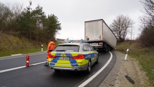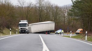 Breuna – Zu einem LKW-Unfall kam es am Montagmittag in der A44 Abfahrt von Breuna. Ein Sattelzug befuhr die Autobahn von Kassel kommend in Fahrtrichtung Dortmund. In Höhe Breuna fuhr der LKW ab und verlor in der Abfahrt sein Auflieger. Die Sattelzugmaschine war bereits mehrere hundert Kilometer unterwegs. Warum der Auflieger plötzlich von der Zugmaschine getrennt wurde, ist unklar. Für die Bergung mit einem Kran musste die Auf und Abfahrt voll gesperrt werden.