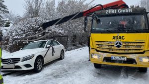 Kassel – gegen 13:00 Uhr wurde ein Abschleppunternehmen aus Kassel zu einem Unfall in den „Hühnerbergweg“ gerufen. Vor Ort angekommen, stellte der Fahrer des Unternehmens fest, das sich eine Person noch auf dem Beifahrersitz befand, da das Hinterrad drohte abzurutschen, rief der Fahrer des Abschleppdienstes einen Rettungswagen, um den Gesundheitlichen zustand des Beifahrers zu kontrollieren die Berufsfeuerwehr aus Kassel wurde zur Unterstützung mit zum Unfallort alarmiert. Da das Fahrzeug vorne verkeilt war, musste ein PKW Kran eines Abschleppfahrzeugs nachgefordert werden. Da sich durch den Bachlauf eine Personenbergung schwierig gestaltete, wurde unter Beobachtung der Feuerwehr und des Rettungsdienstes das Fahrzeug leicht angehoben und auf festen Untergrund gestellt, danach wurde die Person aus dem Fahrzeug geholt und medizinisch kontrolliert. Das Fahrzeug wurde im Frontbereich massiv beschädigt und musste im weiteren Verlauf abgeschleppt werden. Verletzt wurde bei dem Unfall niemand. Im Einsatz war die Berufsfeuerwehr Kassel, der Rettungsdienst und das Abschleppunternehmen Zeki aus Kassel.