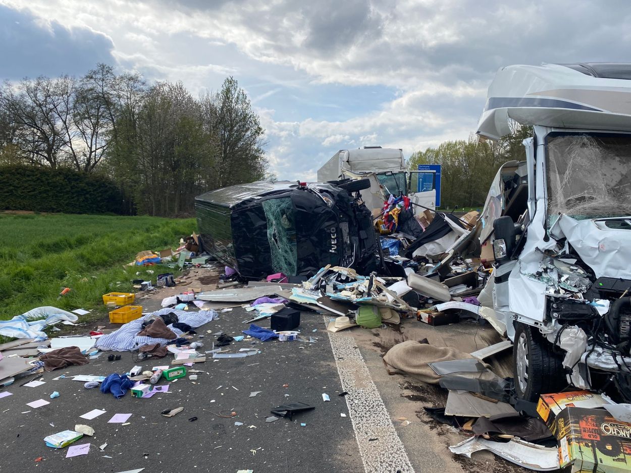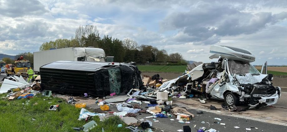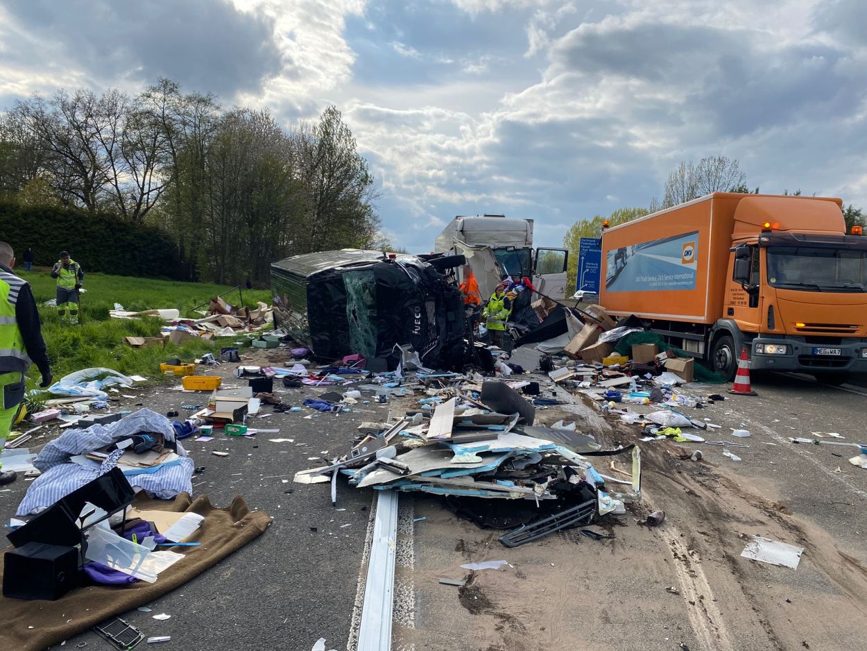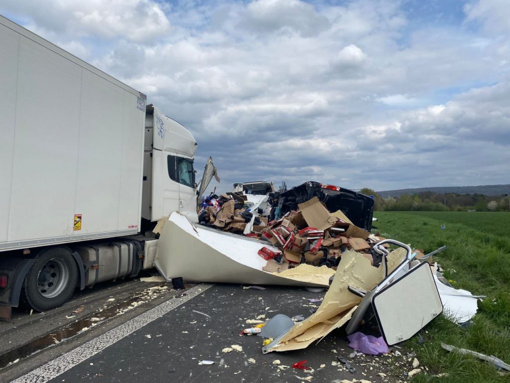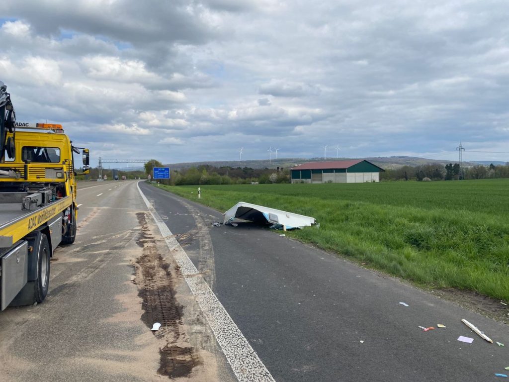 Kassel – Zu erheblichen Beeinträchtigungen führt ein Verkehrsunfall auf der A44 zwischen dem Kreuz Kassel-West und Autobahndreieck Kassel-Süd. Gegen 13:30 Uhr fuhren aus bislang ungeklärter Ursache an einem Stauende vier Fahrzeuge, darunter ein Wohnmobil und drei Lkw, ineinander. Bei dem Zusammenstoß der Fahrzeuge wurden drei Personen leicht verletzt und es entstand ein Gesamtschaden von 75.000 Euro. Die A44 ist aktuell (20 Uhr) noch immer wegen Bergungsarbeiten voll gesperrt. Die Sperrung wird noch einige Zeit andauern. Der Verkehr wird umgeleitet. Bei neuen Informationen berichten wir nach.