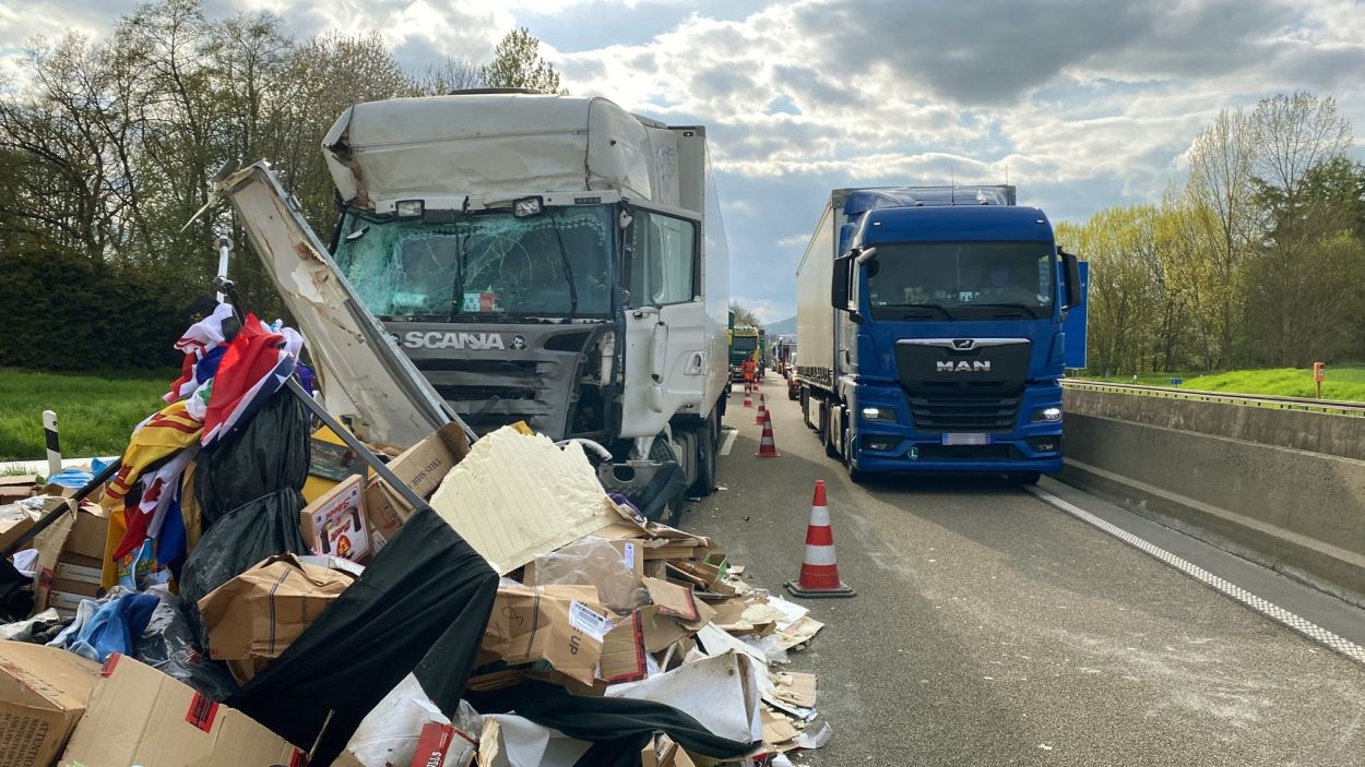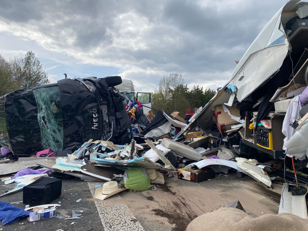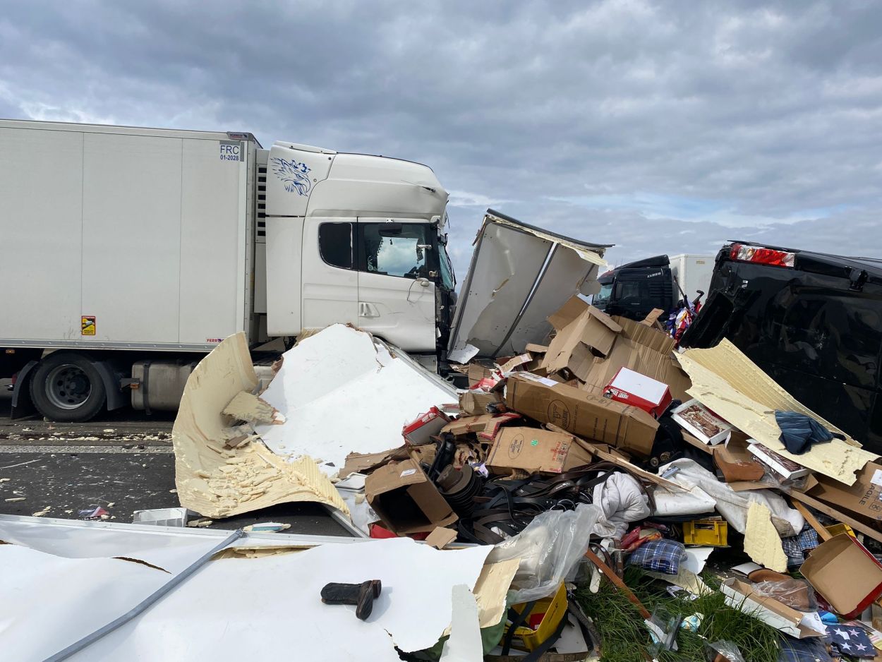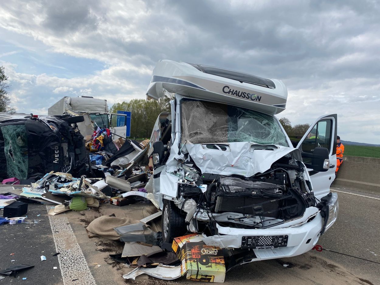 Kassel – Zu erheblichen Beeinträchtigungen führt ein Verkehrsunfall auf der A44 zwischen dem Kreuz Kassel-West und Autobahndreieck Kassel-Süd. Gegen 13:30 Uhr fuhren aus bislang ungeklärter Ursache an einem Stauende vier Fahrzeuge, darunter ein Wohnmobil und drei Lkw, ineinander. Bei dem Zusammenstoß der Fahrzeuge wurden drei Personen leicht verletzt und es entstand ein Gesamtschaden von 75.000 Euro. Die A44 ist aktuell (20 Uhr) noch immer wegen Bergungsarbeiten voll gesperrt. Die Sperrung wird noch einige Zeit andauern. Der Verkehr wird umgeleitet. Bei neuen Informationen berichten wir nach.