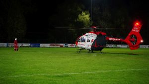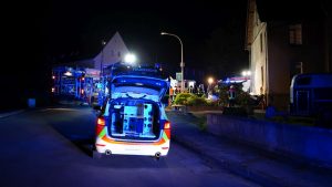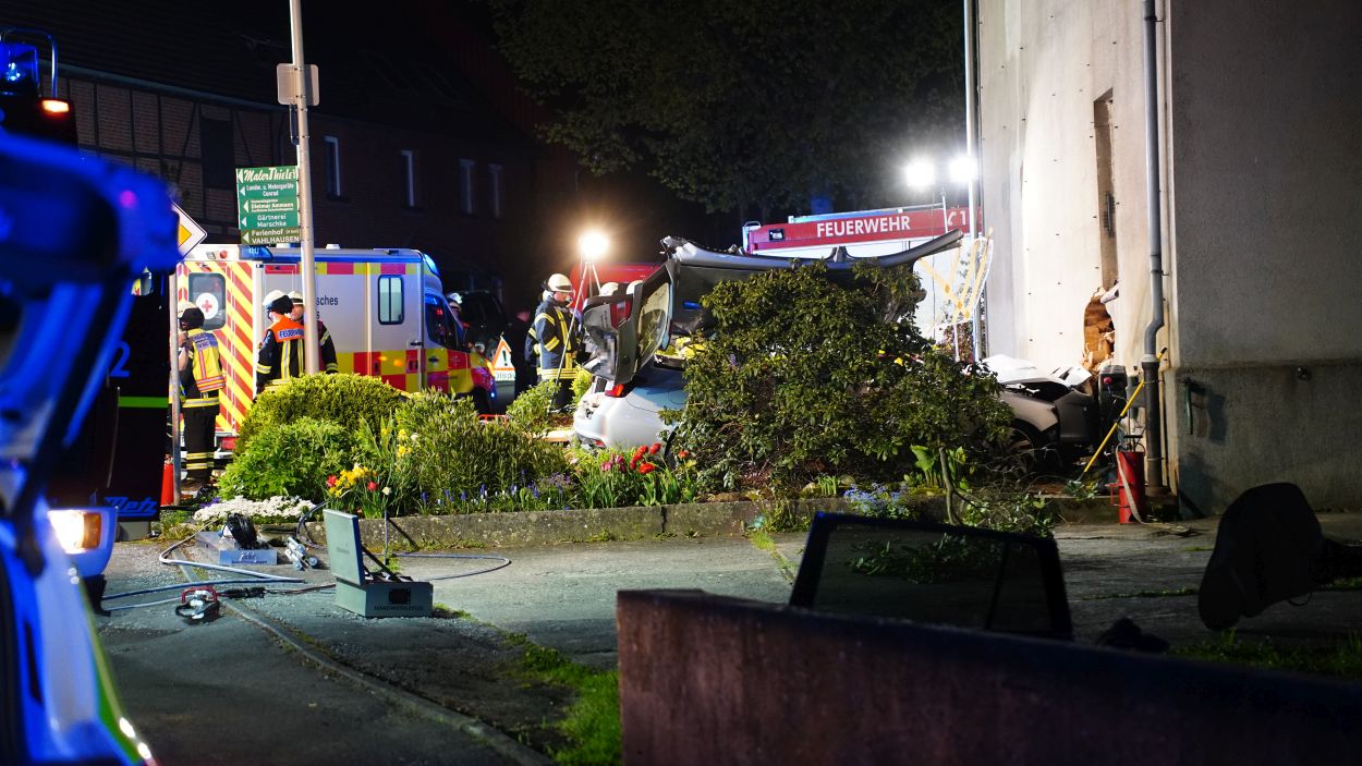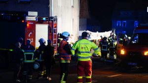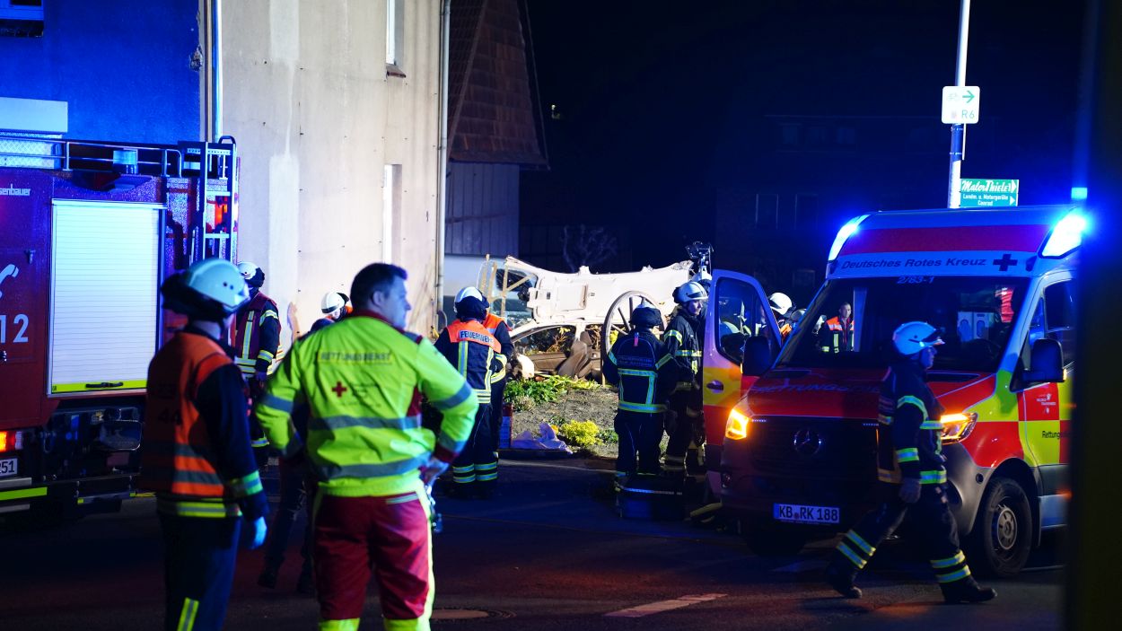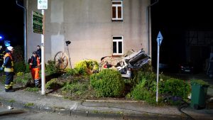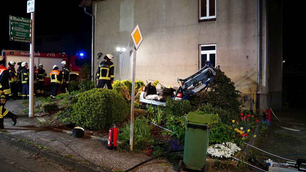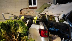 Bad Arolsen – Zu einem schweren Verkehrsunfall kam es am Sonntagabend gegen 21.30 Uhr in Bad Arolsen-Landau. Der Fahrer eines PKW befuhr die Sandlandstraße in Richtung Arolser Straße. Aus bislang noch unbekannten Gründen fuhr der Fahrer im Kreuzungsbereich gerade aus und prallte in die Wand eines Wohnhauses. Der Fahrer wurde dabei in seinem Fahrzeug eingeklemmt und musste von der Feuerwehr mit schwerem Gerät befreit werden. Nach der Erstversorgung an der Unfallstelle wurde der Mann mit dem Rettungswagen zum Sportplatz transportiert. Hier kam der Rettungshubschrauber Christoph Gießen, der bereits für den Weitertransport in ein Krankenhaus wartete. Die Bewohner musste vorsorglich das Haus verlassen. Ein Baugutachter muss jetzt prüfen, inwieweit das Wohnhaus beschädigt wurde. Die Arolser Straße war für die Rettungs- und Bergungsarbeiten voll gesperrt.