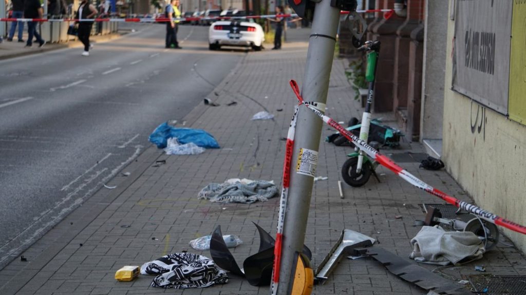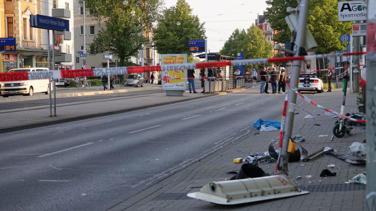 Kassel – Am Samstag gegen 17.30 Uhr kam es auf der Frankfurter Straße zu einem schweren Verkehrsunfall. Nach bisherigen Informationen, befuhr ein 37-Jähriger die Frankfurter Straße vom Weinberg kommend in Richtung DEZ, dabei musste der 37-Jährige einen PKW ausweichen, der aus der Heinrich-Heine-Straße kam. Durch das Ausweichmanöver nahm der Mustang-Fahrer eine Ampelanlage mit. An der Ampelanlage stand auch eine Person mit einem E-Scooter, die vom PKW frontal erwischt wurde. Der E-Scooter-Fahrer wurde schwer verletzt in ein Krankenhaus eingeliefert. Der PKW-Fahrer blieb unverletzt. Ein Gutachter wurde in die Unfallermittlung hinzugezogen. Die Frankfurter Straße war bis 21 Uhr voll gesperrt.