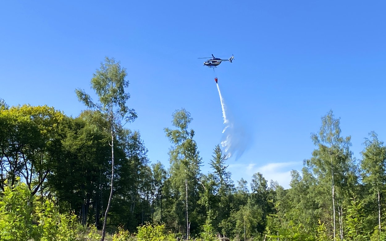 Kassel – Am Samstagmittag kam es zu einem Waldbrand in Bad Wilhelmshöhe. In der Nähe des Herbsthäuschens gerieten am Anfang rund 400 qm Wald in Brand. Das Feuer breitete sich rasch auf eine Größe von 3.000 qm aus. Zur Sicherheit wurde die L3298 zum Herkules hoch gesperrt. Rund 130 Feuerwehrkräfte aus Stadt und Landkreis Kassel konnten mit Hilfe mehrere Tanklöschfahrzeuge und einem Hubschrauber das Feuer am Abend unter Kontrolle bringen. Eine Raupe und Mulchgeräte kamen ebenfalls zum Einsatz. Derzeit laufen massive Nachlöscharbeiten, um Glutnester im Waldboden abzulöschen. Besucher der heute Abend stattfindenden beleuchteten Wasserspiele werden gebeten, den Bereich weiträumig zu umfahren.
