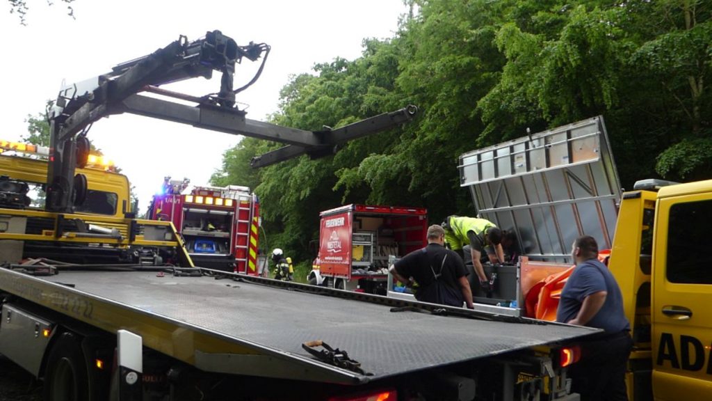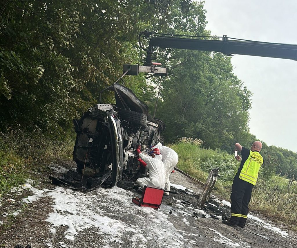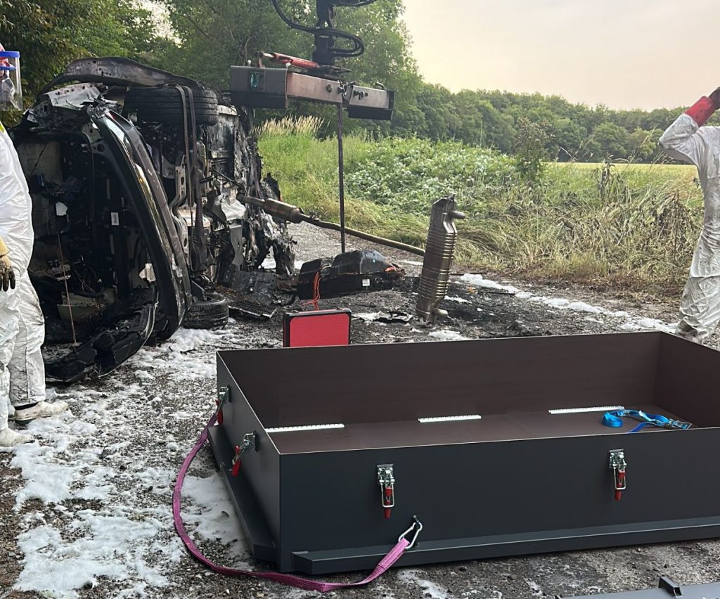 E-Auto brannte bei Niestetal – Neue Technik bei der Bergung
