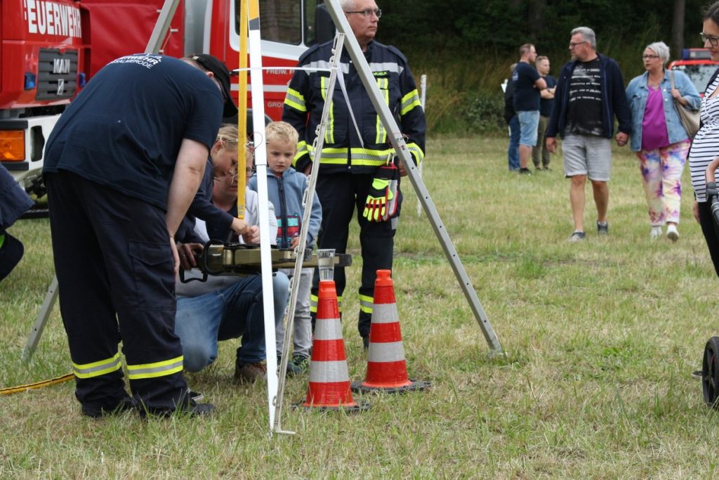 Lohfelden – Tag der offenen Tore hieß es in Lohfelden, dort wurden Fahrzeuge zum Besichtigen ausgestellt, für Klein und Groß gab es dazu noch viele Aktionen, wo sie sich unter Beweis stellen konnten. Vor Ort gab es ein Mini-Löschzug, Hüpfburgrutsche, Kinderschminken und natürlich ein Blick hinter die Kulissen. Für Essen und Trinken wurde natürlich auch gesorgt. Ausgestellt wurden Fahrzeuge der Feuerwehr Lohfelden und dem ASB. Am Abend gegen 21:00 Uhr öffnete dann die Disco in der Fahrzeughalle.