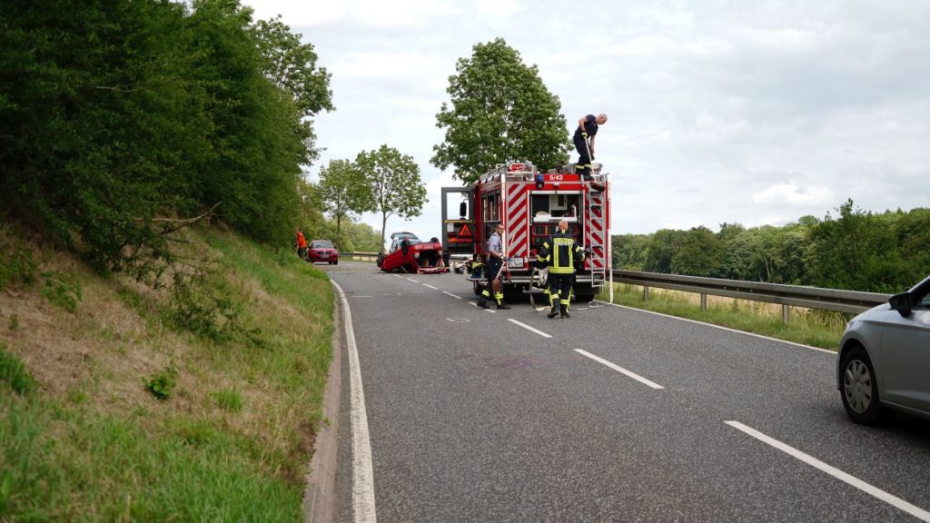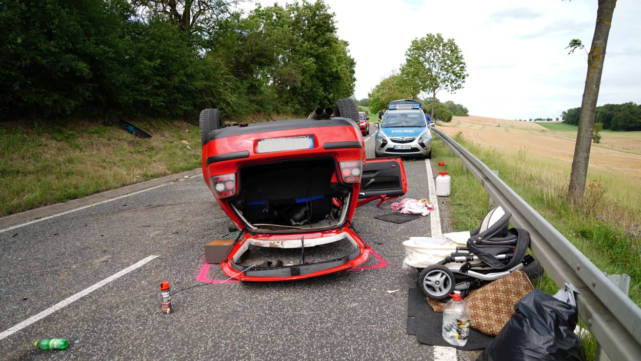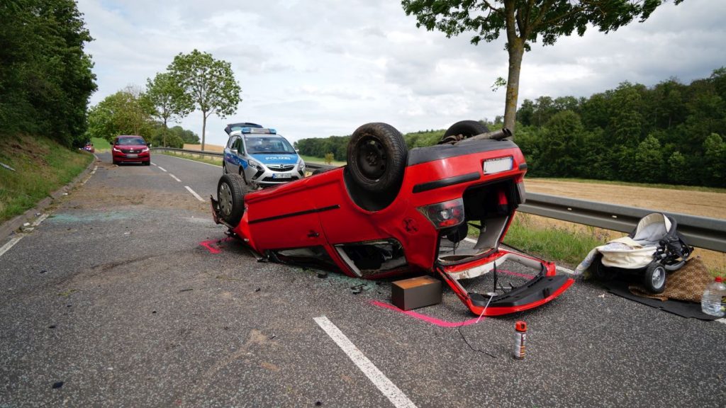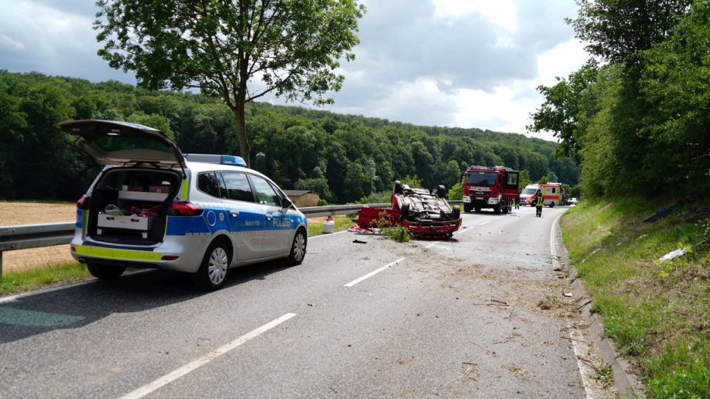 Liebenau – Auf der L 3212 zwischen Liebenau-Niedermeiser und Hofgeismar kam es am Montag gegen 14.30 Uhr zu einem schweren Verkehrsunfall. Nach bisherigen Informationen, befuhr ein VW Golf, in dem sich ein 42-jähriger Mann, eine 43-jährige Frau und ein Säugling befanden, die Landstraße von Hofgeismar kommend. Nach Zeugenangaben soll der VW auf der Landesstraße ausgeschert sein, um ein anderes Auto zu überholen. Als sich ein anderes Fahrzeug im Gegenverkehr näherte, soll der VW Golf wieder nach rechts gezogen sein, streifte den überholten Pkw, kam dann nach rechts von der Fahrbahn ab und überschlug sich auf dem Grünstreifen. Das Baby und die Frau wurden aus dem PKW geschleudert. Der Säugling wurde von Ersthelfern aus einem Gebüsch gerettet. Die Frau kam erst rund 35 Meter weiter auf der Straße zum Liegen. Alle drei Personen erlitten schwere Verletzungen und wurden von Rettungskräften in Kasseler Krankenhäuser gebracht. Die Verletzungen der 43-jährigen Frau sind nach derzeitigen Erkenntnissen lebensbedrohlich. Wer den VW Golf zum Unfallzeitpunkt gesteuert hat, konnte bisher noch nicht eindeutig geklärt werden. Zur Rekonstruktion des Unfallhergangs ist ein Gutachter an der Unfallstelle eingesetzt. Die Landstraße war für mehrere Stunden voll gesperrt.