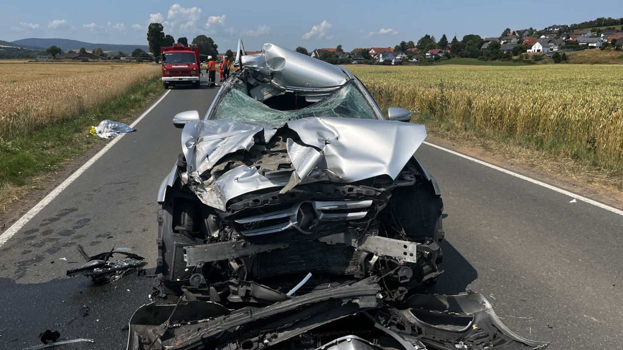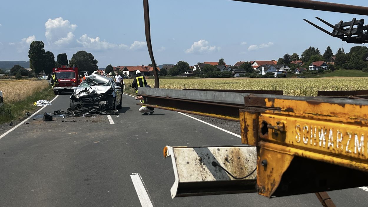 Edertal – Zu einem Verkehrsunfall mit drei schwerverletzten Verkehrsteilnehmern, kam es Sonntagnachmittag auf der Landstraße zwischen Edertal-Wellen und Fritzlar. Ein PKW krachte unter den Anhänger einer landwirtschaftlichen Zugmaschine. Ersten Erkenntnissen zur Folge befuhr ein Treckergespann die Landstraße von Wellen in Richtung Fritzlar. Direkt dahinter fuhren zwei weitere Verkehrsteilnehmer. Nur wenige hundert Meter hinter dem Ortsschild beabsichtigte der Fahrer des Schleppergespanns nach links in einen Feldweg einzubiegen. Zeitgleich setzte der hintere der beiden PKW zum Überholen an. Offenbar erkannte der 53-jährige Mercedesfahrer das Vorhaben des Landwirtes nicht und krachte nahezu ungebremst unter den Anhänger. Dabei wurde das Dach des PKW beinahe bis zur Kopfstütze des Beifahrersitzes aufgerissen. Der Fahrer und der auf der Beifahrerseite sitzende 12-jährige Sohn wurden durch den harten Aufprall schwer verletzt und kamen in ein nahegelegenes Krankenhaus. Auch die Mutter, welche im Font des Fahrzeuges saß, wurde ebenfalls schwer verletzt und musste mit dem Rettungshubschrauber Christoph 25 (Siegen) in ein Krankenhaus nach Kassel geflogen werden. Der Fahrer des Schleppergespanns blieb glücklicherweise nahezu unverletzt. Vorsorglich wurde er in ein umliegendes Krankenhaus transportiert.