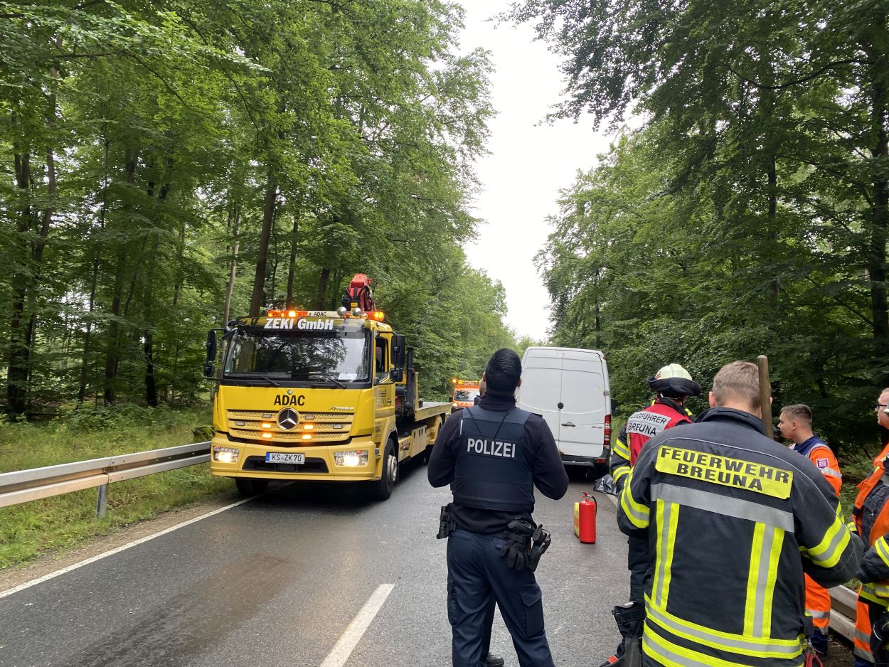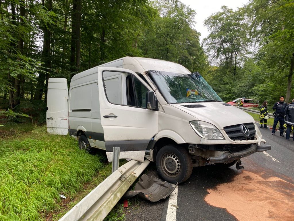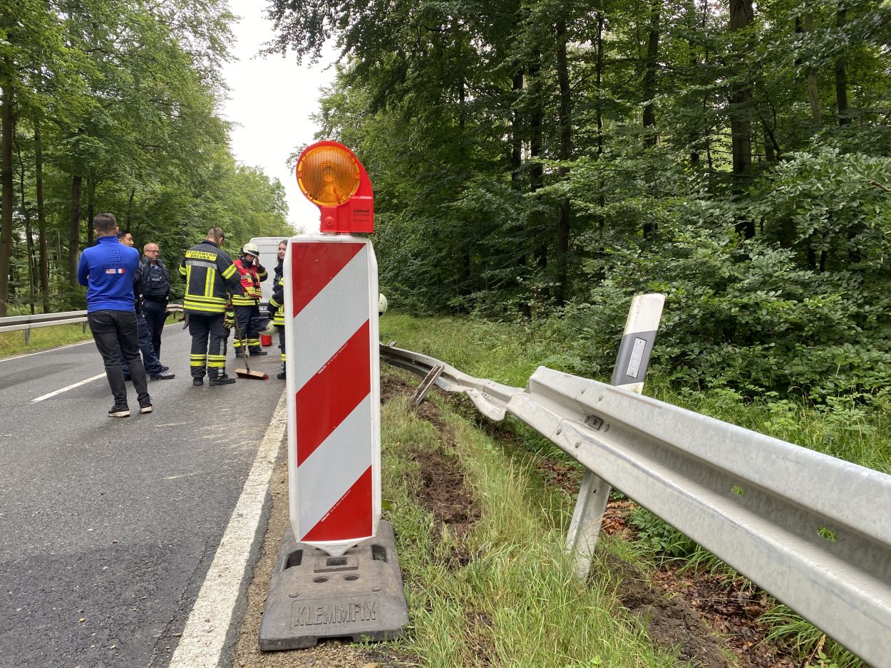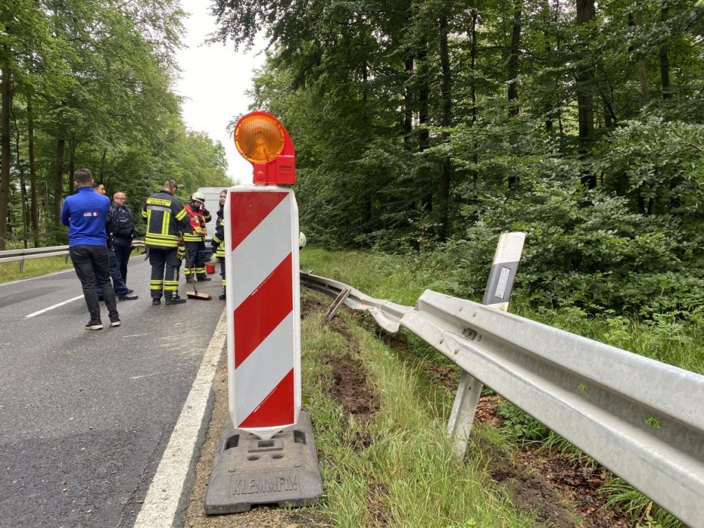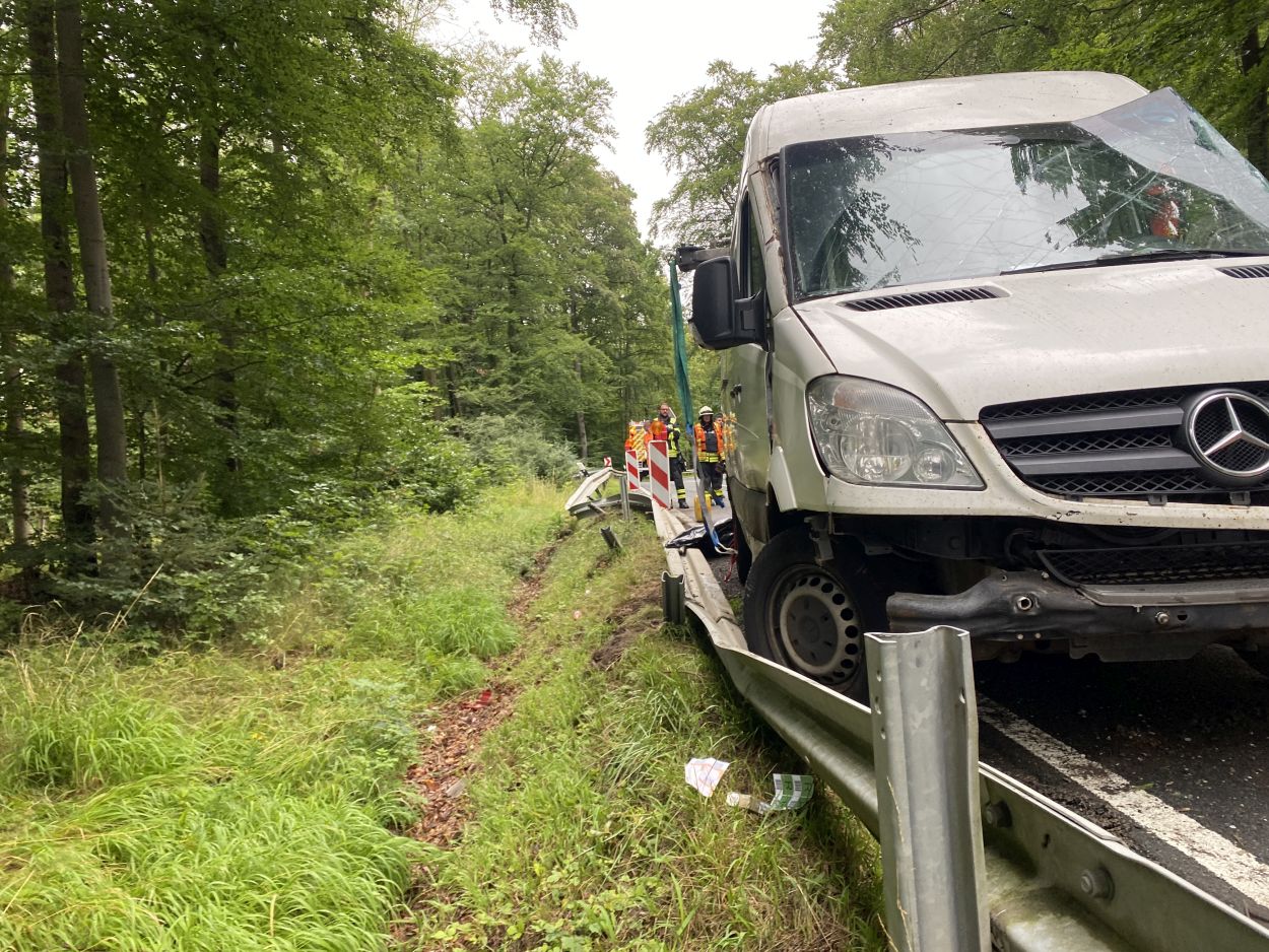 Breuna – Glück im Unglück hatte am Freitagmorgen ein Sprinter-Fahrer bei einem Verkehrsunfall bei Breuna auf der L3080. Der 24-jährige Fahrer war gegen 06.45 Uhr von Oberlistingen nach Breuna unterwegs. In einer Linkskurve kam er nach rechts von der Fahrbahn ab, rammte die Schutzleitplanke, überschlug sich und kam dann auf der Leitplanke zum Stehen. Wie durch ein Wunder wurde der Fahrer nur leicht und kam vorsorglich in ein Krankenhaus nach Warburg. Die alarmierte Feuerwehr aus Breuna klemmte die Batterie ab und nahm auslaufende Betriebsstoffe auf. Gegen 09.30 Uhr war die Unfallstelle geräumt. Der Sachschaden an der Schutzleitplanke wird auf 15.000 Euro geschätzt, der Schaden am Sprinter wird mit 1.500 Euro angegeben.