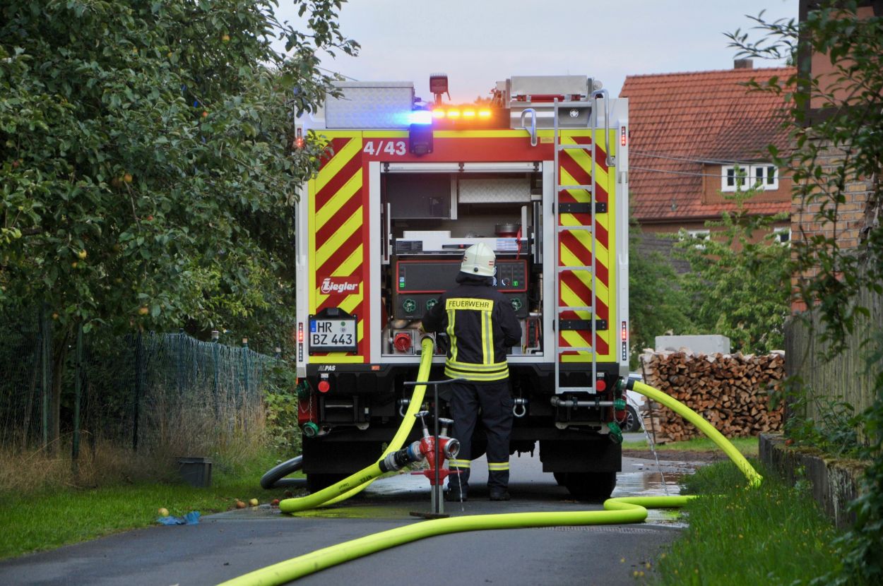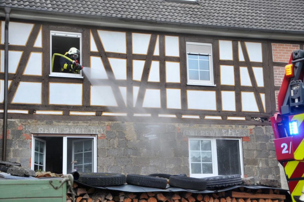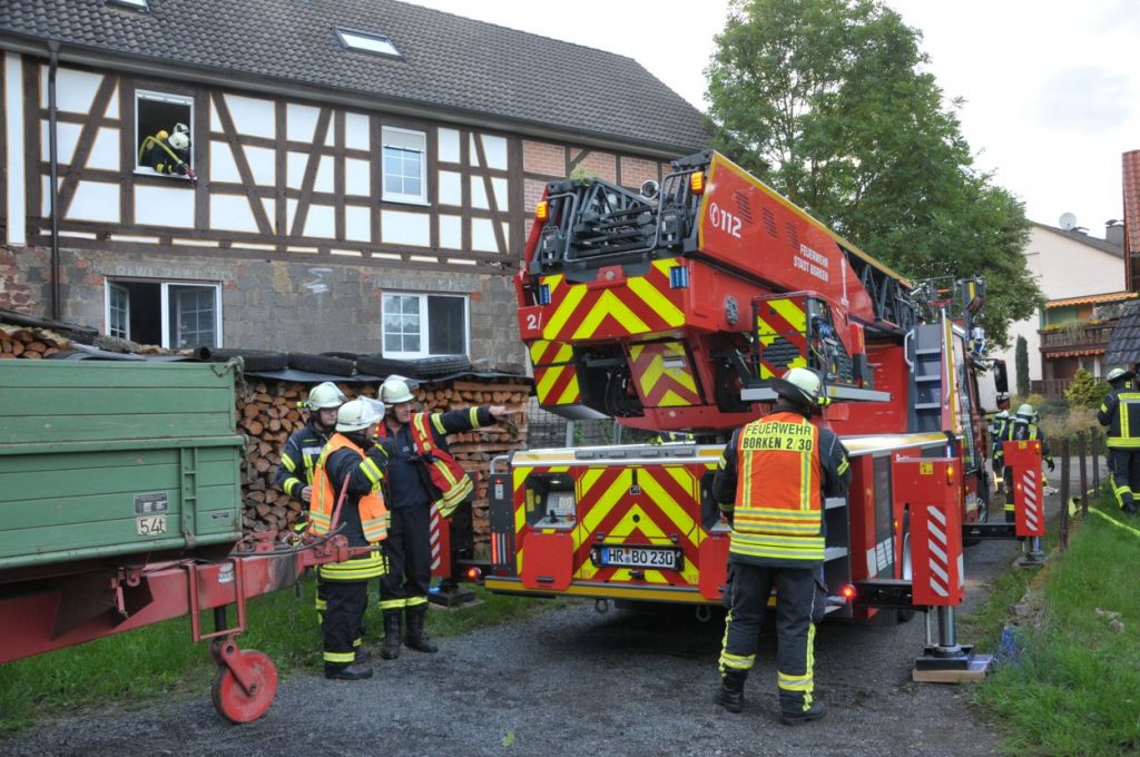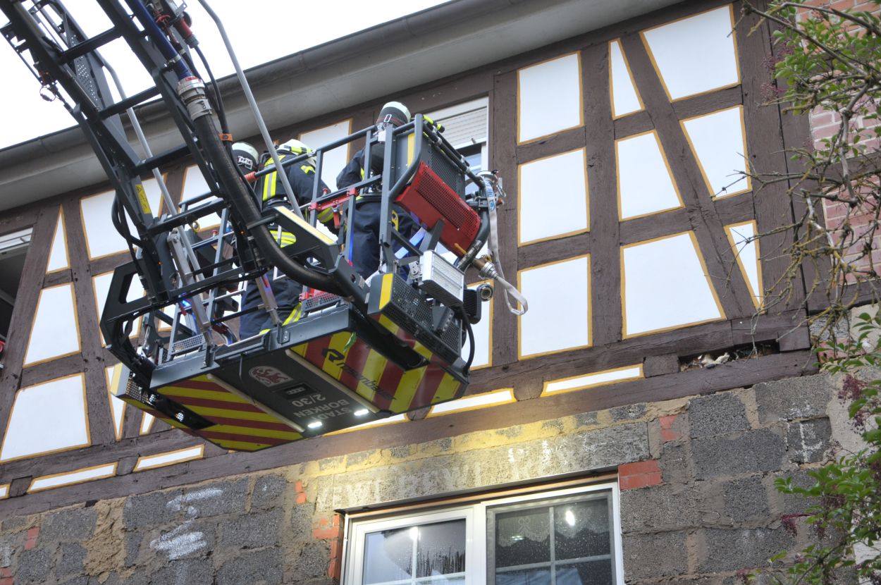 Nachdem am Dienstagmorgen der Besitzer eines Fachwerkhauses in Niederurff aufgrund eines Schornsteinbrandes den ersten Schrecken bekam und die Feuerwehr rufen musste, folgte am Abend direkt der Zweite. Aus einer Fachwerkwand auf der Rückseite des Gebäudes qualmte es aus unerklärlichen Gründen. Nach der Sichtung der ersten Brandbekämpfer stellte sich heraus, dass der zwischenzeitlich zunehmende Rauch aus der Zwischendecke des Fachwerkhauses kam. Um an den verdeckten Brandherd zu gelangen und um alle Glutnester ausfindig zu machen, musste die Zwischendecke zwischen Erdgeschoss und Obergeschoss sowie eine weitere Wandverkleidung geöffnet werden. Von außen wurden mit Hilfe einer Drehleiter kleinere Gefache geöffnet. Nachdem die Glutnester abgelöscht wurden, entschied sich die Einsatzleitung über Nacht eine Brandwache einzurichten. Diese wurden von der Feuerwehr Niederurff übernommen. Nach Informationen von Christian Rinnert, Kreisbrandmeister Presse, waren in der Nascht keine weiteren Löschmaßnahmen nötig.