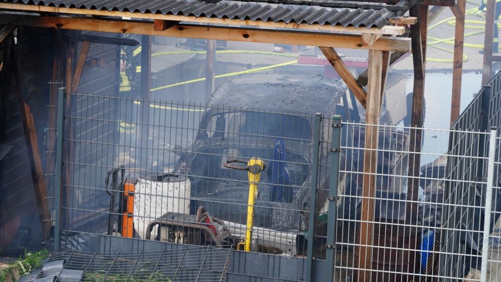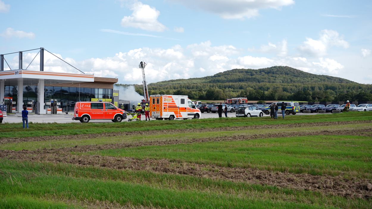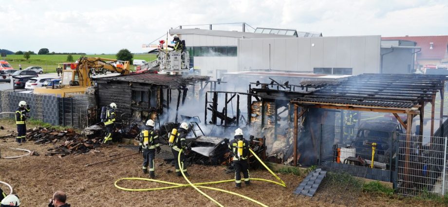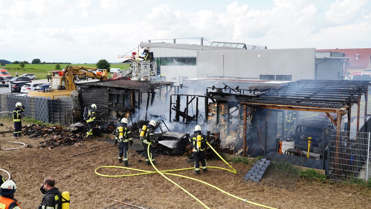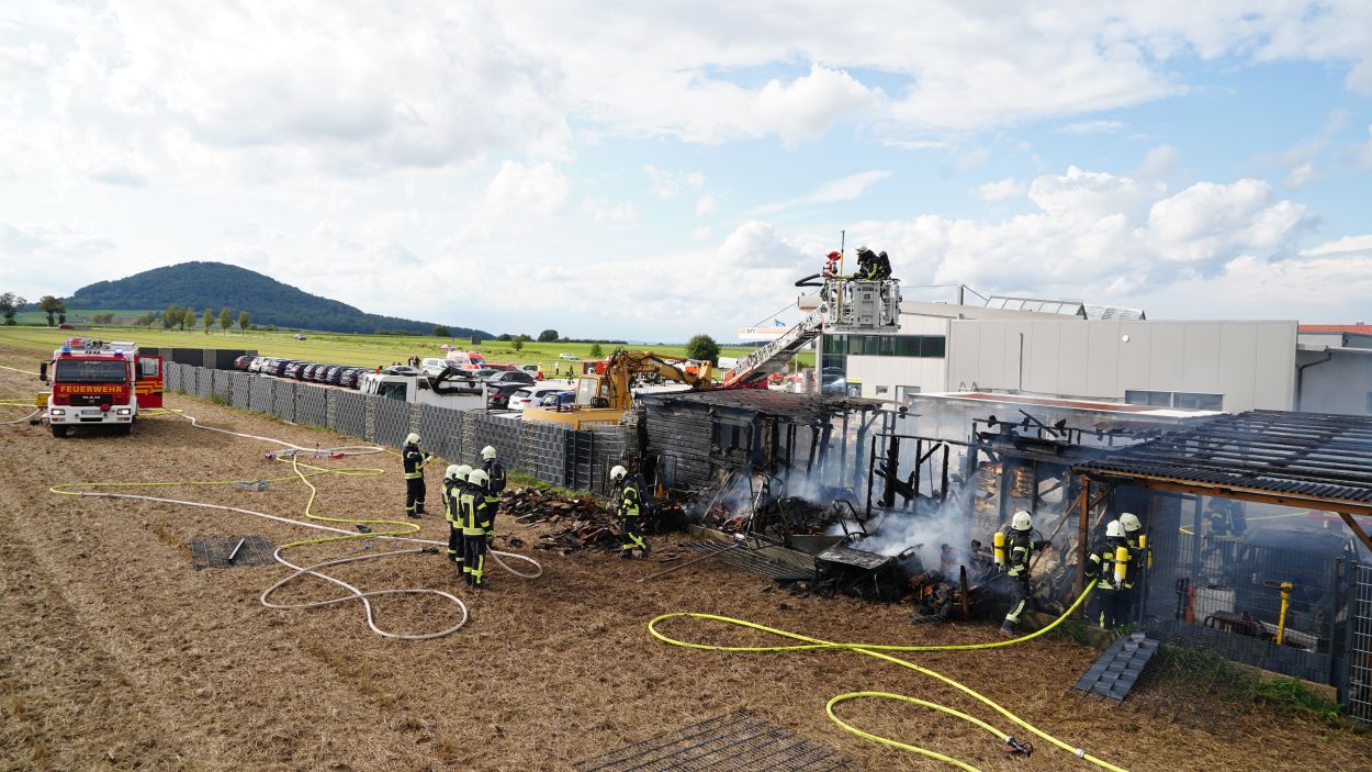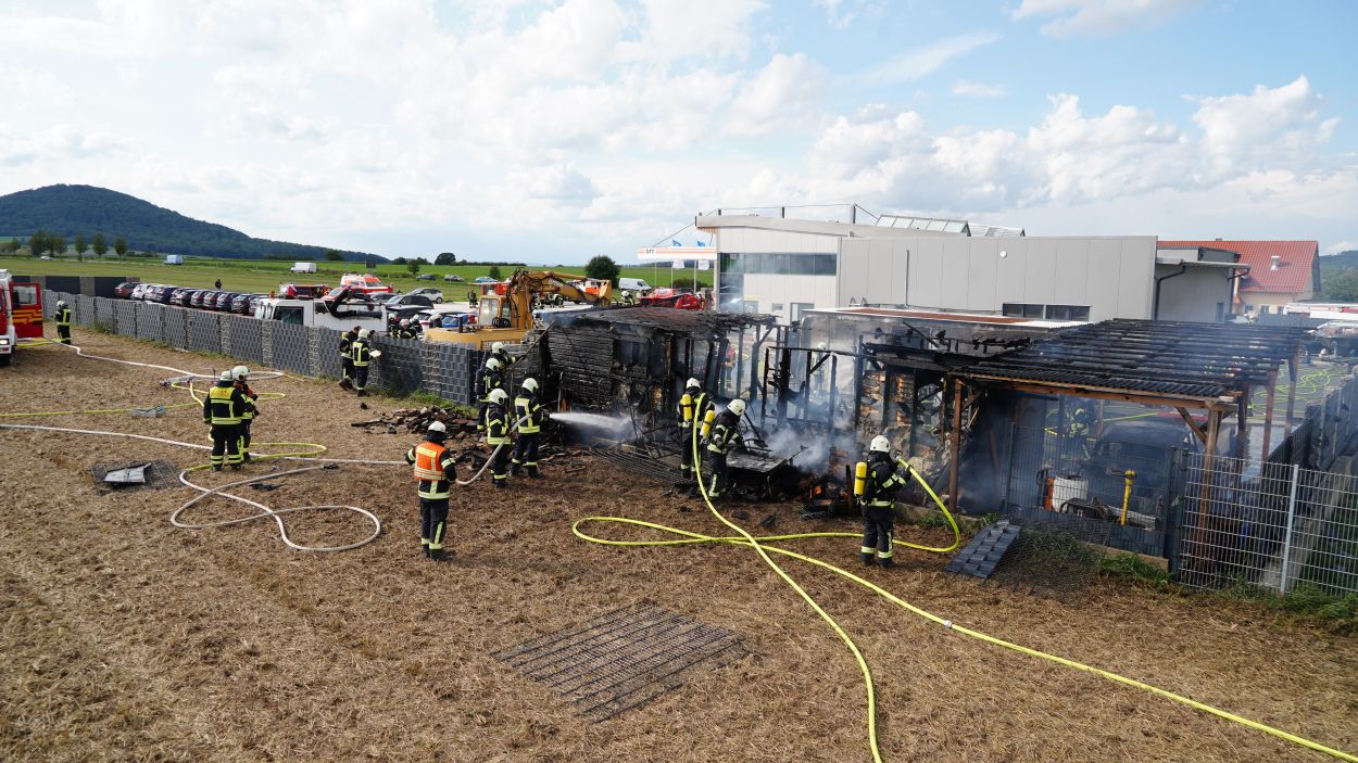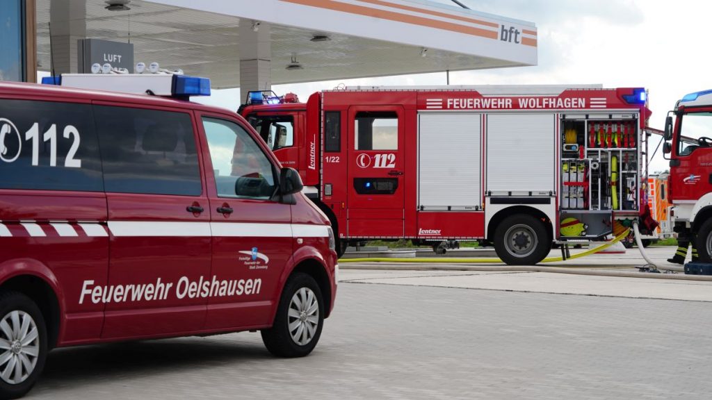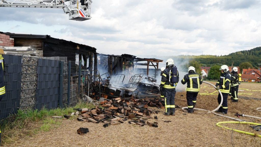Zierenberg – Zu einem größeren Einsatz kam es am Donnerstagnachmittag gegen 15.30 Uhr im Zierenberger Ortsteil Oelshausen. Zunächst wurde die Feuerwehr mit dem Alarmstichwort „F2 Brand im Gebäude“ in den „Neuer Weg“ alarmiert. Bereits auf der Anfahrt war eine starke Rauchentwicklung zu sehen, daraufhin wurde das Alarmstichwort auf „F3 Brand Sonderobjekt“ erhöht. Bei Ankunft der ersten Einsatzkräfte brannte eine kleine Hütte/Lager neben eine Werkstatt auf dem Tankstellengelände. Nachdem die Gefahrenstellen erkundet wurden, galt es als Erstes die Tankstelle zu schützen. Im weiteren Einsatzverlauf wurde eine Lagerhalle hinter der Tankstelle geschützt sowie ein angrenzendes Feld. Die rund 130 Einsatzkräfte aus Zierenberg, Wolfhagen, Habichtswald und der Berufsfeuerwehr Kassel hatten das Feuer schnell im Griff. Was genau in der Hütte gelagert wurde, war nicht mehr zu erkennen. Auch ein Oldtimer, der in einer Garage neben der Hütte war, fiel den Flammen zum Opfer. Verletzt wurde niemand. Wie es zu dem Brand kommen konnte, ist unklar. Die Löscharbeiten dauerten bis in die Abendstunden an.