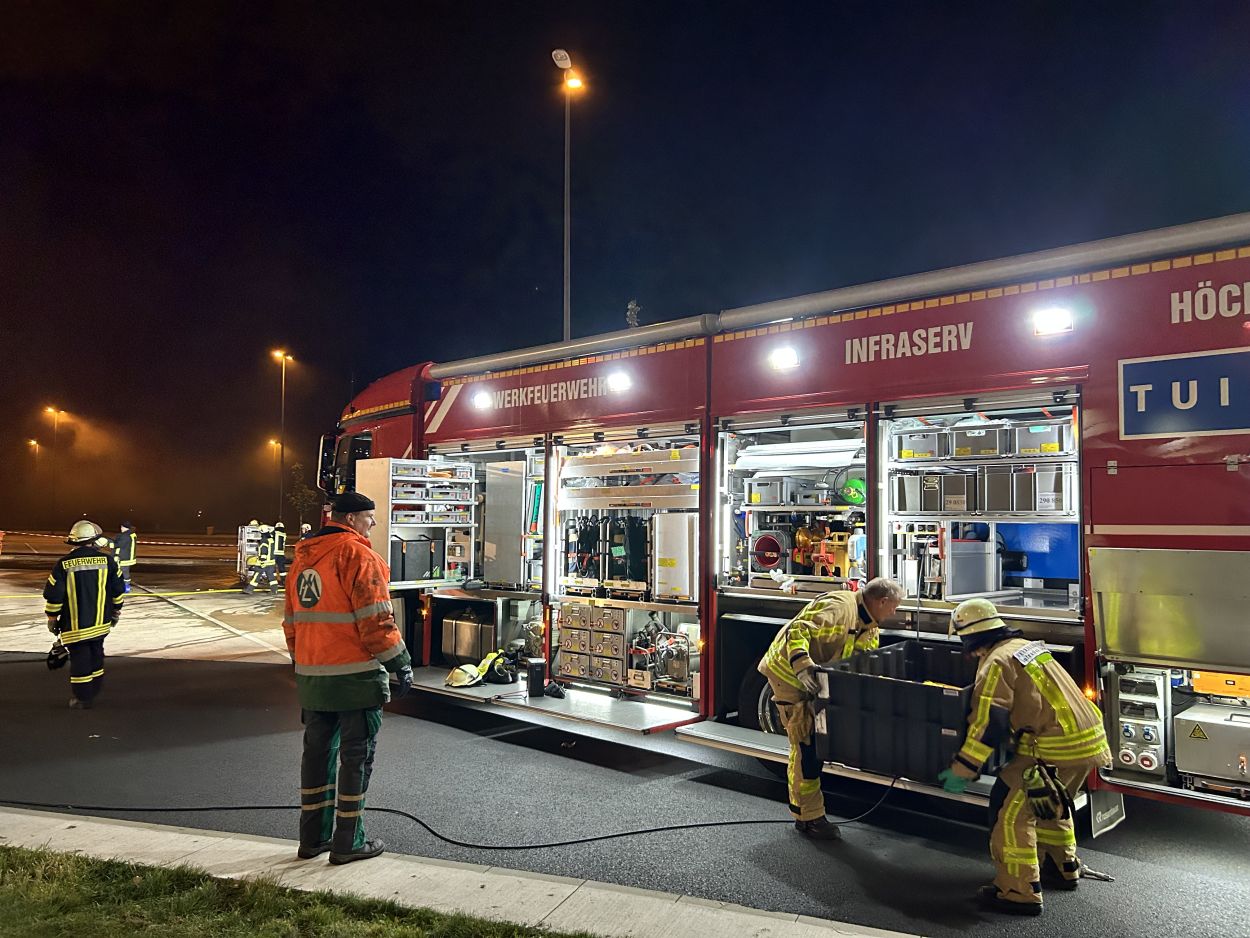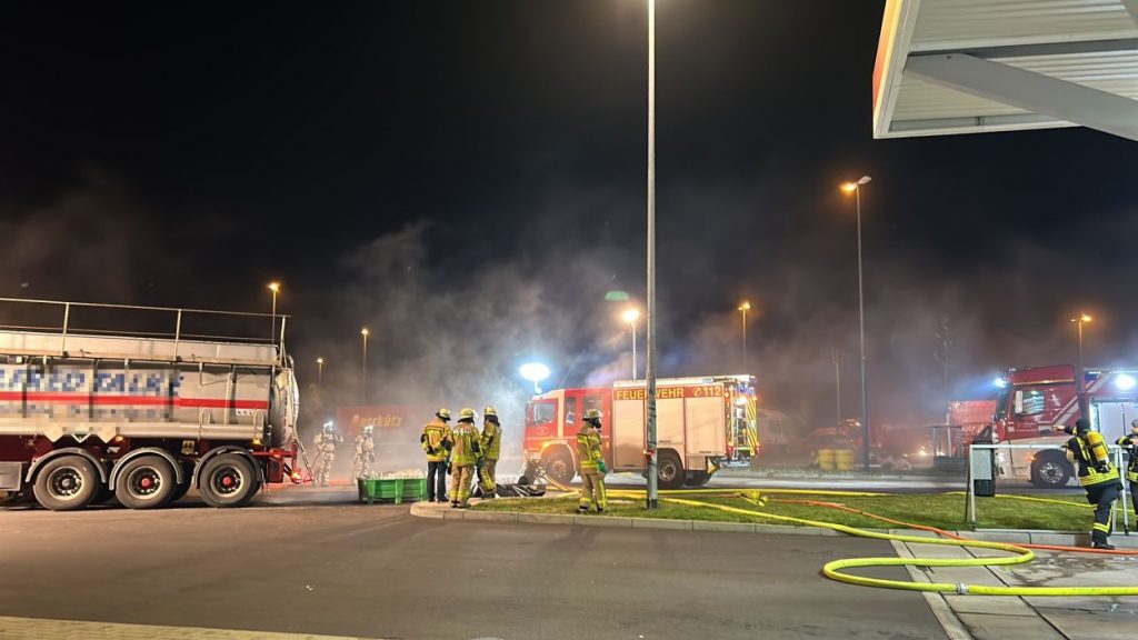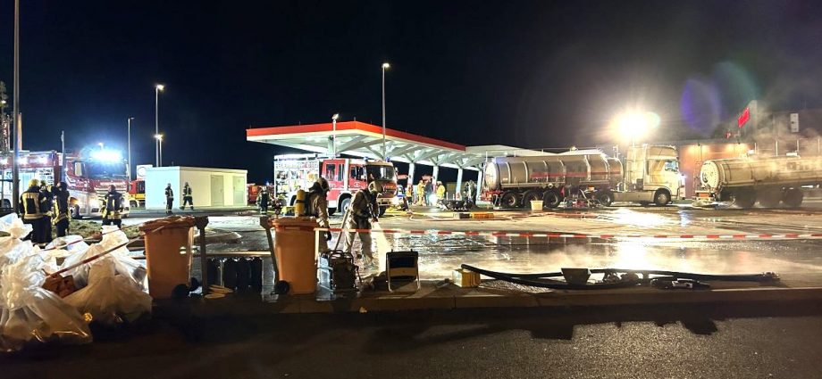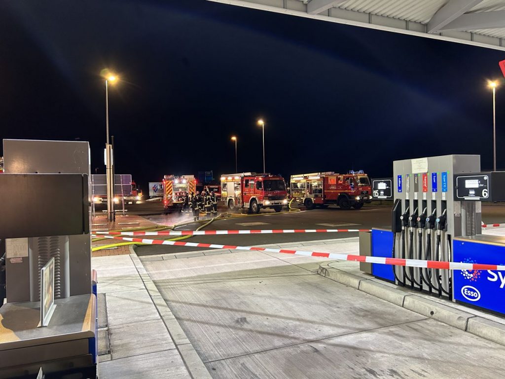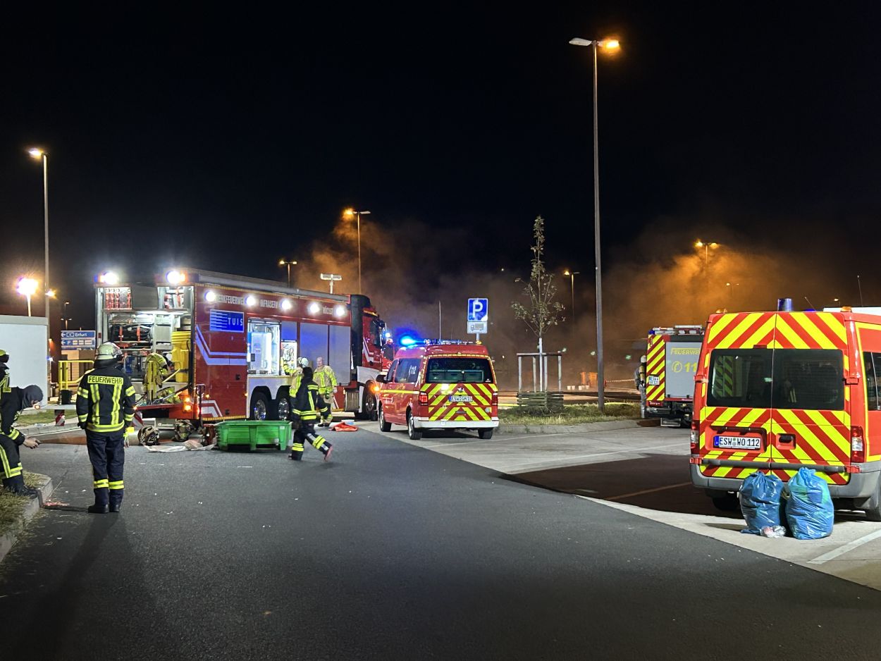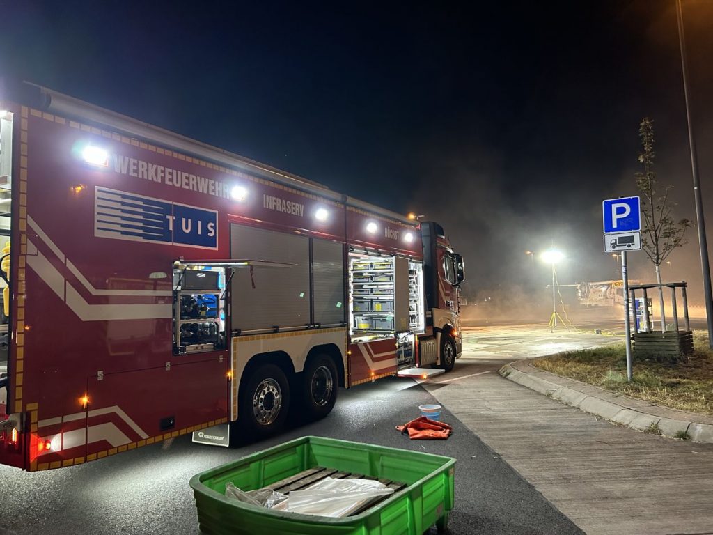 Herleshausen – Am Montag gegen 14:10 Uhr, wurde Feuerwehr und Polizei über einen Gefahrgutaustritt aus einem Lkw-Auflieger an der Tank- und Rastanlage Werratal-Süd an der A 4 in Richtung Osten informiert. Nach derzeitigem Ermittlungsstand befand sich ein Tanklastzug mit 25 Tonnen Salzsäure auf der Rastanlage, als ein Austritt der Ladung aus dem Auflieger durch den Fahrer festgestellt wurde. Dieser verständigte umgehend die Feuerwehr, welche mit einem Großaufgebot vor Ort kam. Die Feuerwehr konnte das Leck nicht abdichten und musste die Flüssigkeit auffangen und wieder zurück in den havarierten Tank pumpen, bis ein Ersatztankauflieger vor Ort war. Für das Umpumpen wurde die Werkfeuerwehr Infraserv aus Frankfurt Höchst angefordert. Rund 100 Einsatzkräfte aus Hessen und Thüringen waren bis in die Nacht im Einsatz. Glücklicherweise wurde durch den Vorfall niemand verletzt. Die Tank- und Rastanlage musste komplett gesperrt. Die Ursache für den Gefahrgutaustritt sowie die etwaige Schadenshöhe ist derzeit noch nicht bekannt. Eine Gefahr für die Bevölkerung bestand nicht.