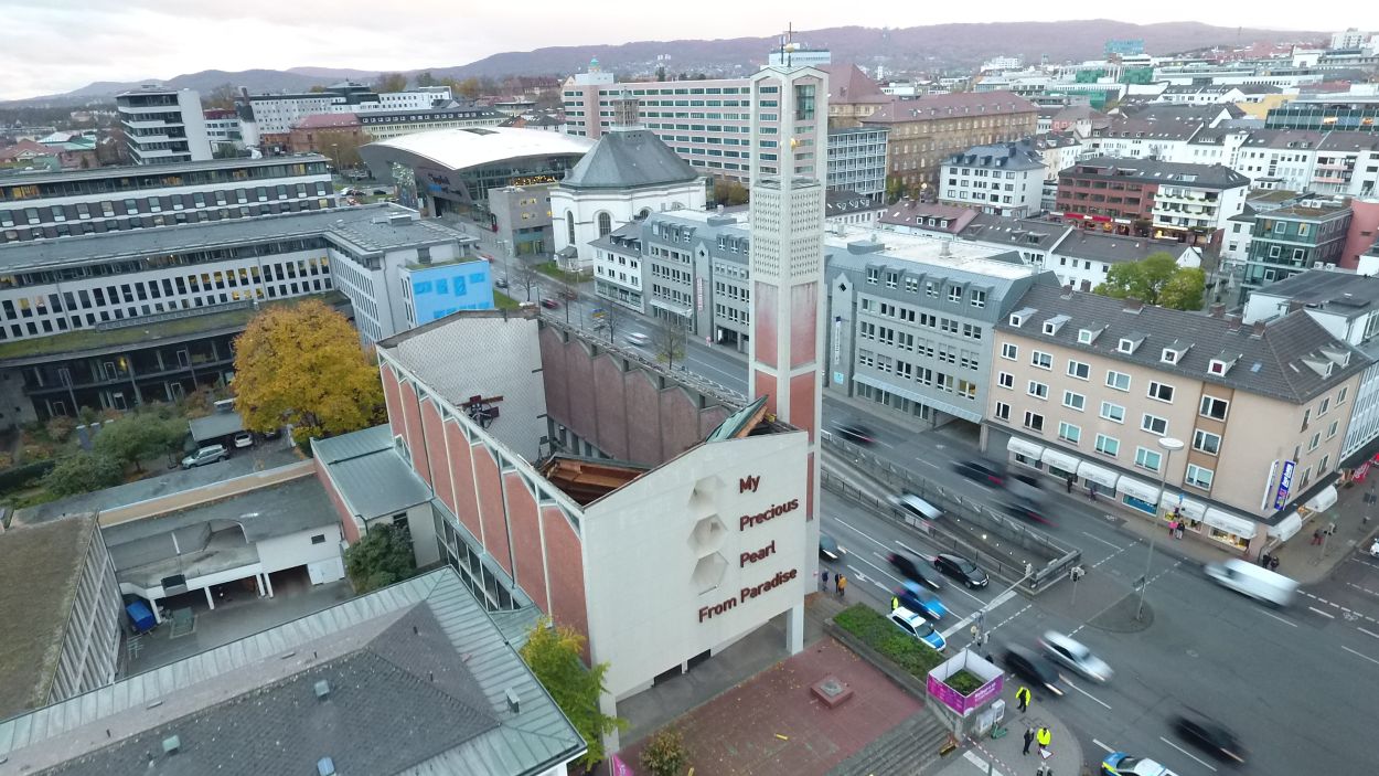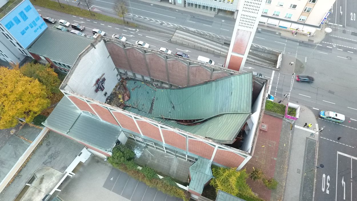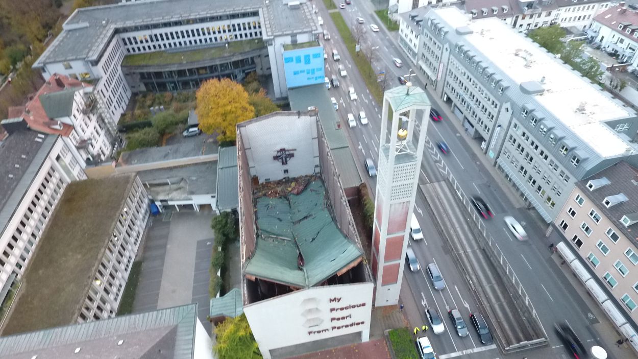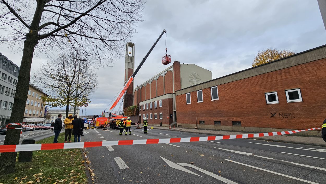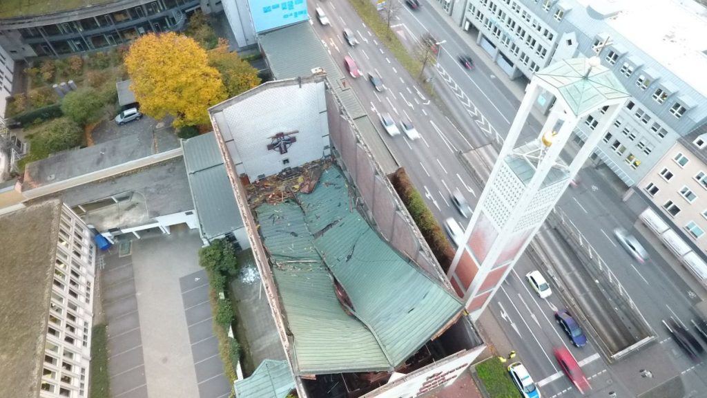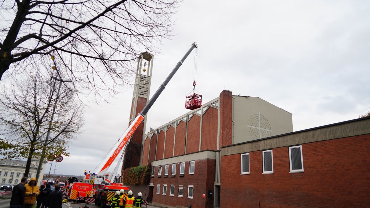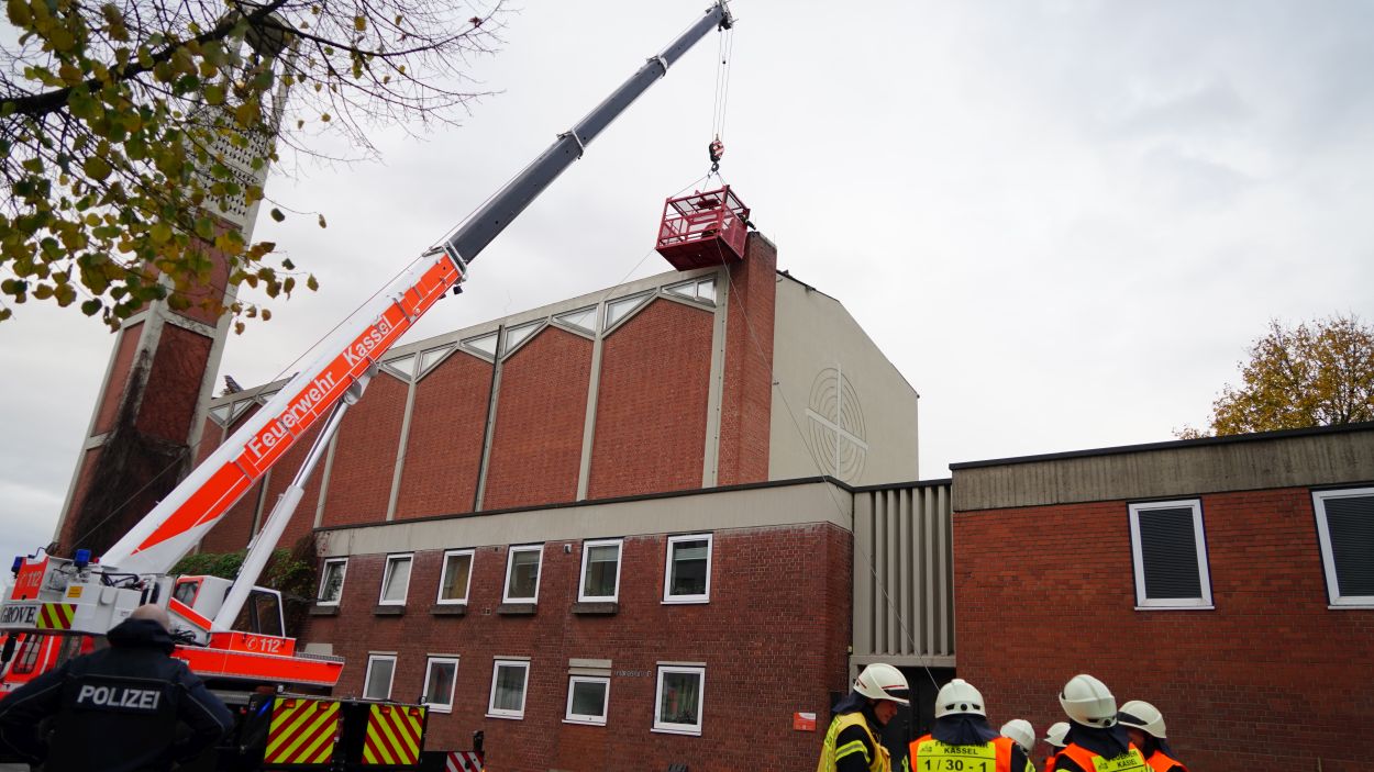 Kassel – Am Montag kam es gegen 13 Uhr zu einem Großeinsatz am Friedrichsplatz. Das gesamte Dach der Elisabethkirche stürzte ein. Wie durch ein Wunder wurde nur eine Person im Gebäude leicht verletzt. Weitere Personen waren zu der Zeit nicht in der Kirche. Wegen des Einsatzes von Feuerwehr und Polizei musste die Frankfurter Straße zwischen der Fünffensterstraße in Richtung Altmarkt voll gesperrt werden. Mit einem Kran und einer Drehleiter wurden lose Dachteile entfernt. Die Ursache für den Einsturz ist bislang unklar. Auch die Höhe des Schadens kann derzeit noch nicht beziffert werden. Zum Gottesdienstag am Sonntag war die Kirche noch voller Menschen.