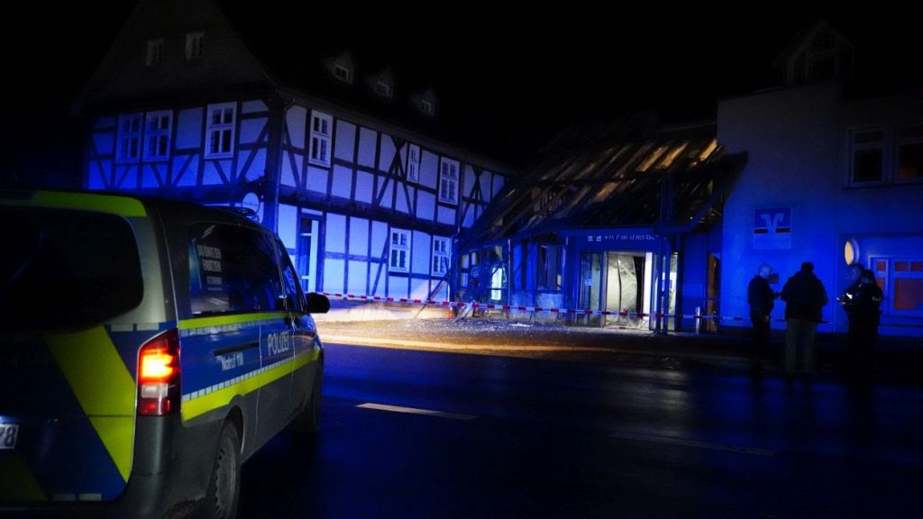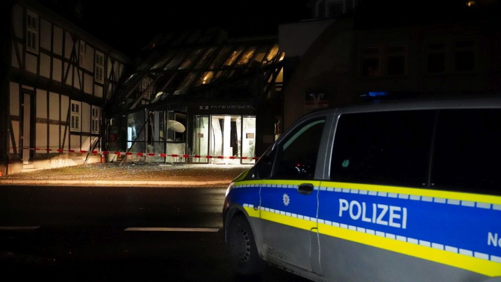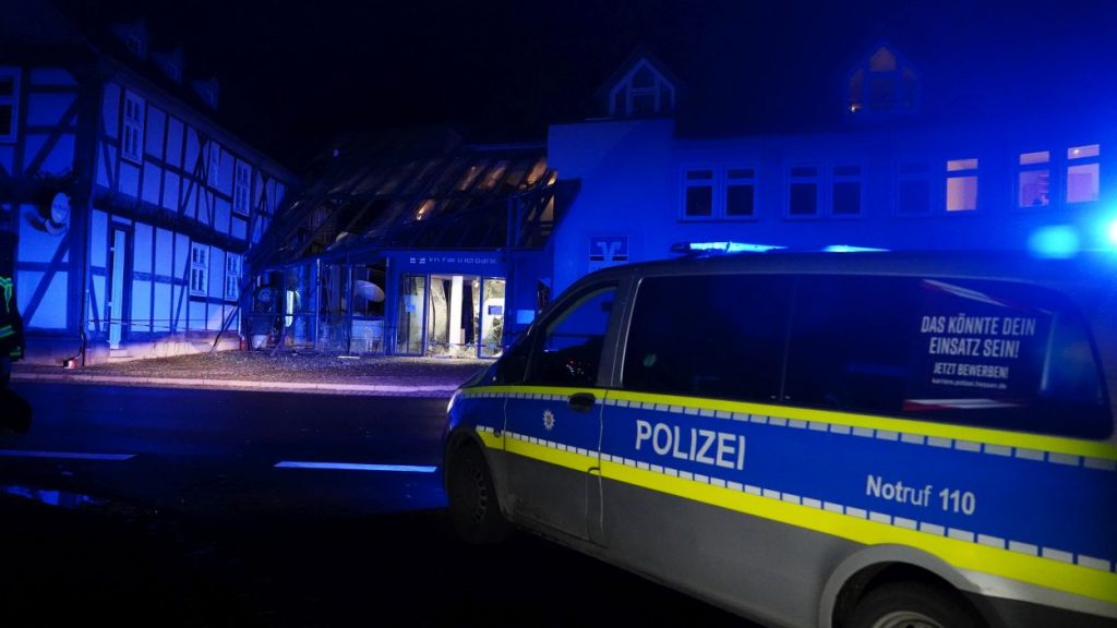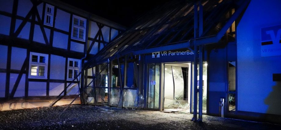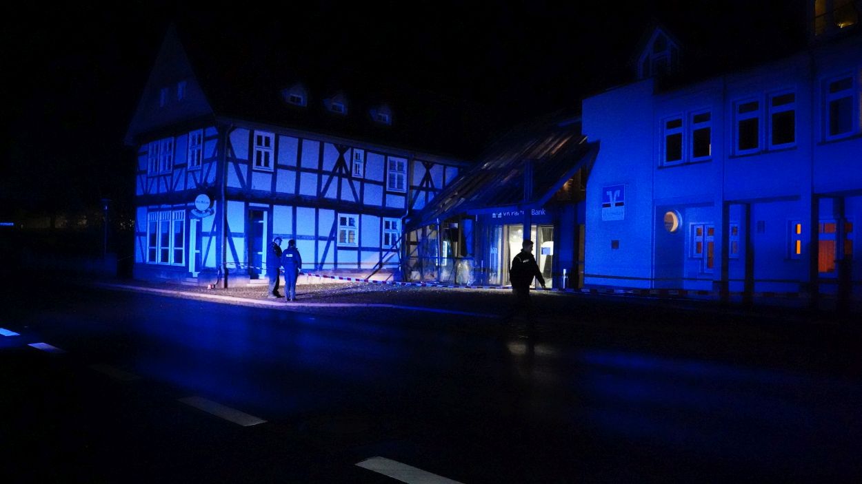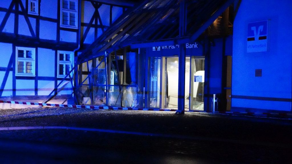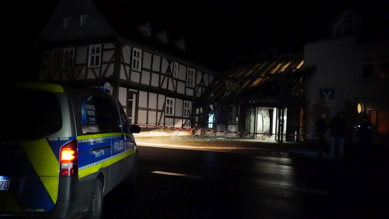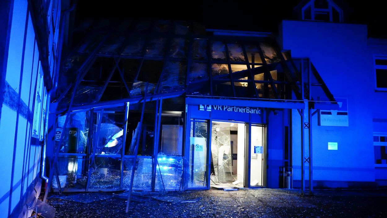 Felsberg – In Gensungen haben Unbekannte in der Nacht auf Dienstag einen Geldautomaten in einem Bankgebäude gesprengt. Cornelia Schmidt feierte zu der Zeit einen Geburtstag in einer Gaststätte, nur wenige Meter von der Bank entfernt und hörte kurz vor 1 Uhr einen lauten Knall. Daraufhin verließ sie die Gaststätte, um nach der Ursache zu schauen, woraufhin ein zweiter Knall zu hören war. Unmittelbar nach den Explosionen haben zwei dunkel gekleidete Täter das Objekt betreten und kurz darauf mit Taschen wieder verlassen. Sie wurden durch einen dunklen Audi mit dem Kennzeichen HX-LP 9495 aufgenommen und flüchteten vermutlich in der Bundesstraße 253 (Wabern). Mit hohem Tempo konnten die Täter unerkannt fliehen und fuhren in der Kirchstraße gefährlich an Frau Schmidt vorbei. Die Fassade vom Bankgebäude, was nahezu aus Glas bestand, wurde komplett zerstört. Aufgrund von herabstürzenden Glasscheiben kann derzeit das Gebäude nicht betreten werden. Auch die alarmierte Feuerwehr konnte nicht tätig werden. Ob die Täter was erbeuten konnten, ist derzeit unklar.