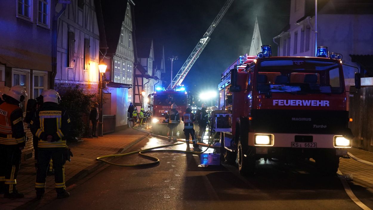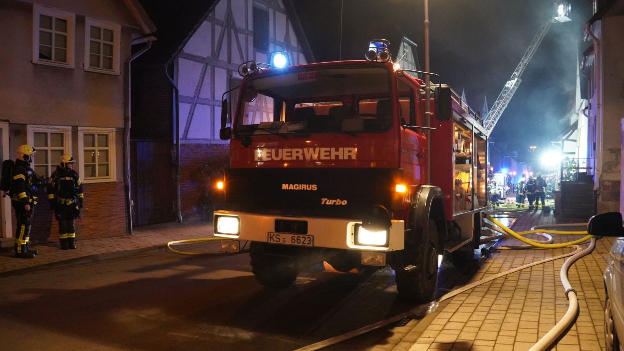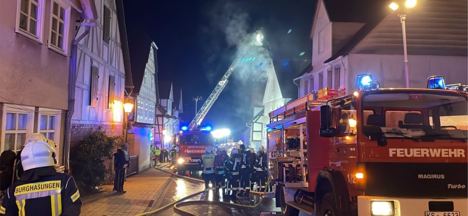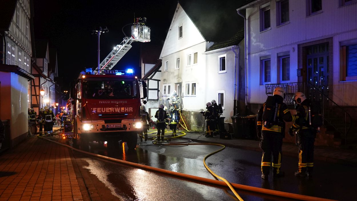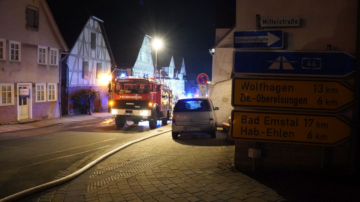 Zierenberg – Am Montag wurde gegen 21:30 Uhr der Brand eines Einfamilienhauses in der Kasseler Straße in Zierenberg gemeldet. Beim Eintreffen der Feuerwehr kamen bereits die Flammen aus Haustür und Fenstern. Ein Übergreifen der Flammen auf weitere Gebäude konnte verhindert werden. Die fünf Bewohner konnten das Haus selbständig verlassen und blieben unverletzt. Trotz schnellen Eingreifen der Feuerwehr, konnte das Wohnhaus nicht mehr gerettet werden. Neben der Feuerwehr Zierenberg mit allen Ortsteilen war auch die Feuerwehr aus Wolfhagen, Calden und die Berufsfeuerwehr Kassel im Einsatz. Die Brandursache ist derzeit noch unklar, die Ermittlungen dazu dauern an.