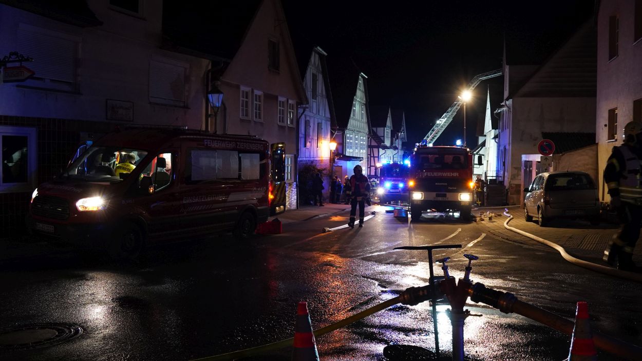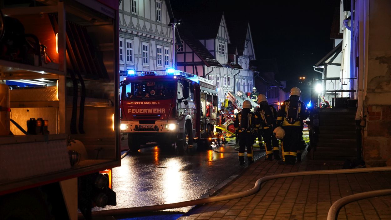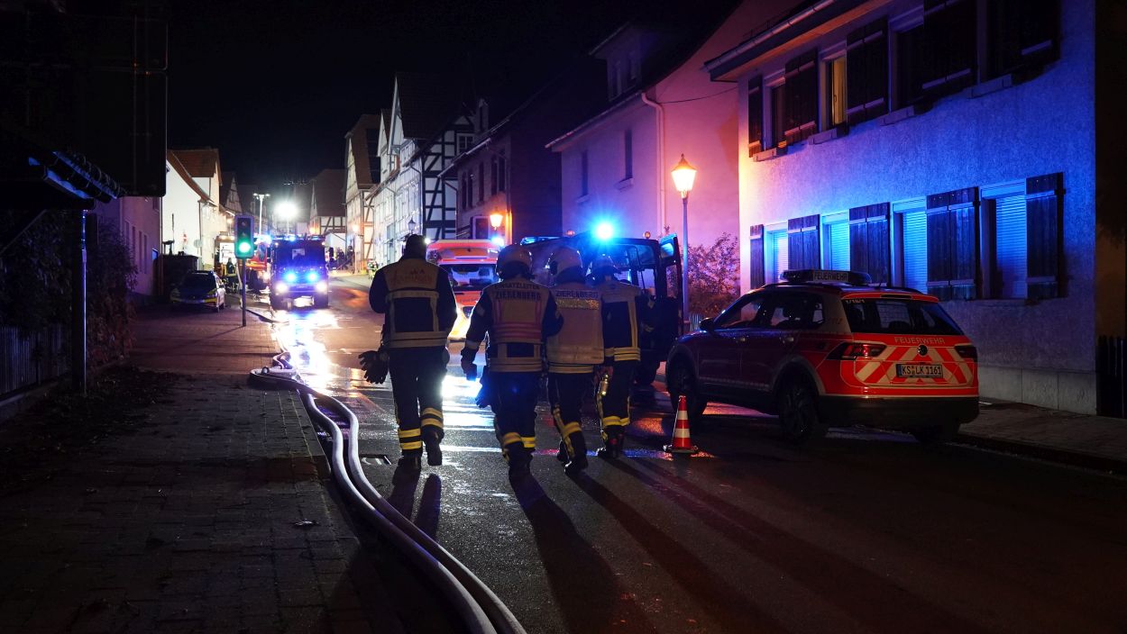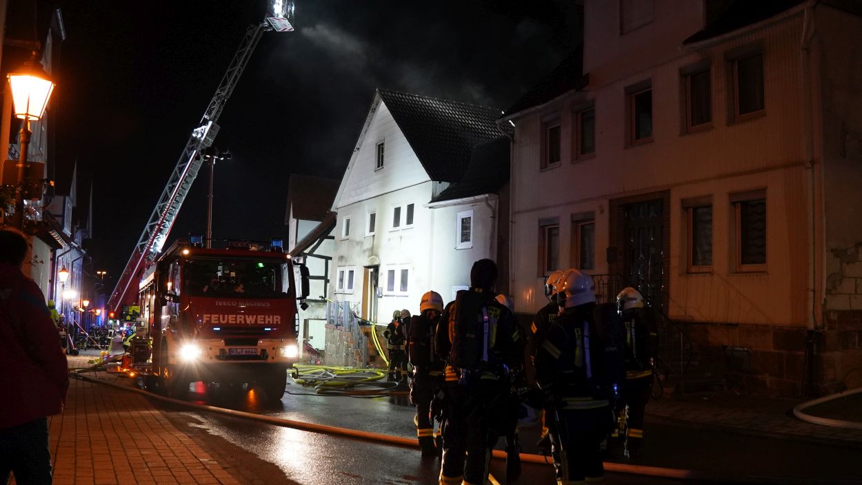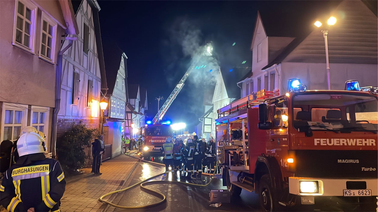 Zierenberg – Am Montag wurde gegen 21:30 Uhr der Brand eines Einfamilienhauses in der Kasseler Straße in Zierenberg gemeldet. Beim Eintreffen der Feuerwehr kamen bereits die Flammen aus Haustür und Fenstern. Ein Übergreifen der Flammen auf weitere Gebäude konnte verhindert werden. Die fünf Bewohner konnten das Haus selbständig verlassen und blieben unverletzt. Trotz schnellen Eingreifen der Feuerwehr, konnte das Wohnhaus nicht mehr gerettet werden. Neben der Feuerwehr Zierenberg mit allen Ortsteilen war auch die Feuerwehr aus Wolfhagen, Calden und die Berufsfeuerwehr Kassel im Einsatz. Die Brandursache ist derzeit noch unklar, die Ermittlungen dazu dauern an.