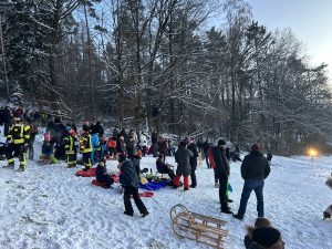 Wollrode – die Freiwillige Feuerwehr Wollrode veranstaltete am heutigen Samstag das „Flutlichtrodeln“. Angefangen haben die Freiwilligen Helfer schon am Mittag alles aufzubauen damit es dann ab 15:30 Uhr losgehen konnte, dann durften alle zum Rodeln kommen, von groß bis klein, für alle war es ein riesengroßer Spaß. Zahlreiche Kinder und Erwachsene sind erschienen, um gemeinsam zu rodeln. Für Getränke und Speisen hat die Freiwillige Feuerwehr Wollrode natürlich auch gesorgt. Als die Sonne dann langsam unterging, wurden die Flutlichter angeschaltet, damit auch in der Dunkelheit weiter gerodelt werden konnte.
