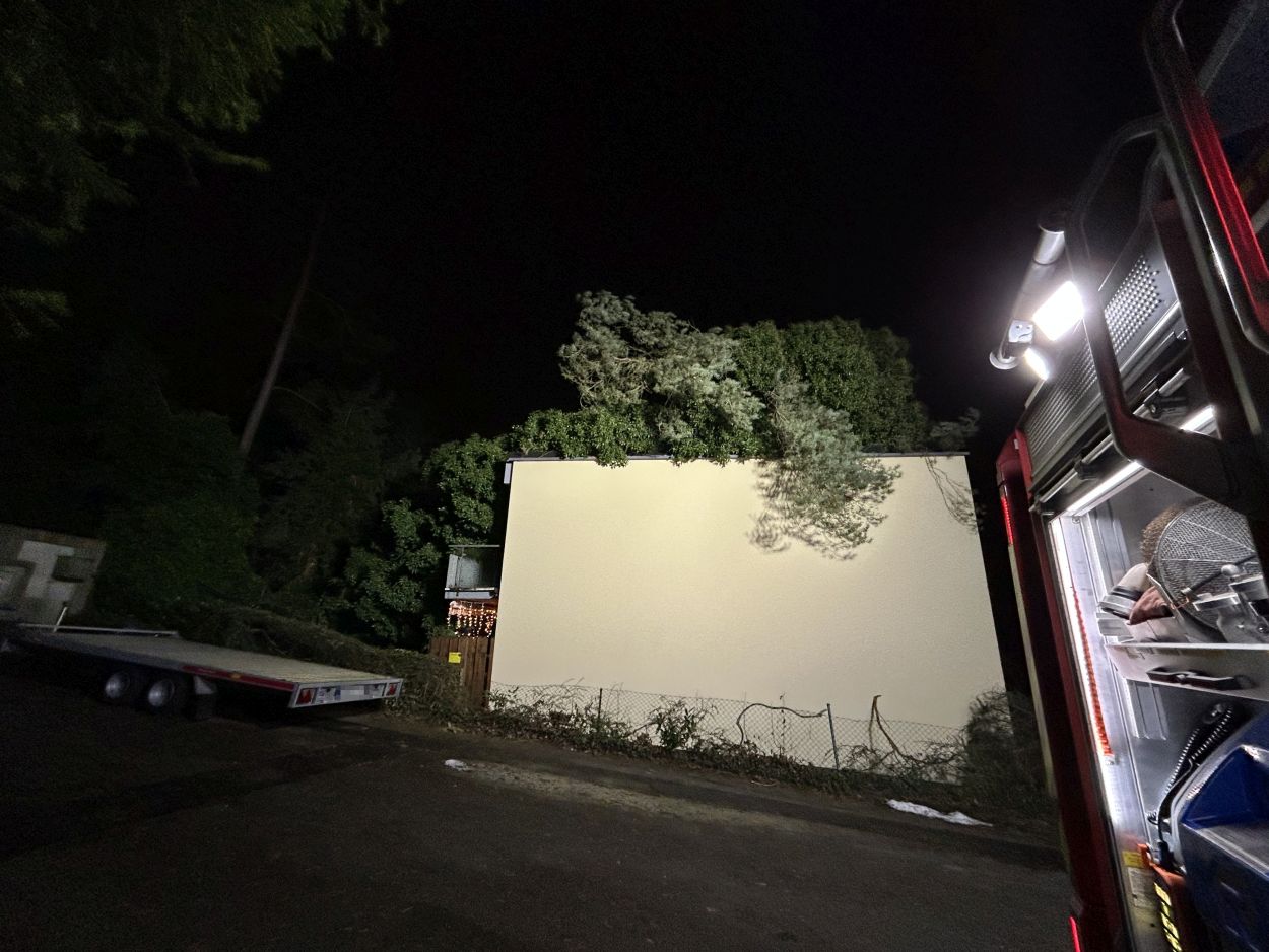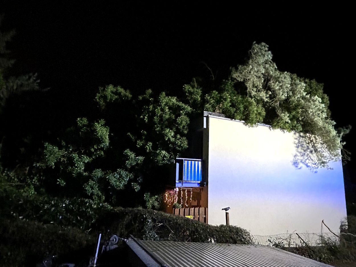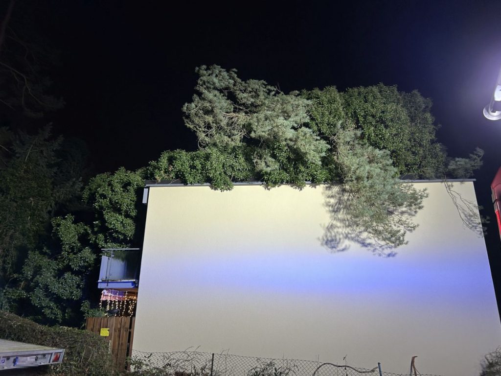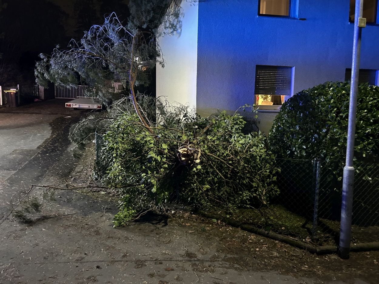 Niestetal – Am Mittwochabend kurz nach 18:00 Uhr wurde die Feuerwehr Niestetal in die Straße „Am Liethberg“ alarmiert, dort soll aufgrund des Sturmtiefs Jitka ein 25 Meter hoher Baum auf ein Wohnhaus gestürzt sein. Als die ersten Einsatzkräfte am Einsatzort eintrafen, bestätigte sich die Meldung. Der Baum lag über die komplette Gebäudebreite auf dem Dach. Auf der gegenüberliegenden Seite des Hauses brach die Baumspitze und kam im Straßenbereich zum Liegen. Die Berufsfeuerwehr Kassel wurde nachgefordert, um die Gefahrenabwehr zu besprechen und ob die Feuerwehr mit einem Kranwagen tätig werden muss, um das Haus von der Last des Baumes zu entlasten. Nach ausgiebiger Erkundung der Feuerwehr wurde beschlossen, dass es eine sehr statische Lage ist und der Baum auch bei weiterem Wind nicht weiter rutschen kann. In Absprache mit der Berufsfeuerwehr Kassel wurde entschieden, den Einsatz abzubrechen. Die Eigentümer des Hauses wurden informiert, dass sie eine private Firma beauftragen müssen, um den Baum zu beseitigen. Die Feuerwehr konnte die Einsatzstelle ohne weitere Tätigkeit verlassen. Der Einsatz war nach rund 90 Minuten beendet. Im Anschluss wurde die Einsatzstelle an die jeweiligen Eigentümer übergeben. Im Einsatz war die Freiwillige Feuerwehr Niestetal mit 15 Einsatzkräften, die Berufsfeuerwehr aus Kassel und die Polizei.