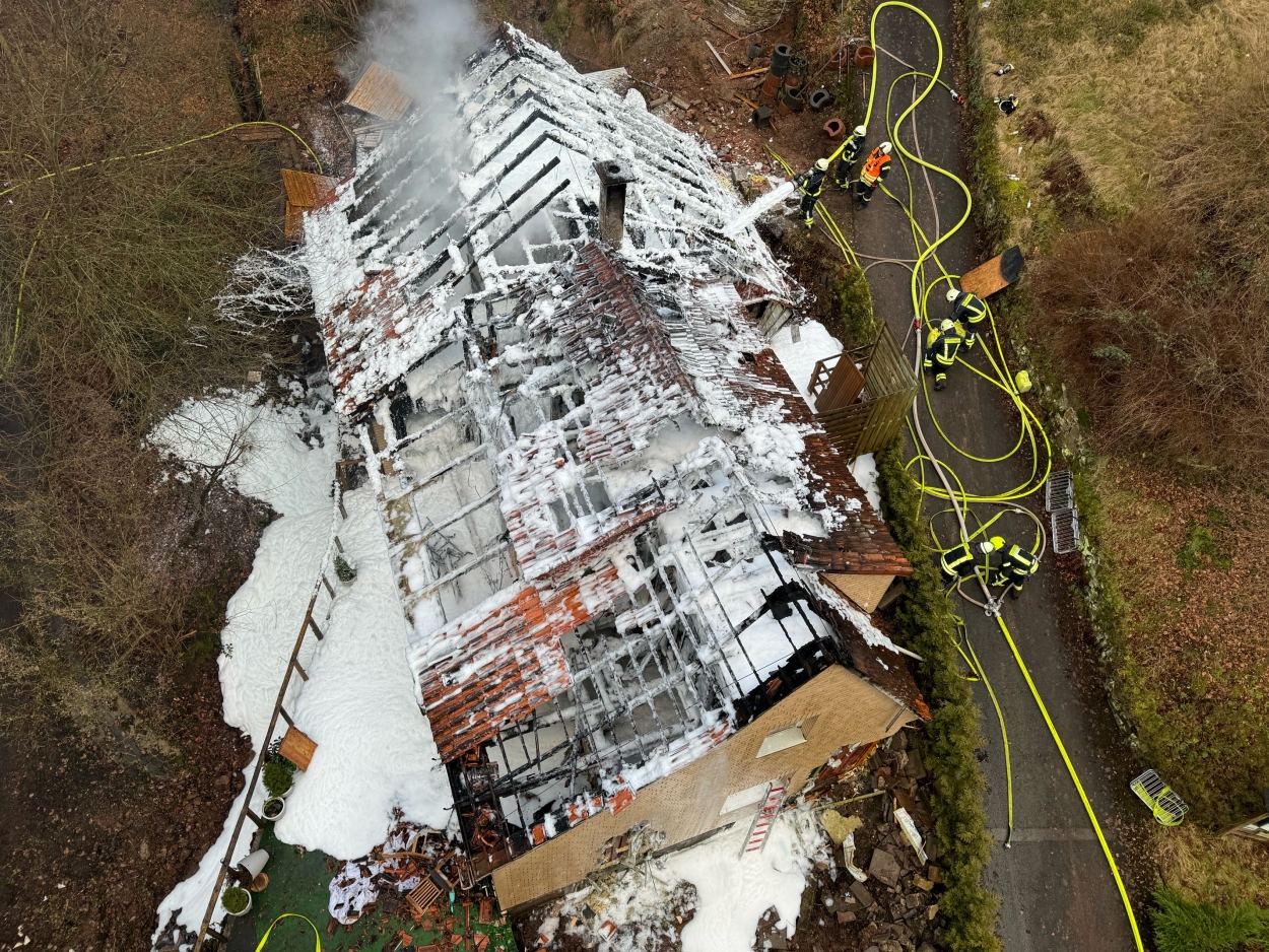 Reinhardshagen – Zu einem Wohnhausbrand kam es am Donnerstagmorgen im Ortsteil Vaake. Als die alarmierten Feuerwehr um kurz nach 6 Uhr im Ahletal eintraf, stand das Haus im Vollbrand. Der Hausbewohner war zu diesem Zeitpunkt noch im Gebäude und hielt sich an einem Fenster im Erdgeschoss auf. Er wurde umgehend aus dem Haus geholt. Zu diesem Zeitpunkt war aufgrund der Brandausbreitung nur noch ein Löschangriff von Außen möglich. Zur Unterstützung wurde die Feuerwehren aus Gottsreu, Holzhausen sowie die Feuerwehr Hann. Münden mit der Drehleiter. Die Wasserversorgung wurde unter anderem durch einen naheliegenden Bach aufrecht gehalten. Nach rund zwei Stunden war das Feuer unter Kontrolle. Um die Glutnester zu ersticken, kam Schaum zum Einsatz. Eine Brandwache wurde eingerichtet. Rund 60 Einsatzkräfte waren mehrere Stunden im Einsatz. Die Brandursache ist noch unklar, die Polizei hat ihre Ermittlungen vor Ort aufgenommen.