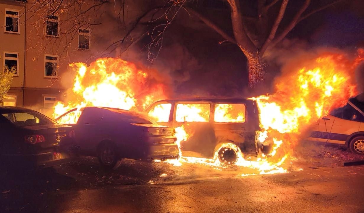Lohfelden – In der Nacht auf Freitag wurde die Feuerwehr Lohfelden zu einem Parkplatz im Friedrich-Ebert-Ring alarmiert. Als die ersten Einsatzkräfte gegen 3 Uhr eintrafen, stand ein VW-Bus im Vollbrand. Die Flammen griffen auf drei weitere Fahrzeuge, eine Hecke sowie ein Baum über. Nach den ersten Ermittlungen der in der Nacht am Brandort eingesetzten Beamten des Kriminaldauerdienstes deutet vieles auf eine vorsätzliche Brandstiftung hin. Eine noch in der Nacht eingeleitete Fahndung nach den mutmaßlichen Tätern verlief ohne Erfolg.