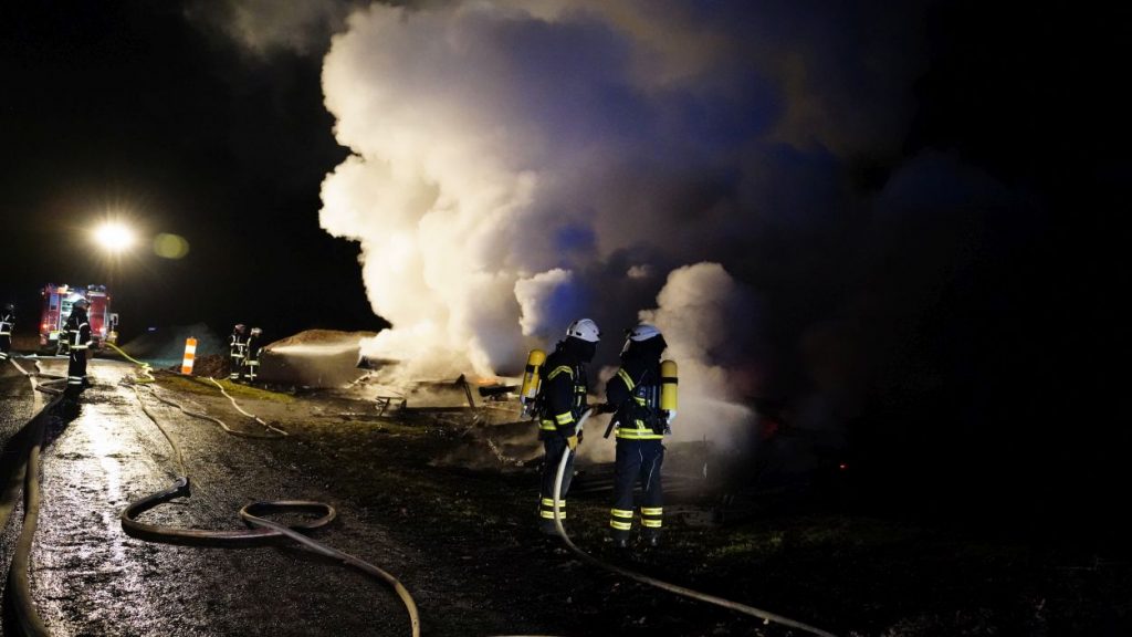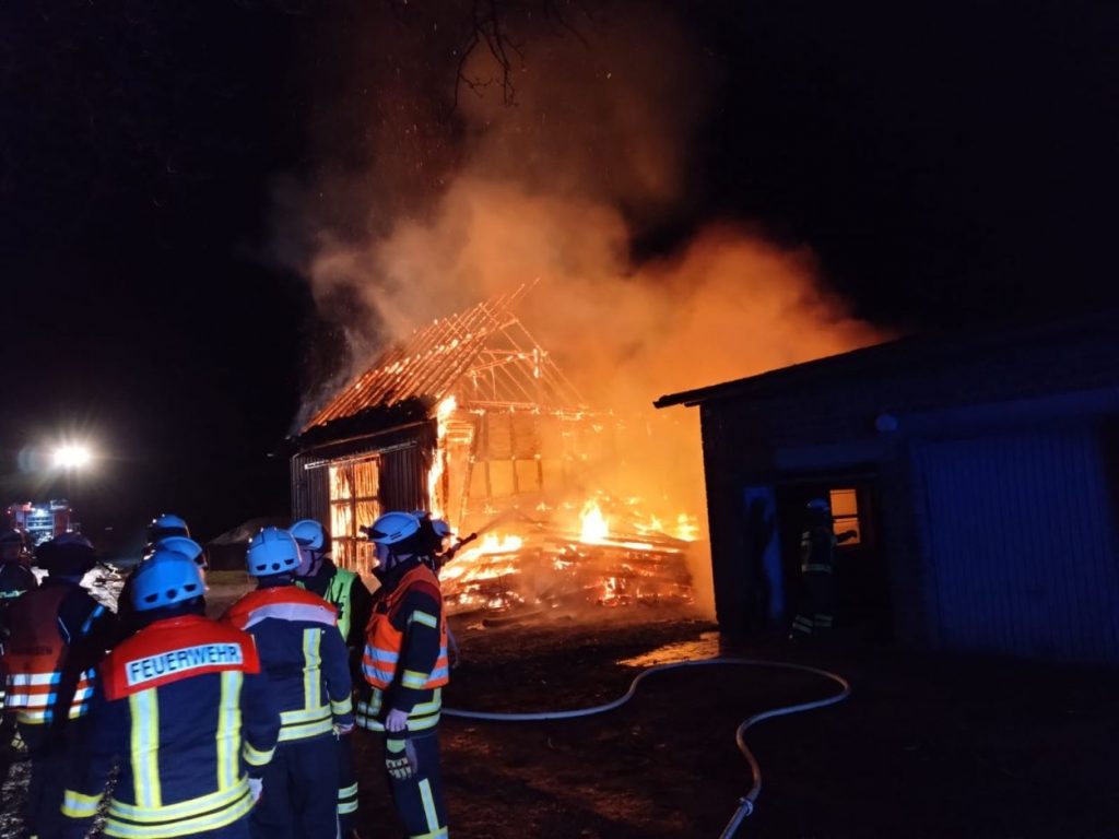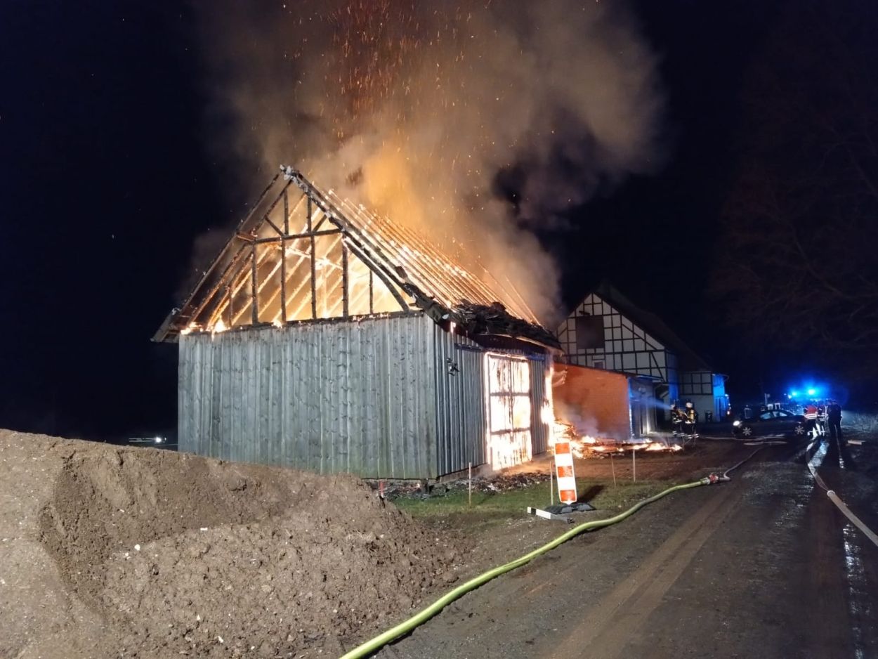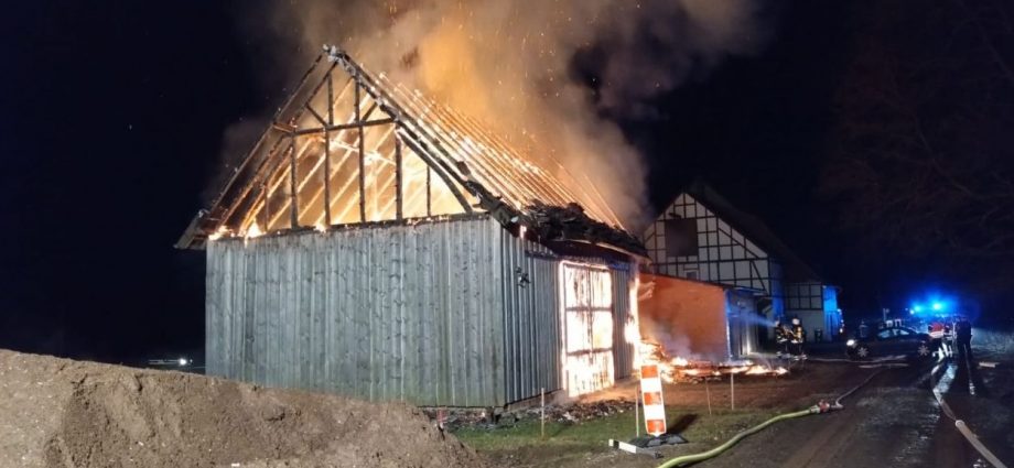 Bad Arolsen – In der Nacht auf Sonntag um kurz nach 4 Uhr wurde die Feuerwehr zu einem Scheunenbrand nach Volkhardingshausen alarmiert. Beim Eintreffen der ersten Einsatzkräfte stand eine kleine Scheune im Vollbrand. Ein Löschwasser-Pendelverkehr wurde eingerichtet. Zur Unterstützung wurde auch die Feuerwehr Wolfhagen mit einem TLF (5.000 Liter Wasser) und dem AB-Wasser (8.000 Liter Wasser) nachalarmiert. Wie es zu dem Brand kommen konnte, ist unklar. Merkwürdig allerdings, noch während des Einsatzes folgte ein weiterer Einsatz. In der Nähe brannte ein Hochsitz von einem Jäger. Dieser konnte schnell gelöscht werden. Die Polizei suchte daraufhin die Umgebung nach verdächtigen Personen ab. Weiter kurios, die Einsatzstelle ist für die Feuerwehr nicht unbekannt. Bereits am 21.12.2023 war die Feuerwehr hier schonmal im Einsatz. Da stand an der Scheune ein Wohnwagen im Vollbrand. Schon hier konnte Brandstiftung nicht ausgeschlossen werden. Ob die Brände miteinander was zu tun haben, ist noch unklar. Die Polizei hat ihre Ermittlungen aufgenommen. Neben der Feuerwehr aus Bad Arolsen und Wolfhagen waren auch die Feuerwehren aus Volkhardingshausen, Landau, Bühle und Massenhausen mit der Drohne im Einsatz.
