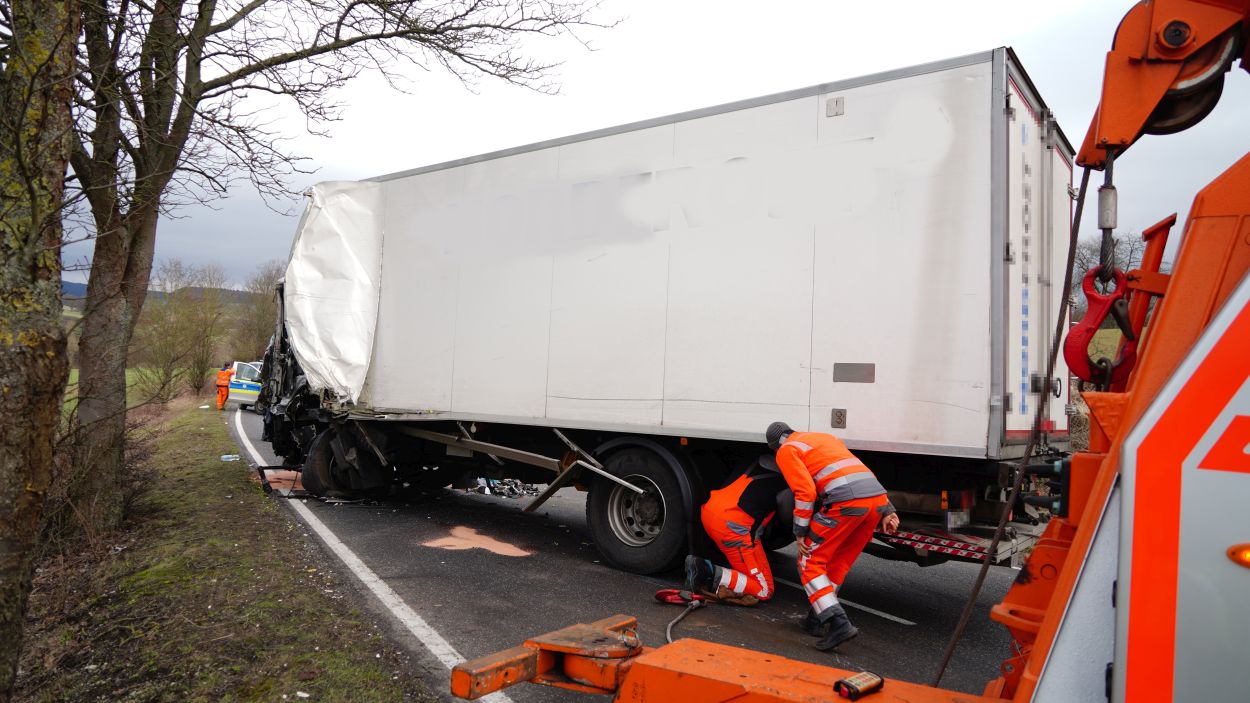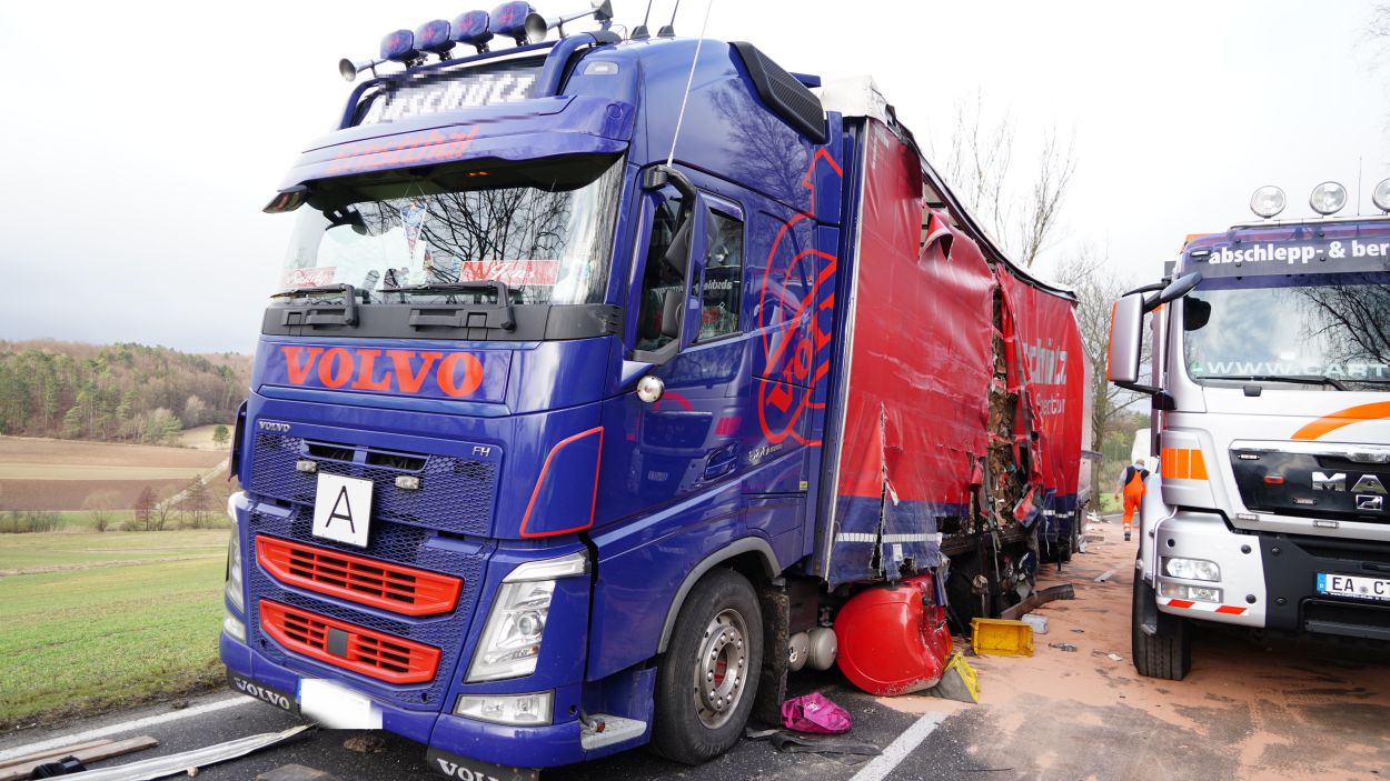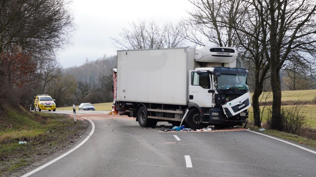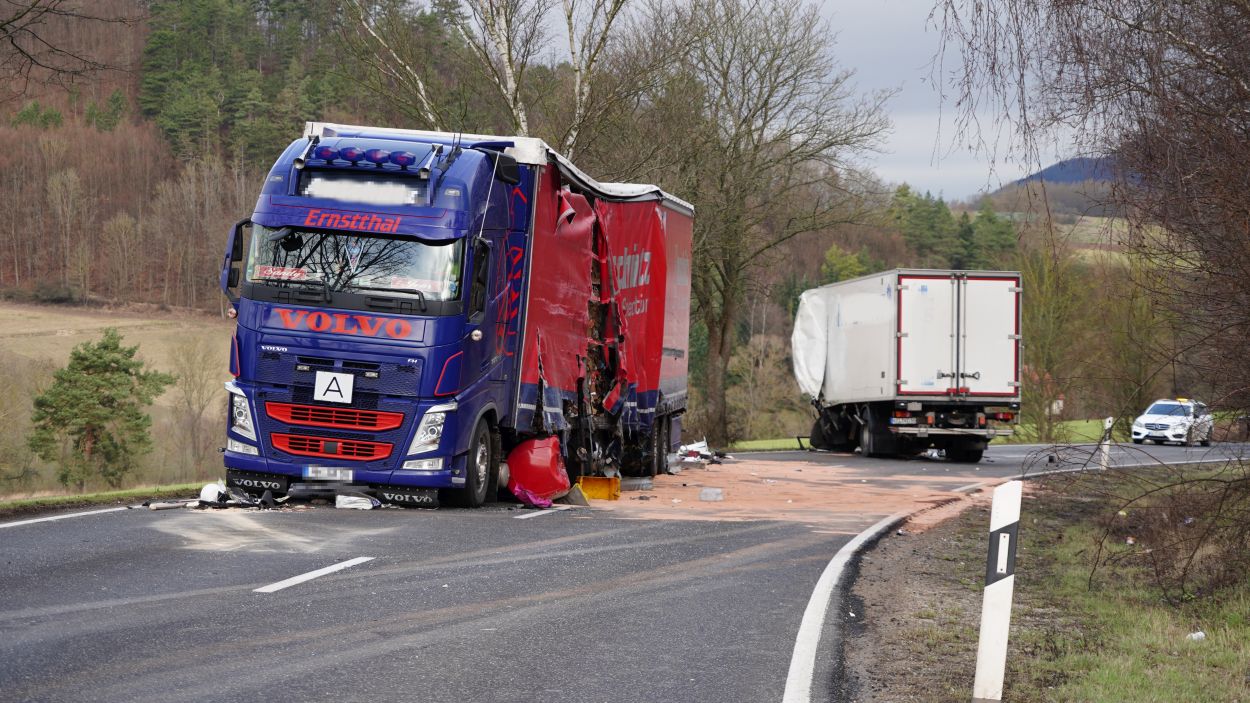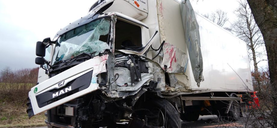 Sontra – Auf der B400 zwischen Sontra-Ulfen und Blinde Mühle kam es am Mittwochmorgen zu einem schweren LKW-Unfall. Nach bisherigen Informationen befuhr ein 47-jähriger LKW-Fahrer gegen 7 Uhr die Bundesstraße von Herleshausen nach Eschwege. Aus bislang noch unbekannten Gründen fuhr er kurz vor Ulfen nach links in den Gegenverkehr und streifte zwei entgegen kommende LKW sowie ein PKW. Der 47-jährige LKW-Fahrer wurde schwer verletzt und musste in ein Krankenhaus eingeliefert werden. Die anderen Unfallbeteiligten blieben wie durch ein Wunder nahezu unverletzt. Die Bergungsarbeiten werden voraussichtlich noch bis in den späten Nachmittag andauern.
