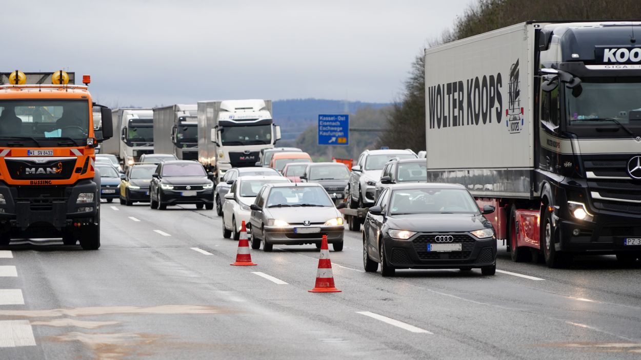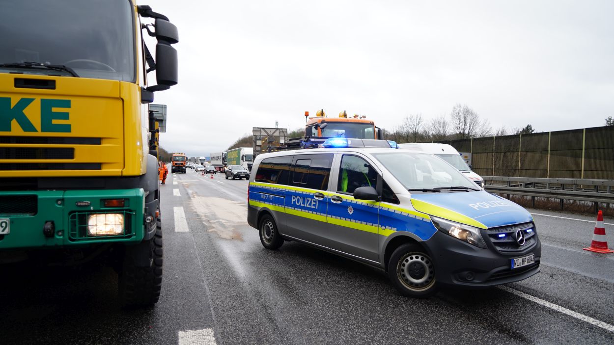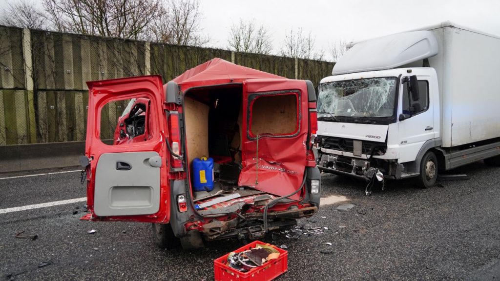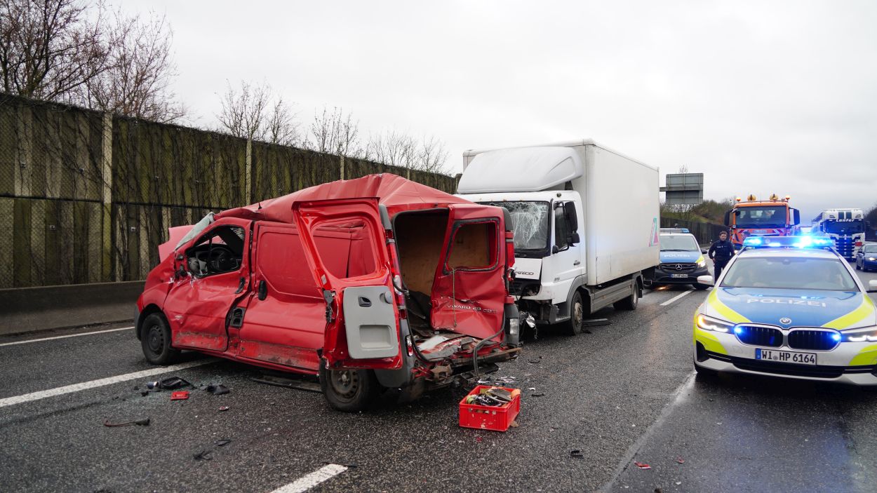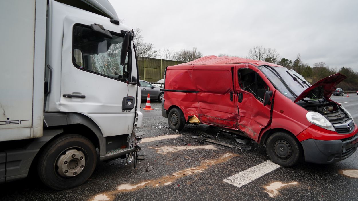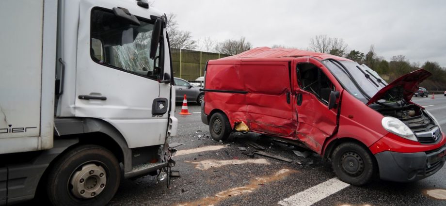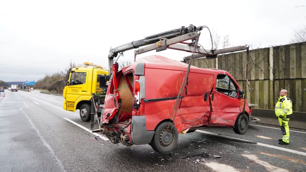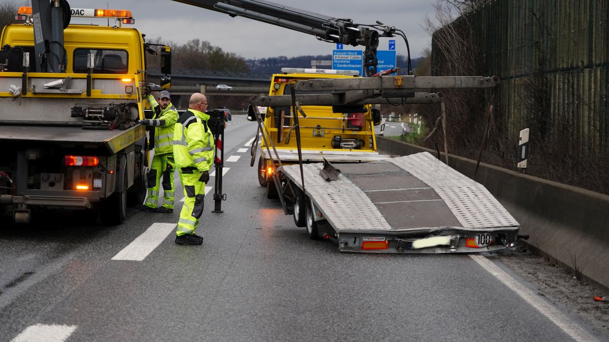Kassel – Auf der A7 zwischen Kassel-Ost und Kassel-Nord kam es am Donnerstagmorgen zu einem schweren Verkehrsunfall. Wegen eines Rückstaus hatte gegen 08.45 Uhr ein 49-jähriger seinen Sattelzug auf dem rechten Fahrstreifen anhalten müssen. Ein nachfolgender 23-Jähriger erkannte dies rechtzeitig und stoppte seinen Transporter mit Anhänger. Dies erkannte jedoch der von hinten kommende 35-jährige Lkw-Fahrer zu spät und war offenbar ungebremst auf den stehenden Anhänger aufgefahren. Durch die Wucht des Aufpralls wurde der PKW-Anhänger abgerissen und auf die beiden linken Fahrstreifen geschleudert, während der Transporter sich drehte und zwischen den beiden Lkw zum Stehen kam. Ein vierter Beteiligter, ein weiterer 35-jähriger Lkw-Fahrer, der auf dem Verzögerungsstreifen der Anschlussstelle unterwegs war, kollidierte anschließend noch mit der Front des stehenden Kastenwagens, blieb aber wie der 49-jährige Fahrer unverletzt. Der Fahrer des Transporters sowie der auffahrende LKW-Fahrer wurde verletzt und in ein Krankenhaus transportiert. Lebensgefahr besteht für die beiden Männer nicht. Nach den Rettungsarbeiten konnte der Verkehr an der Unfallstelle vorbeigeleitet werden. Im Einsatz war auch die Berufsfeuerwehr mit Kran und der Rettungshubschrauber Christoph 7. Gegen 11.30 Uhr war die Unfallstelle geräumt.