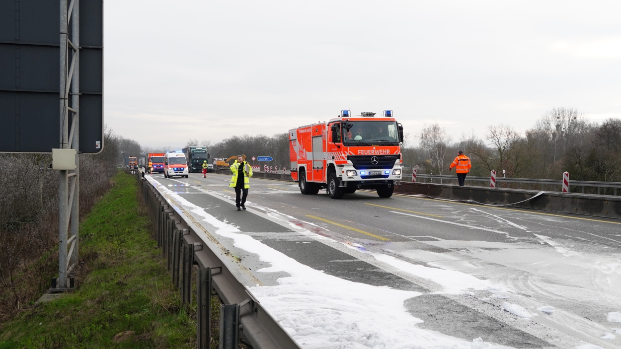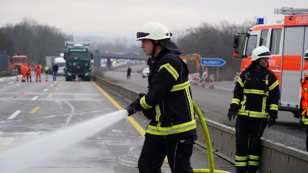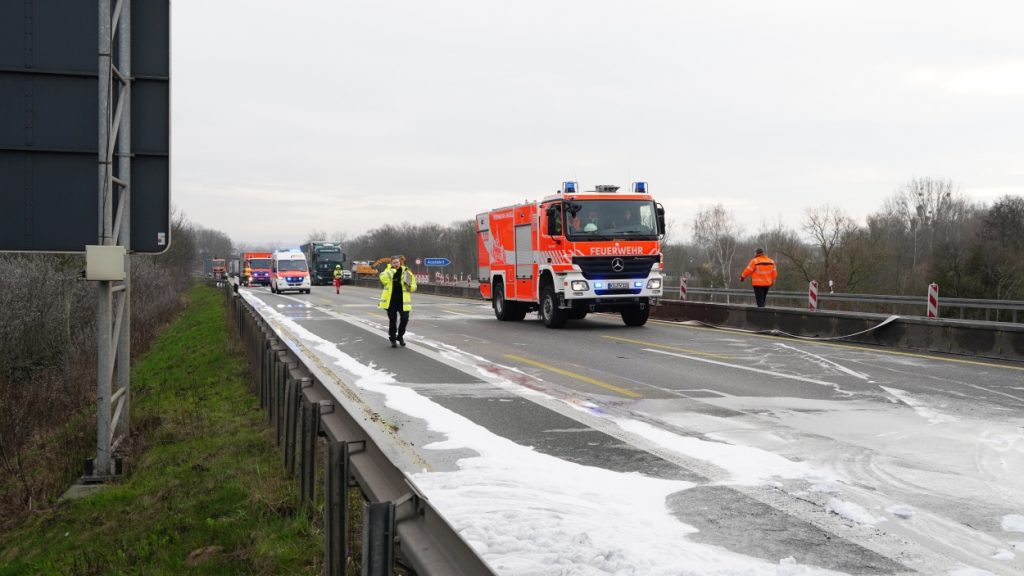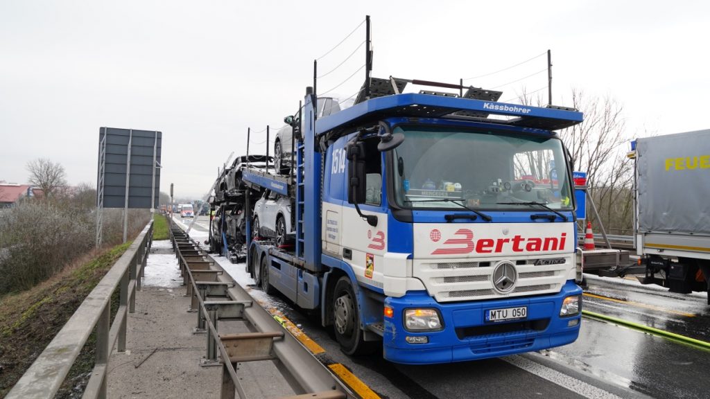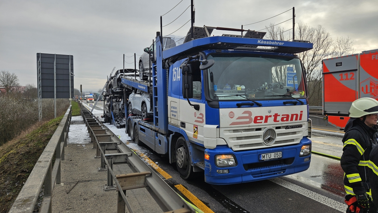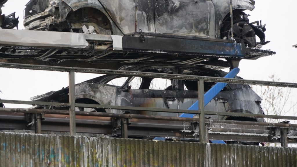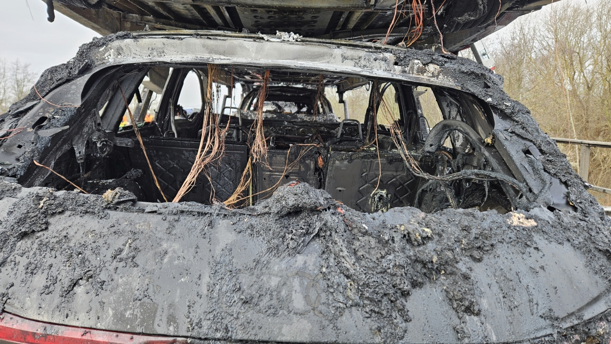 Kassel – Auf der A49 bei Kassel kam es am Freitagmorgen zu einem LKW-Brand. Ein Autotransporter beladen mit sechs Elektrofahrzeugen war gegen 08.30 Uhr auf der A49 von Lohfelden kommend in Fahrtrichtung Schwalmstadt unterwegs. In Höhe der Kasseler Messehallen bemerkte der Fahrer im Rückspiegel Flammen am Reifen des Auflieger und steuerte sein LKW direkt auf den Standstreifen. Der Fahrer versuchte noch, das Feuer zu löschen, was ihm allerdings nicht mehr gelangte. Innerhalb weniger Minuten standen vier Elektrofahrzeuge im Vollbrand. Zwei weitere wurden stark beschädigt. Die alarmierte Berufsfeuerwehr Kassel konnte das Feuer schnell unter Kontrolle bringen. Mithilfe eines Teleskoplader von der Feuerwehr wurden die Elektrofahrzeuge vom Autotransporter kontrolliert entladen und nach weiteren Glutnestern abgesucht. Die Autobahn musste für die Lösch- und Bergungsarbeiten mehrere Stunden voll gesperrt werden was zu einem Verkehrschaos in Kassel führte. Der Sachschaden wird von der Polizei auf 300.000 Euro geschätzt. Verletzt wurde niemand.