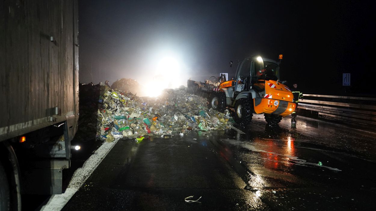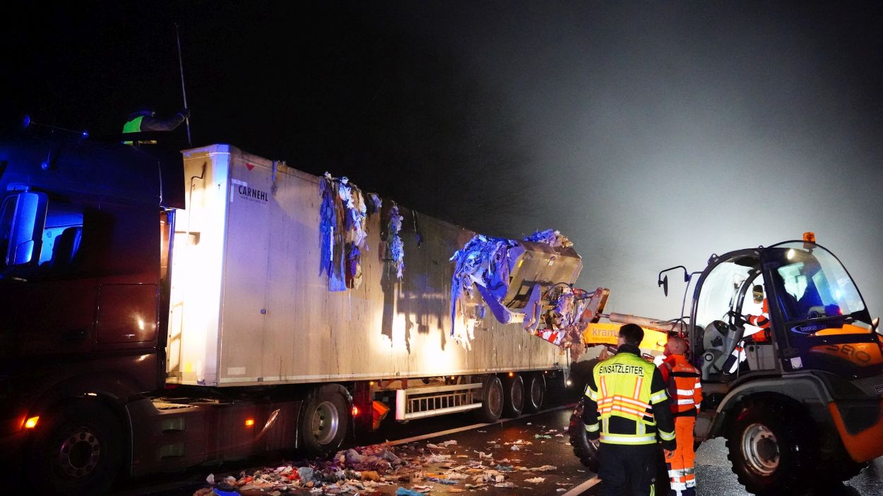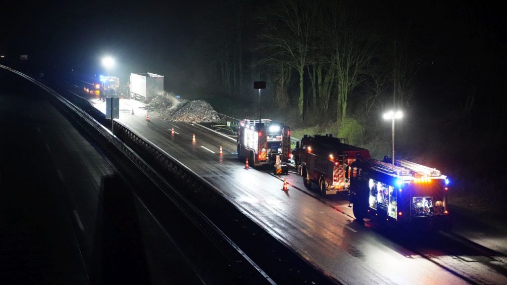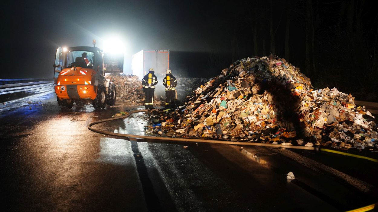 Kassel – Zu einem aufwändigen Einsatz kam es am Mittwoch gegen 17.30 Uhr auf der A44 zwischen Zierenberg und Kassel. Die Feuerwehren aus Habichtswald und Wolfhagen wurden auf die A44 zu einem LKW-Brand alarmiert. Als die ersten Einsatzkräfte eintrafen, kam Rauch aus dem Auflieger. Daraufhin wurde der Anhänger geöffnet. Nach Rücksprache mit dem Fahrer, stellte sich heraus, dass der LKW mit rund 20 Tonnen Misch-Müll beladen war und aus bislang unbekannten Gründen in Brand geraten war. Um an die Glutnester zu gelangen, musste der Fahrer den gesamten Inhalt auf die Autobahn entladen. Mithilfe eines Radladers wurde der Müll großflächig aufgelockert und verteilt und anschließend mit Wasser abgelöscht. Danach wurde der Müll wieder zurück in den Anhänger gekippt. Die Feuerwehr konnte nach rund drei Stunden abrücken. Die Reinigungsarbeiten zogen sich allerdings bis in die Nacht rein. Durch die Vollsperrung der Autobahn kam es zeitweise auf den Umleitungsstrecken zum Verkehrschaos.