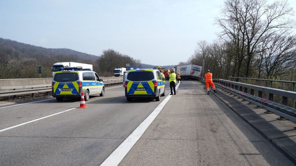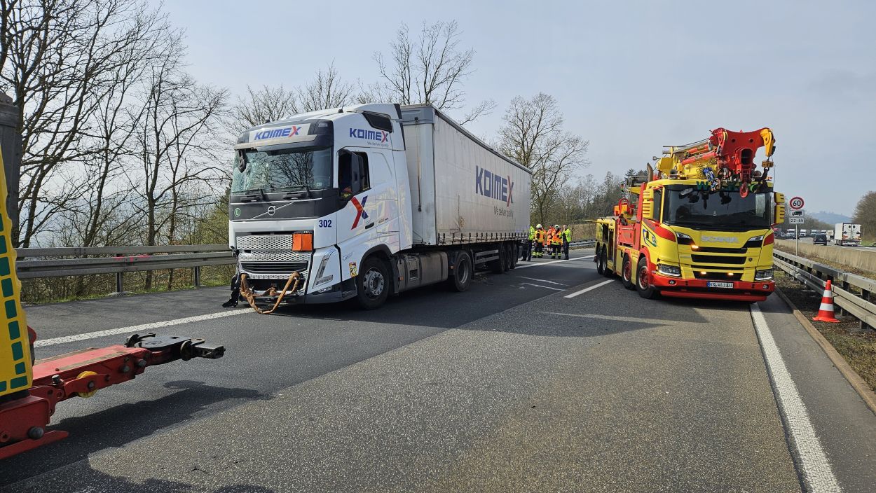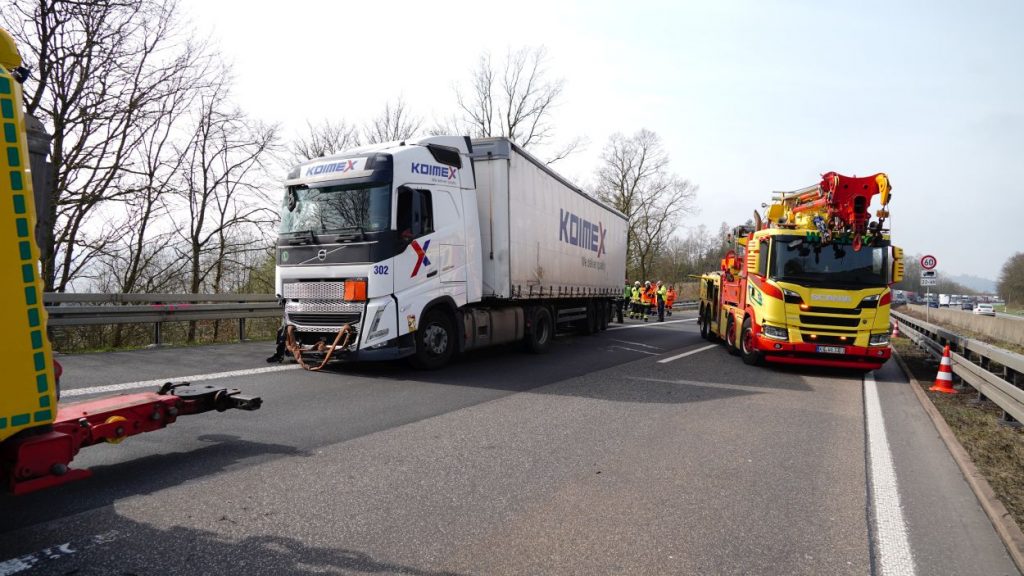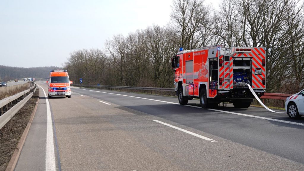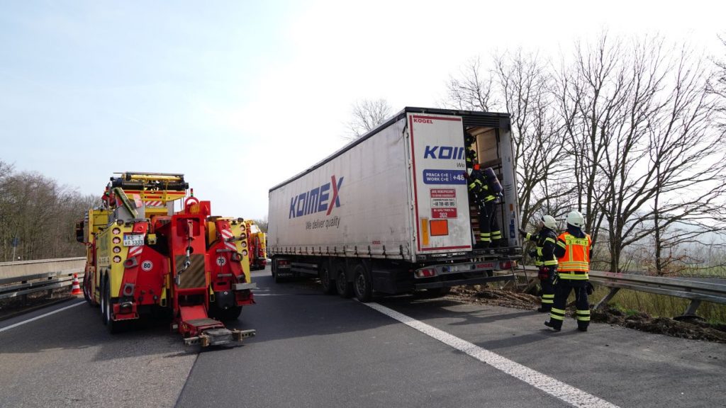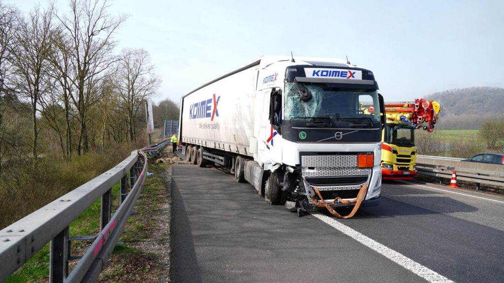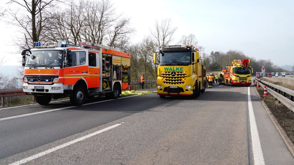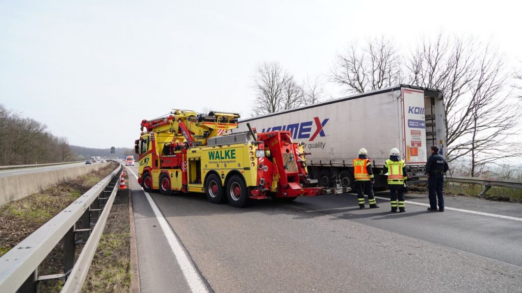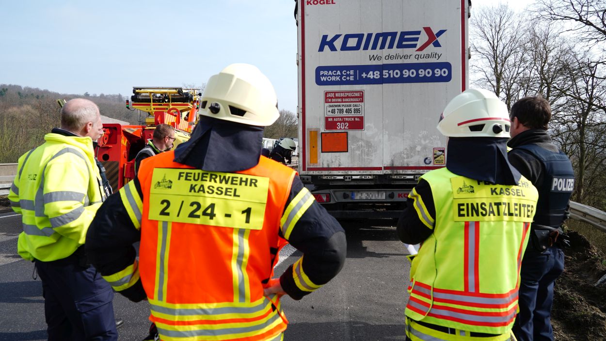 Kassel – Auf der A44 zwischen Zierenberg und Kassel kam es am Dienstagmorgen zu einem LKW-Unfall. Der 47-jährige LKW-Fahrer befuhr die Autobahn gegen 06.15 Uhr in Fahrtrichtung Kassel. Geladen hatte der LKW 24 Tonnen Polymer-Granulat, ein Gefahrstoff. Kurz vor der Abfahrt Wilhelmshöhe kam der LKW nach rechts von der Fahrbahn ab, streifte rund 100 Meter Leitplanke und kam dann schräg im Graben zum Stehen. Der Fahrer blieb unverletzt. Zunächst bestand keine Gefahr, die von der Ladung aus ginge. Gegen 9.45 Uhr wurde dann mit der Bergung begonnen, dafür wurde die Autobahn voll gesperrt. Während der Bergung entschloss man sich, vorsichtshalber die Feuerwehr dazu alarmieren, um die Ladung zu kontrollieren. Während der Bergung wurde die Ladung unter Atemschutz und einem Gasmessgerät kontrolliert. Ein Austritt von Gefahrgut konnte nicht festgestellt werden. Der Sattelzug wurde dann zum Parkplatz Baunsberg abgeschleppt, wo dann die Ladung umgeladen werden muss. Dafür wurde der Parkplatz auch abgesperrt. Der Sachschaden an Leitplanke und LKW wird auf 66.000 Euro geschätzt. Die Unfallstelle war gegen 13 Uhr geräumt.